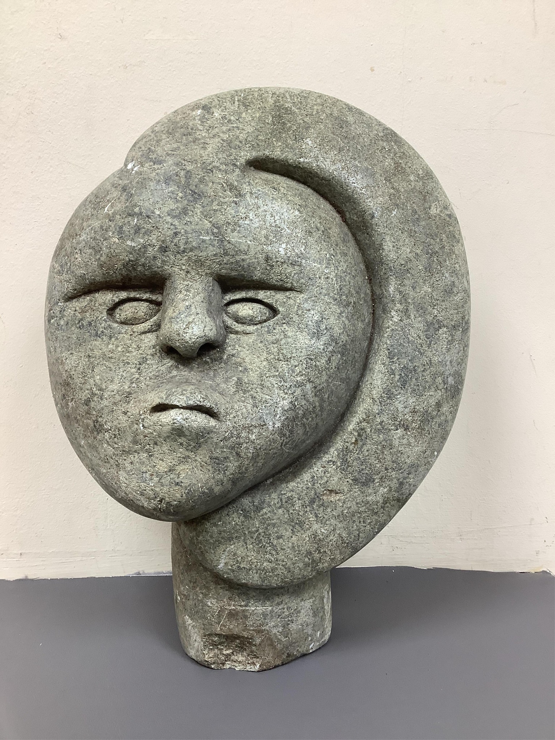 Style of Josia Manzi - a carved serpentine stone head, 37cm