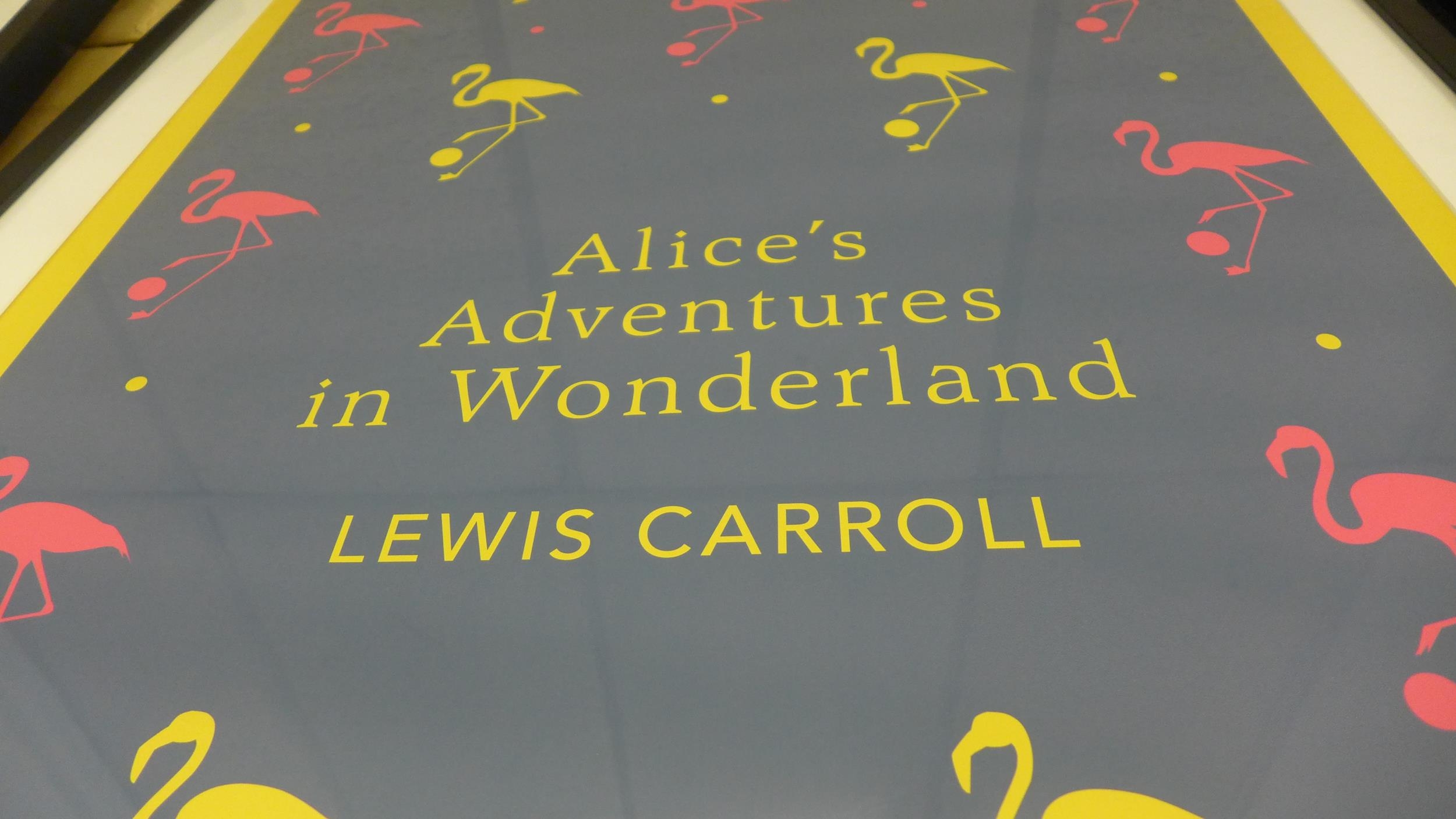 An Alice in Wonderland framed print, 78cm x 114cm