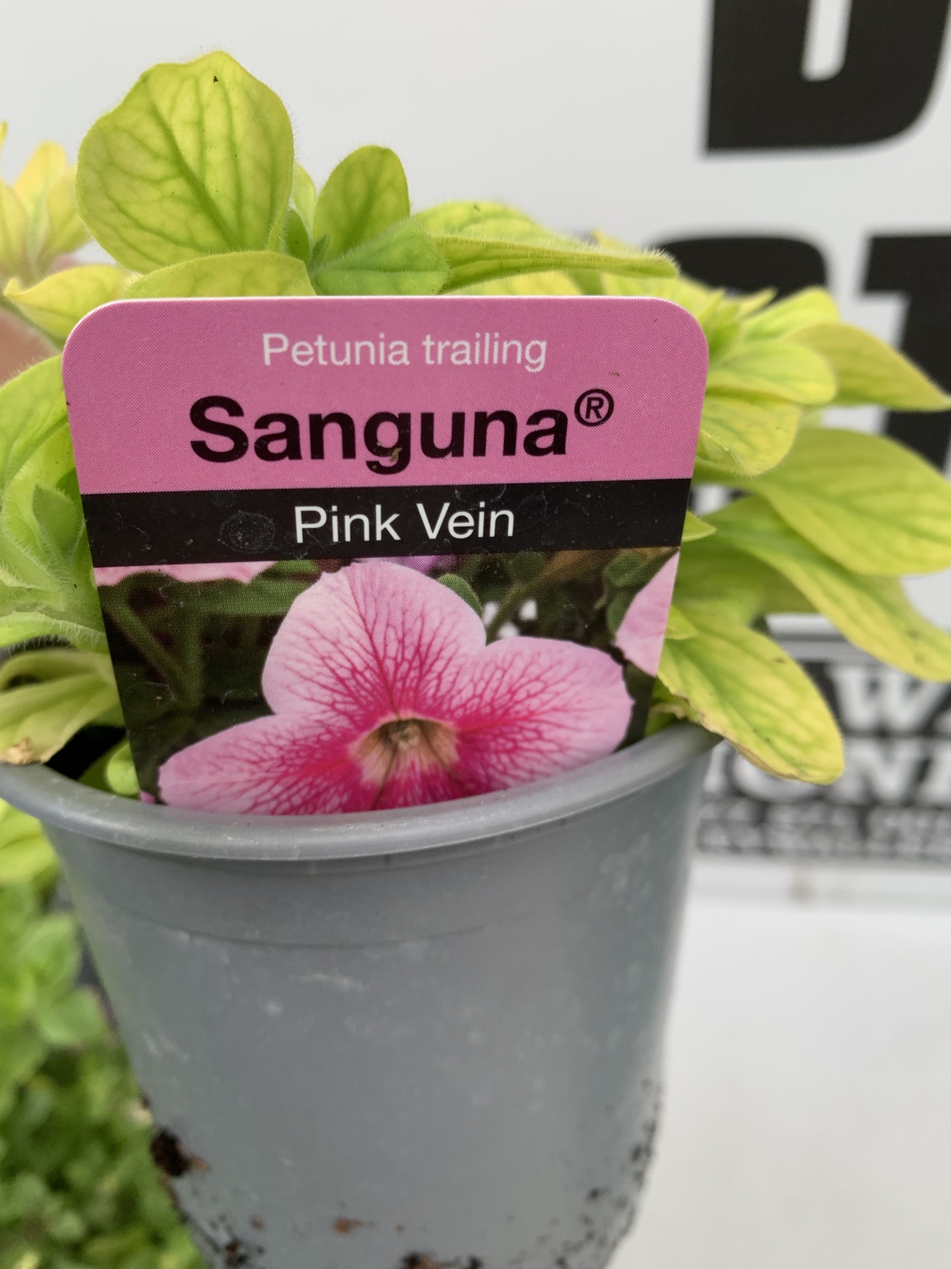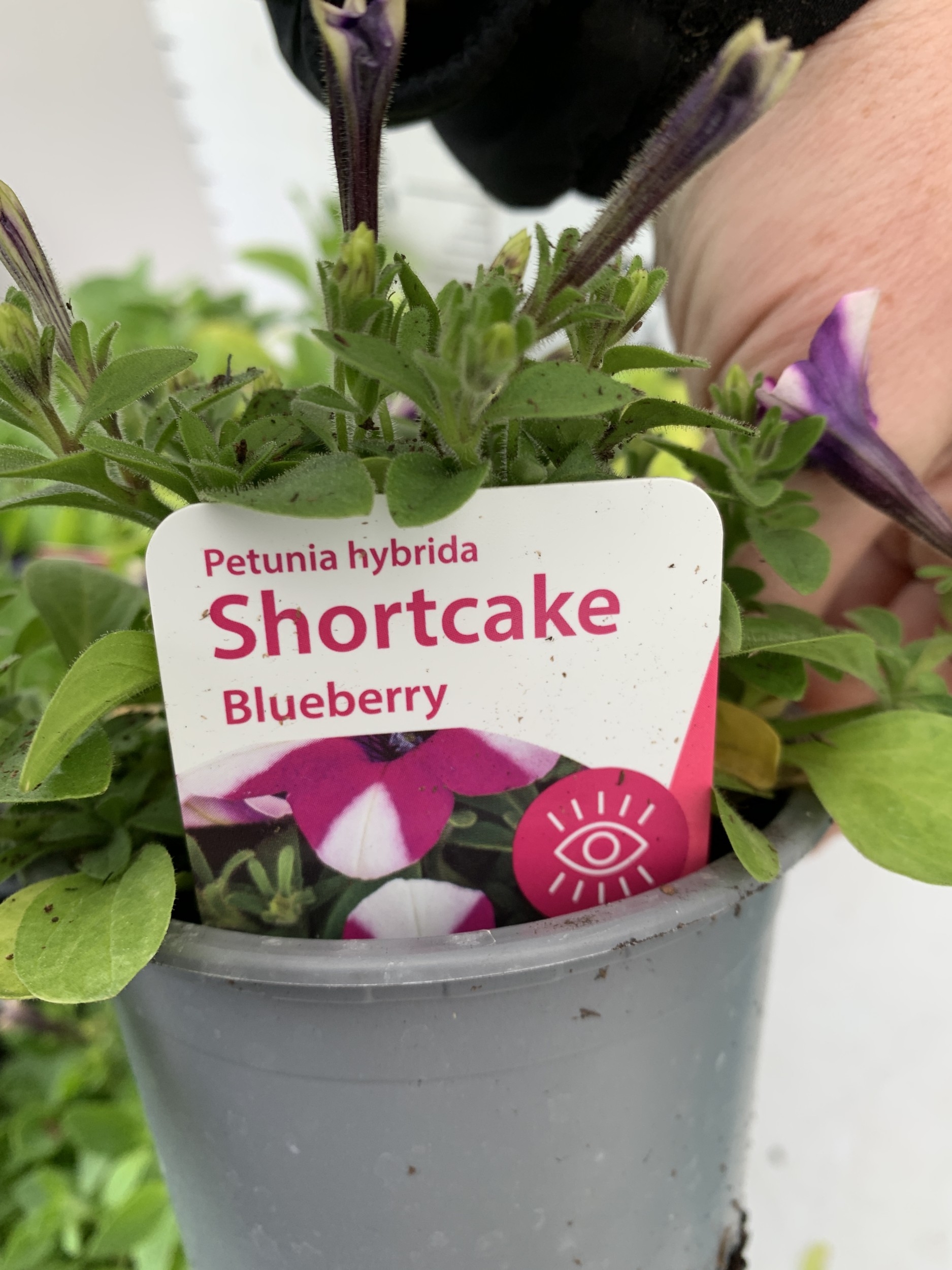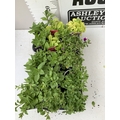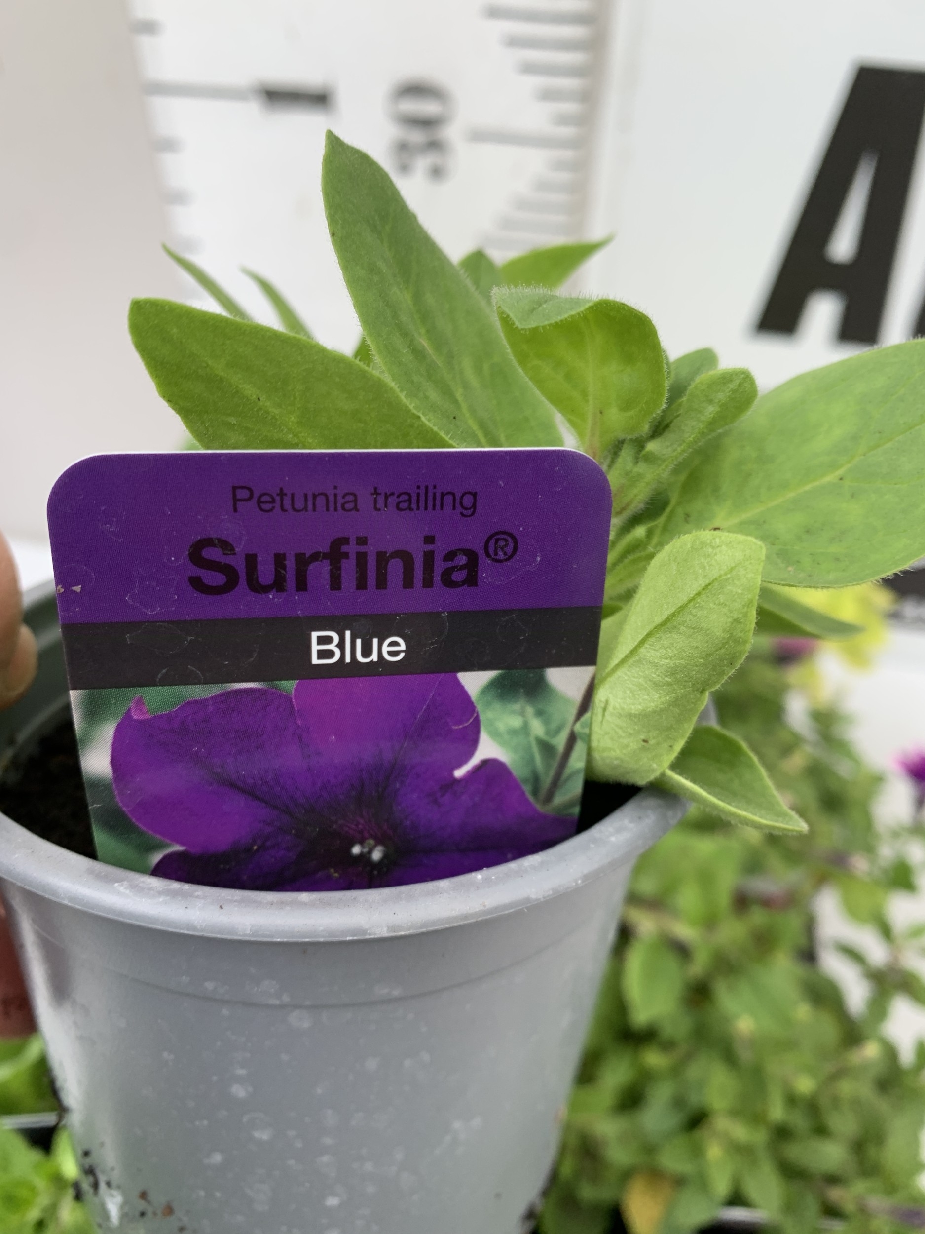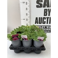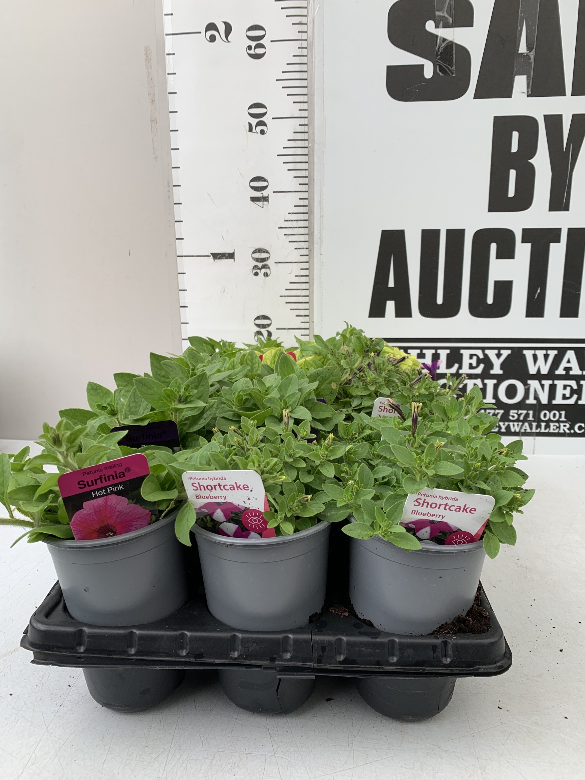 FIFTEEN MIXED BEDDING PLANTS IN P9CM POTS TO INCLUDE PETUNIA SURFINIA HOT PINK AND SHORTCAKE BLUEBERRY, SURFINIA BLUE AND PURPLE, AND TRAILING PETUNIA SANGUNA PINK VEIN. ON A TRAY TO BE SOLD FOR THE FIFTEEN