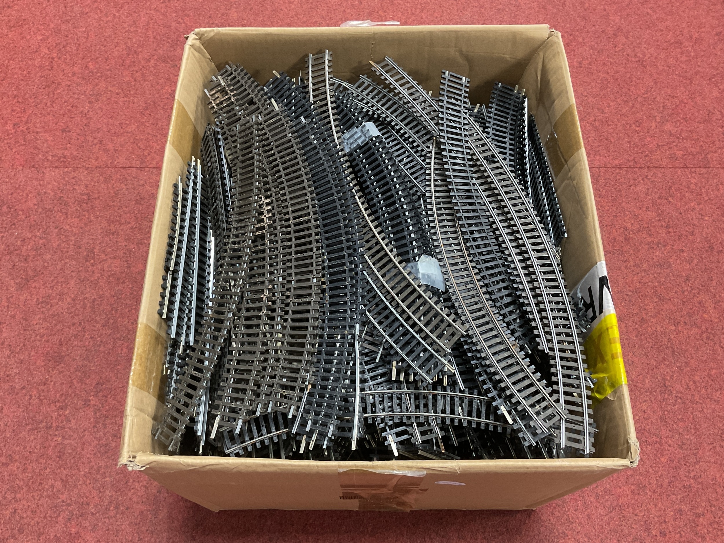 A large quantity of 00 gauge steel sectional track by Hornby and others.