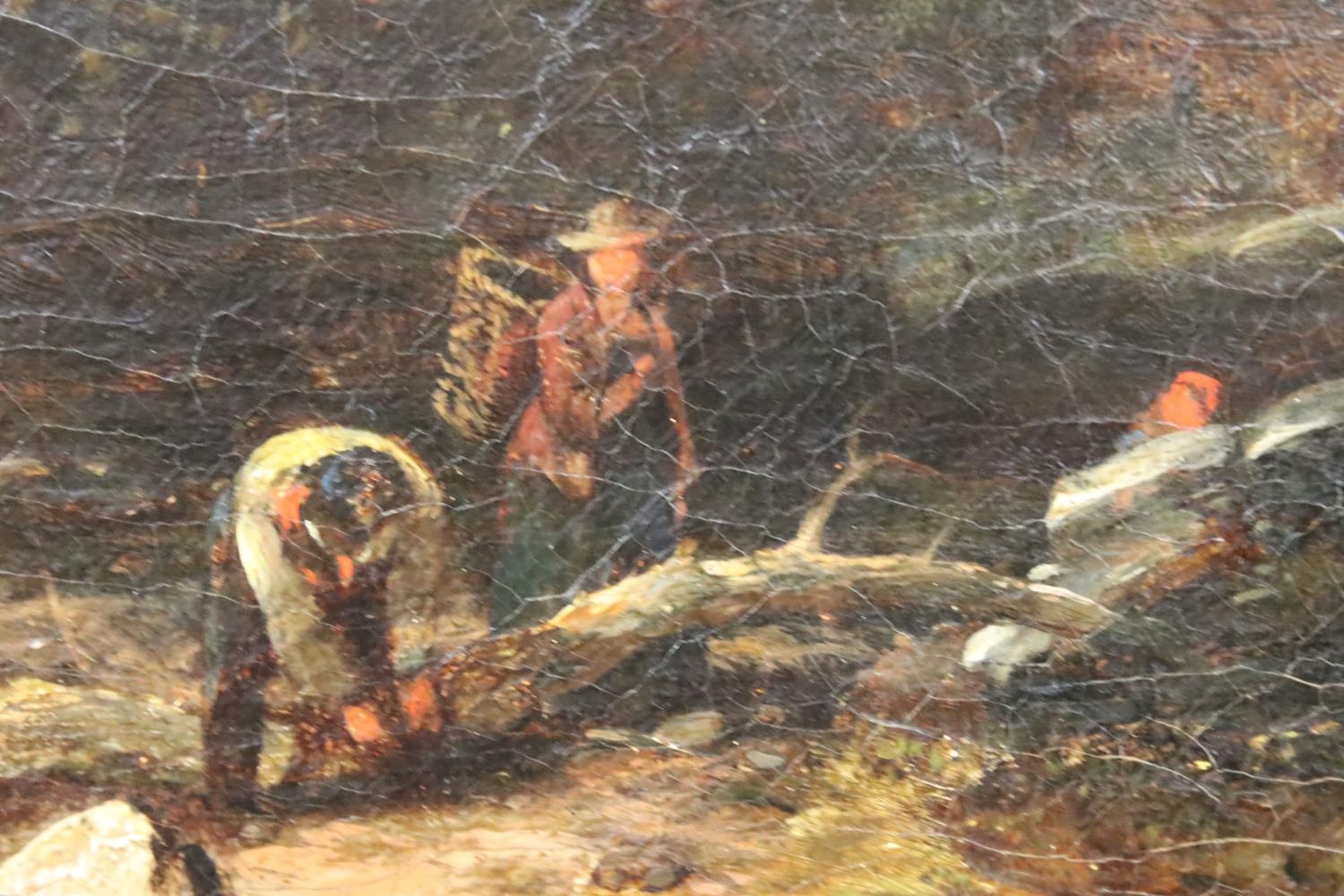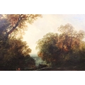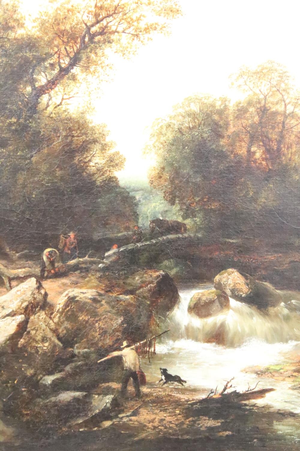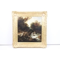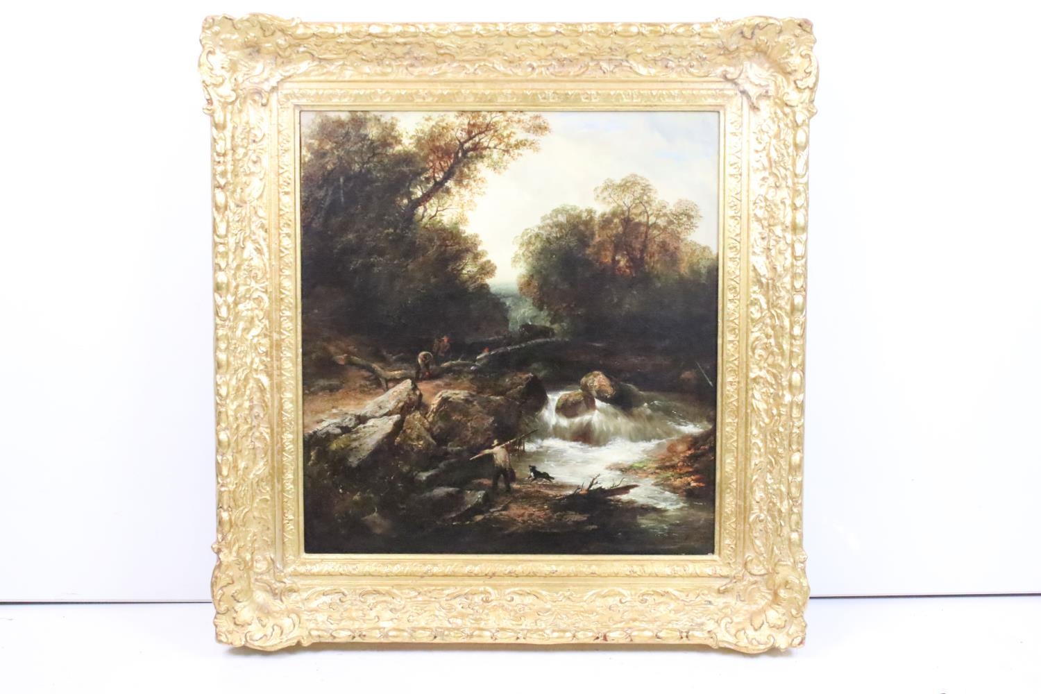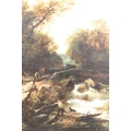 English School, riverscape with figures and a bridge, oil on canvas, initialled TC lower right and dated 1850, inscribed ' The Fishing Pool, Thomas Creswick ', 59 x 55.5cm, gilt framed