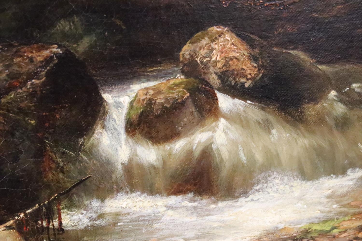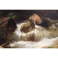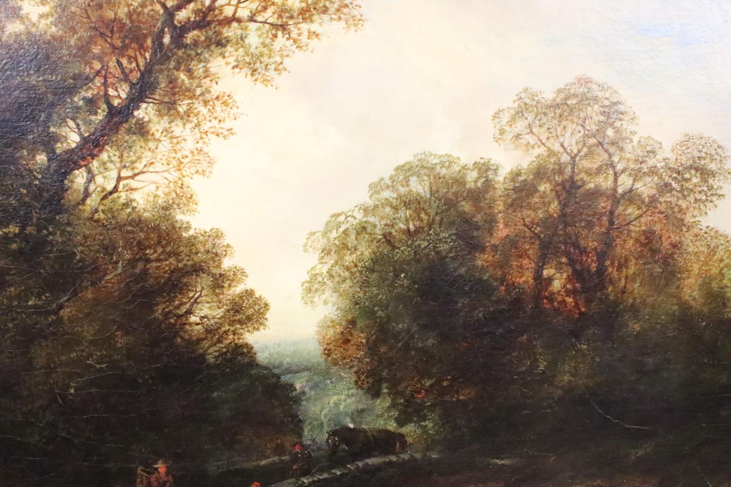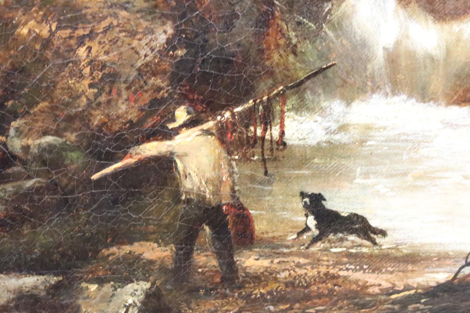 English School, riverscape with figures and a bridge, oil on canvas, initialled TC lower right and dated 1850, inscribed ' The Fishing Pool, Thomas Creswick ', 59 x 55.5cm, gilt framed