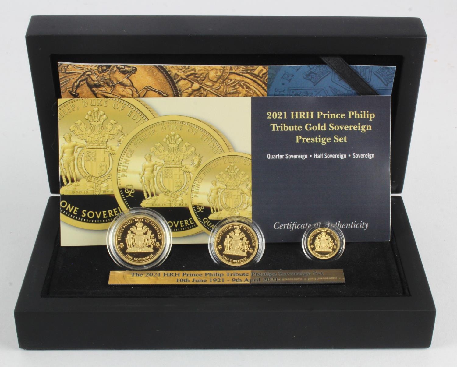 Tristan Da Cunha three coin gold set 2021 (Sovereign, Half Sovereign & Quarter Sovereign) "Prince Philip". FDC boxed as issued