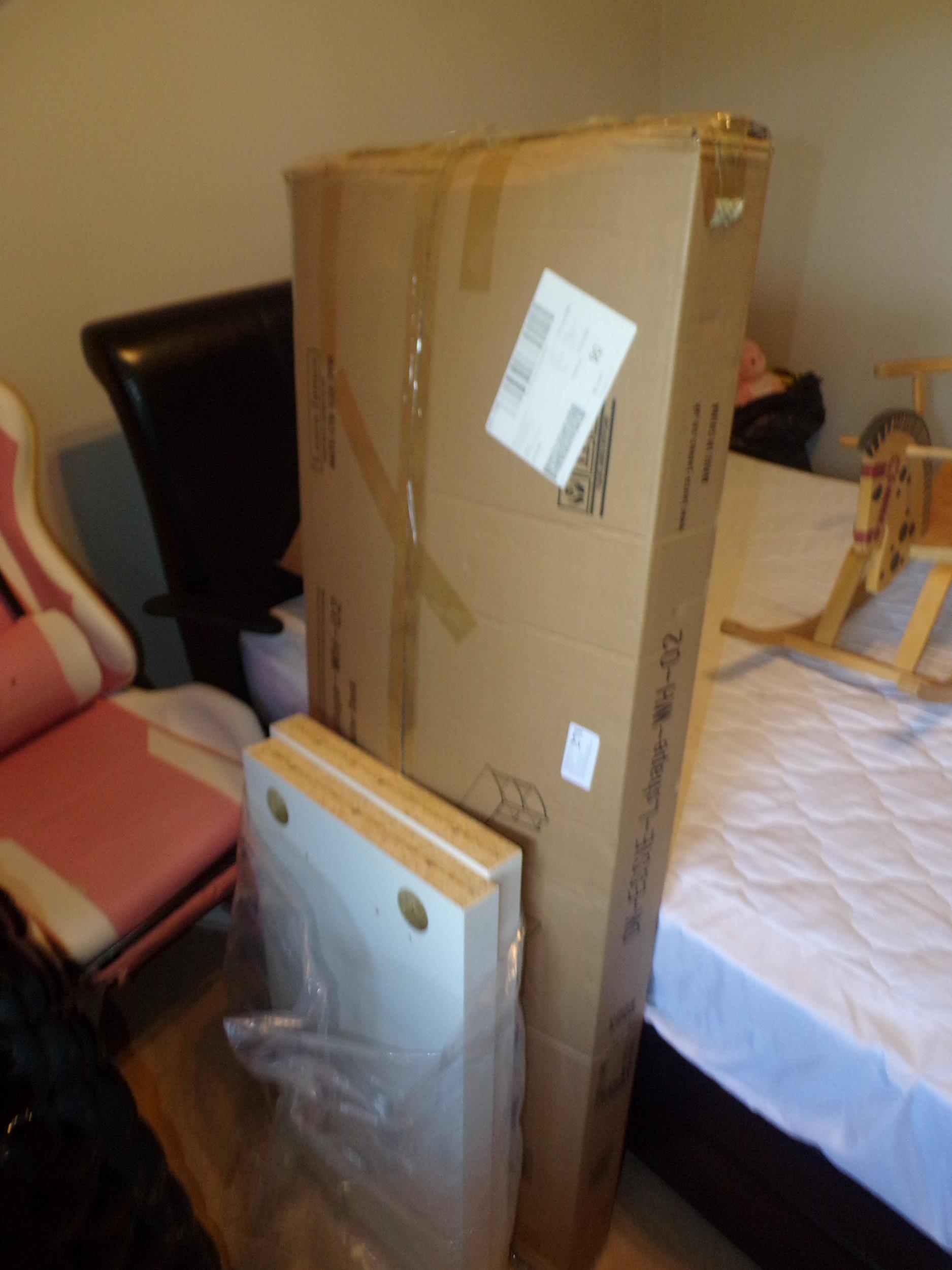 WHITE L SHAPES COMPUTER DESK (UNUSED IN BOX)