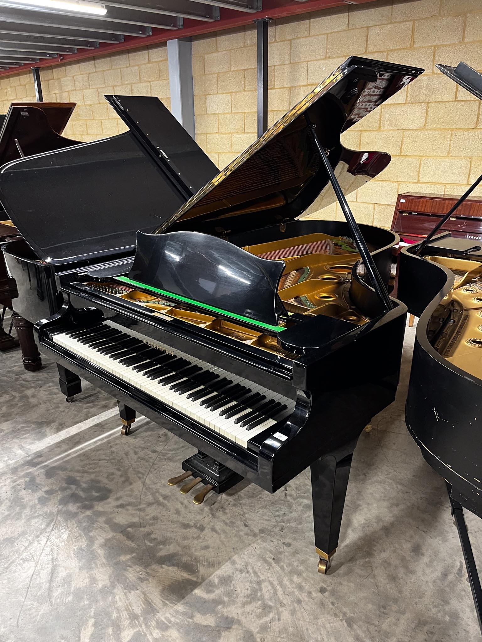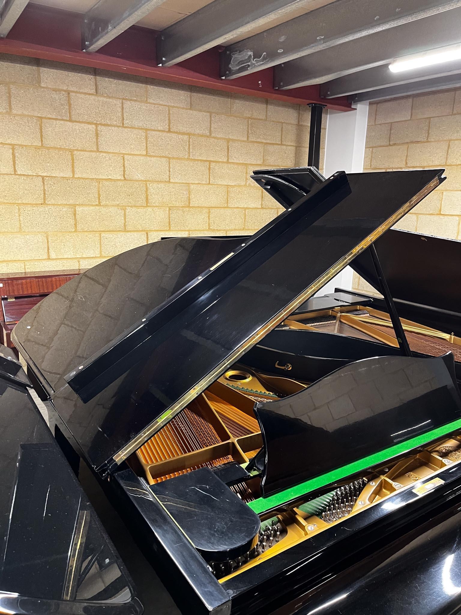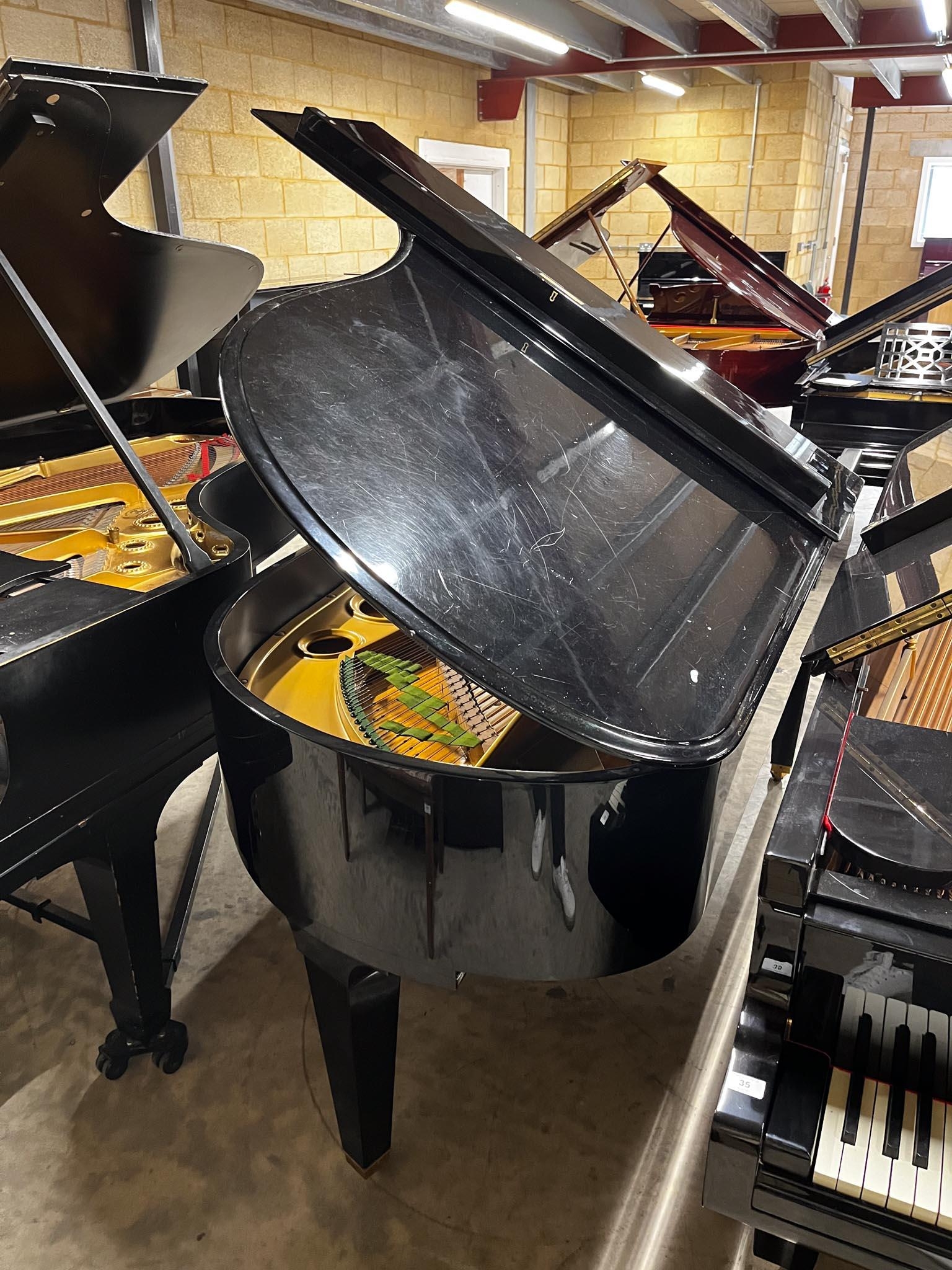 A 7ft 4in Model C grand piano in a bright ebonised case on square tapered legs. This instrument is sold with an Article 10 Certificate due to the use of ivory in the construction of the keyboard. Cert. No: 23GBA108W986C. IRN: R3S6FVJU