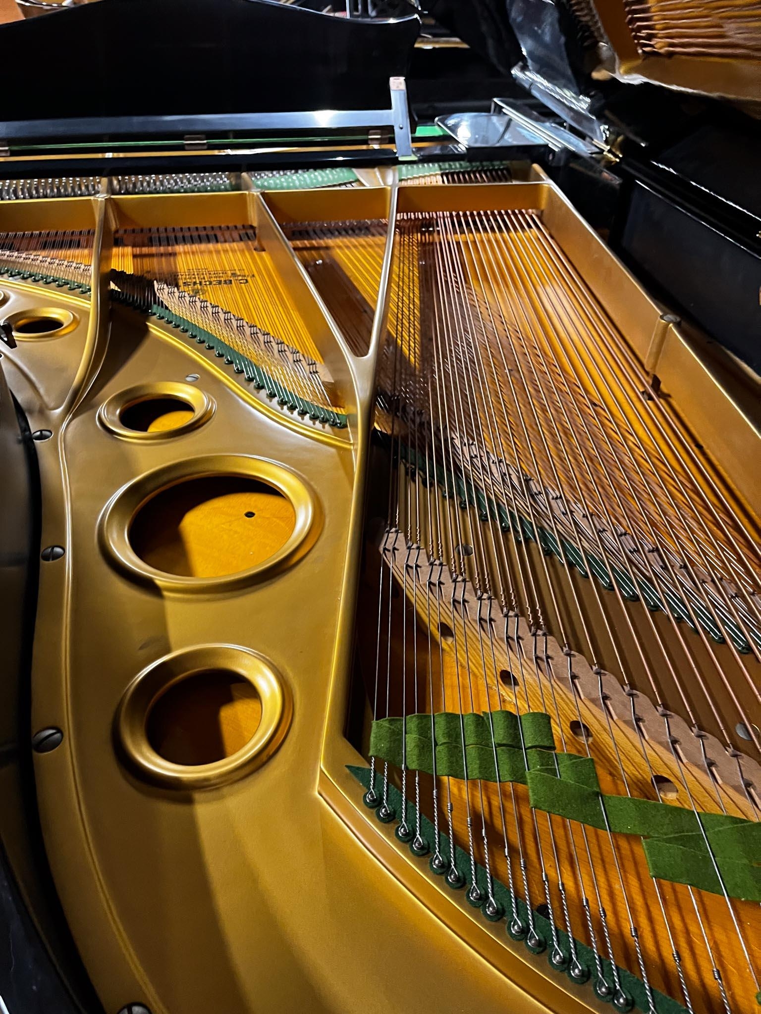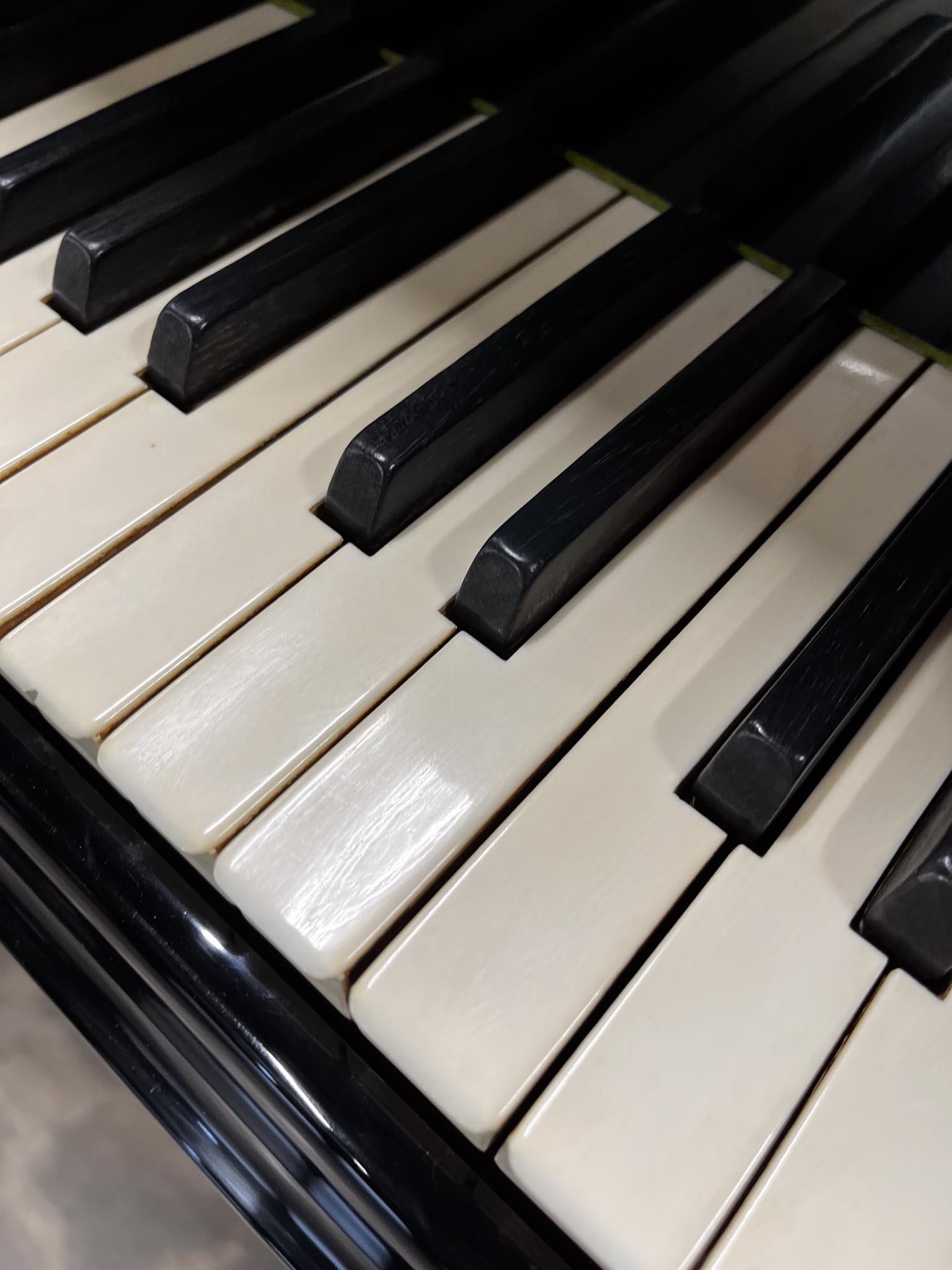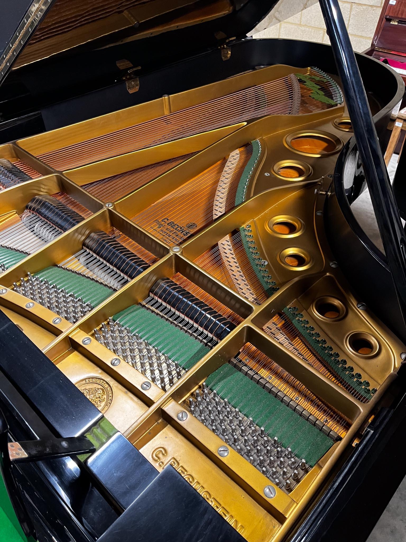 A 7ft 4in Model C grand piano in a bright ebonised case on square tapered legs. This instrument is sold with an Article 10 Certificate due to the use of ivory in the construction of the keyboard. Cert. No: 23GBA108W986C. IRN: R3S6FVJU