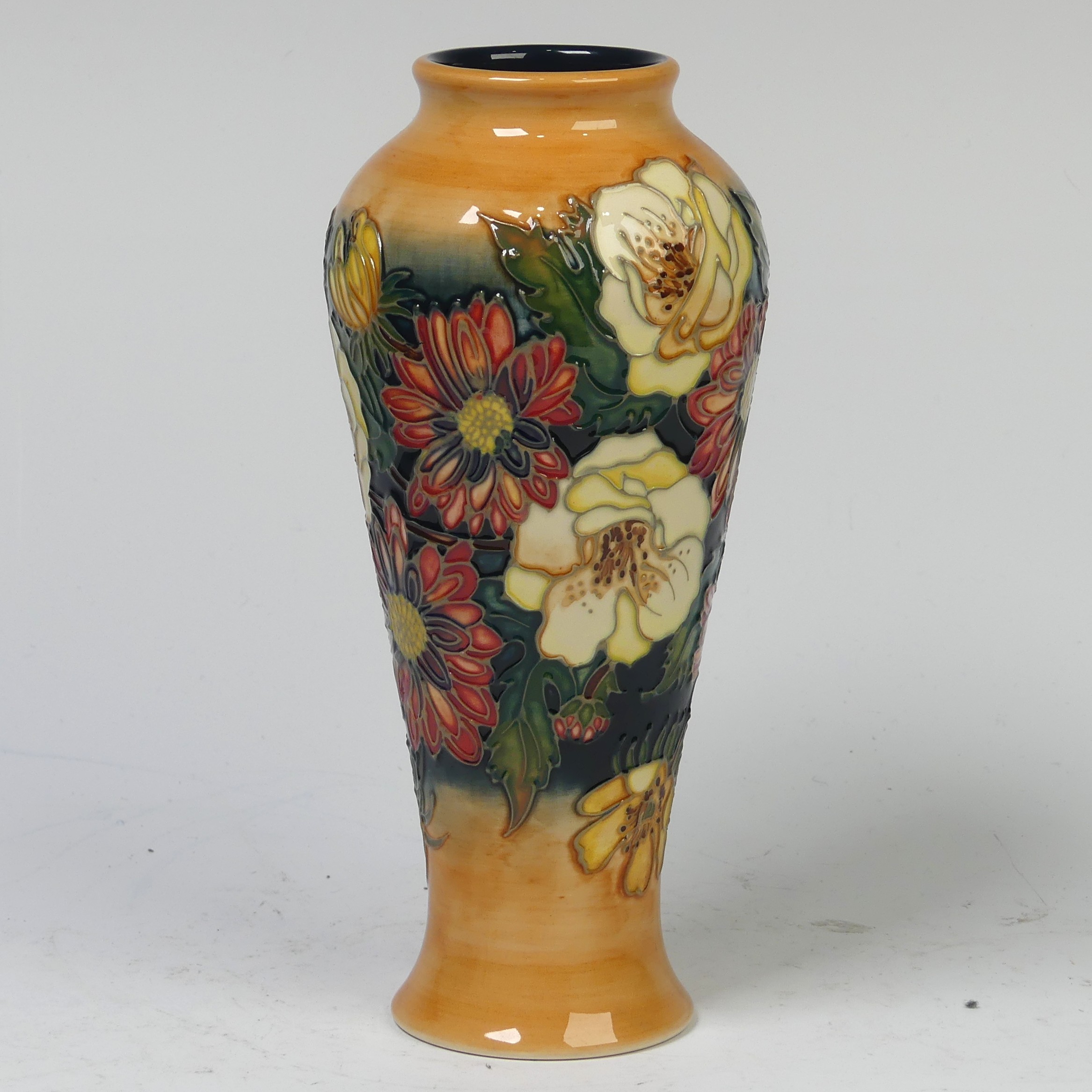 A Moorcroft Pottery ‘Victoriana’ pattern Vase, by Emma Bossons, dated 1997, for the ‘Moorcroft Collectors Club’, no. 1461, impressed mark on base, signed ‘E Bossons’, boxed, 21cm high.