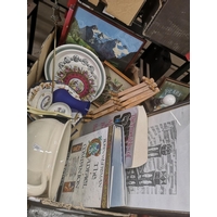 Collection of items inc wooden ceiling light fitting, play worn lorries etc.