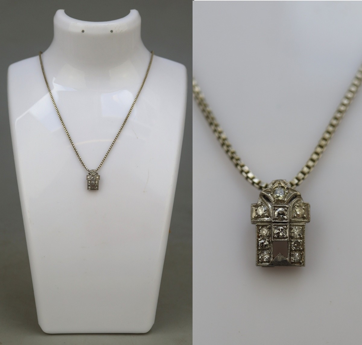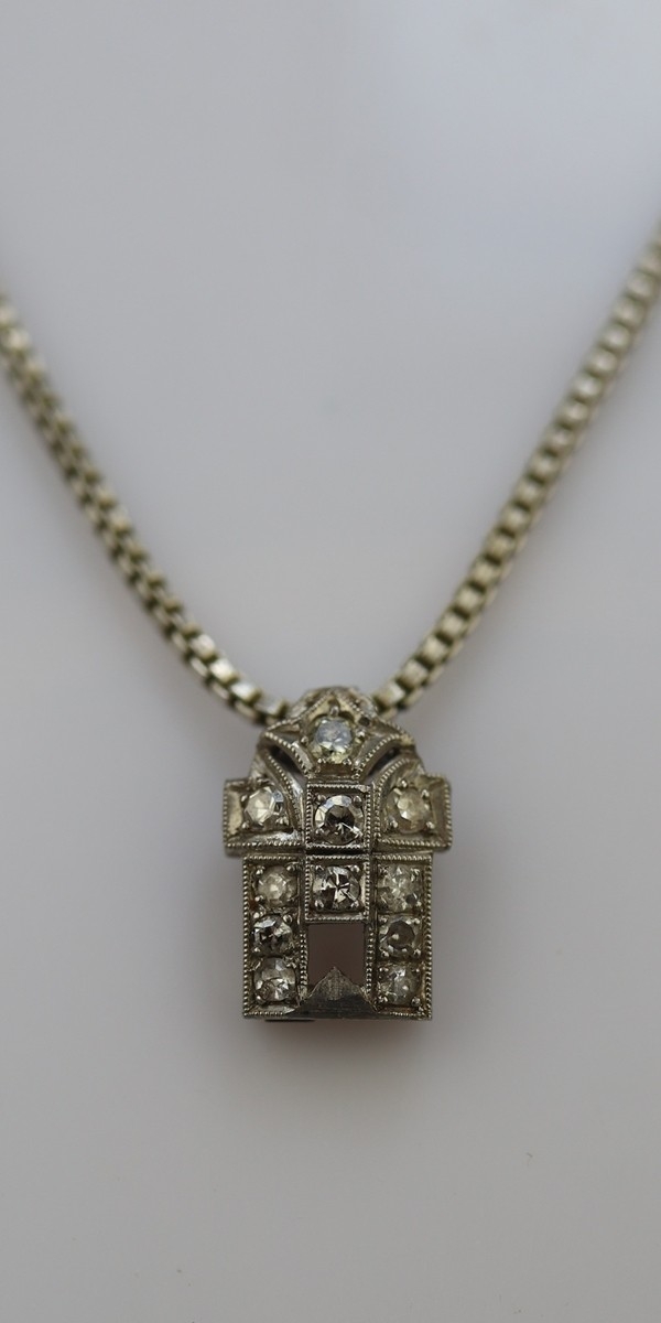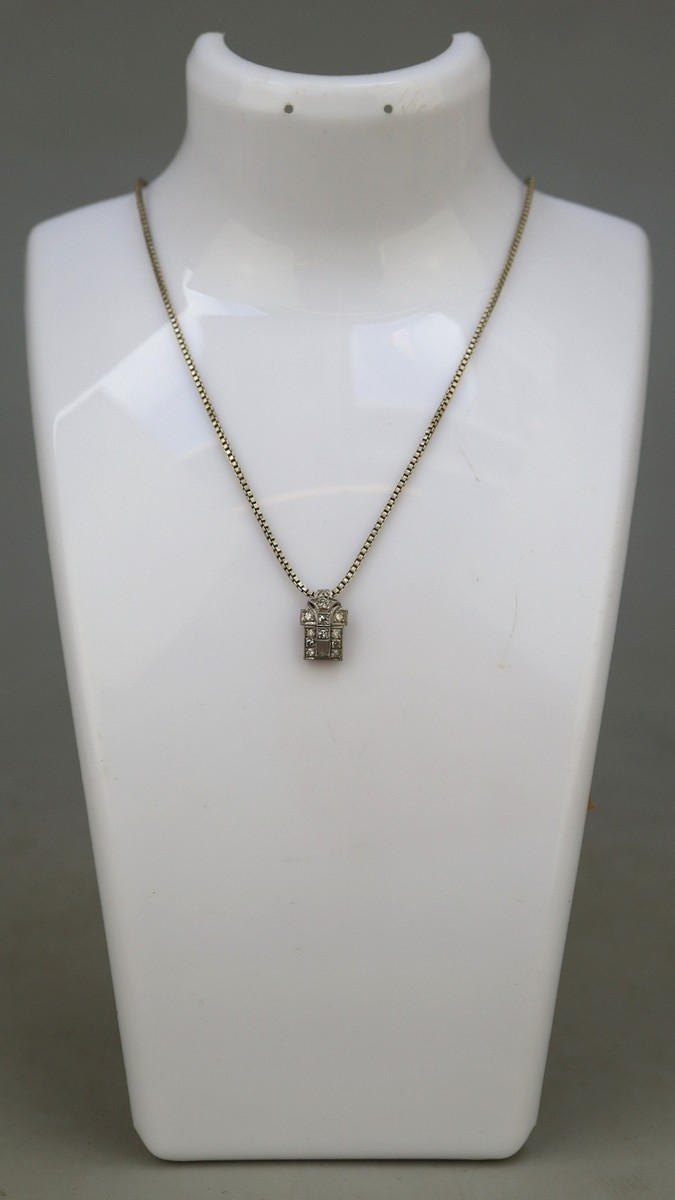 14ct white gold pendant set with diamonds on 835 silver chain