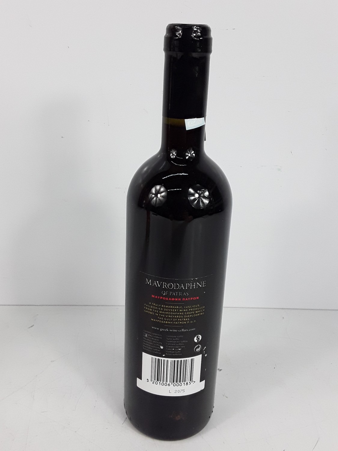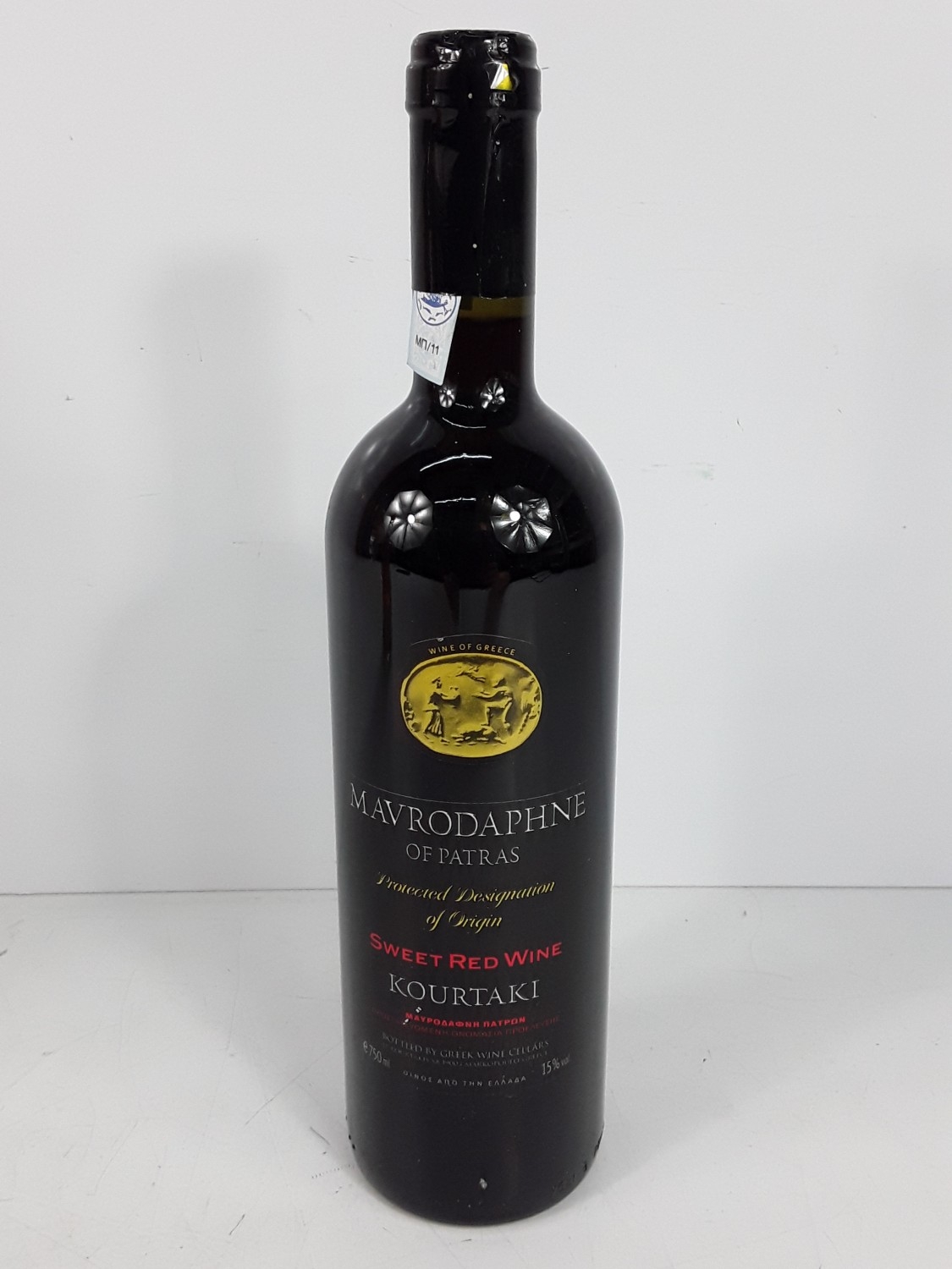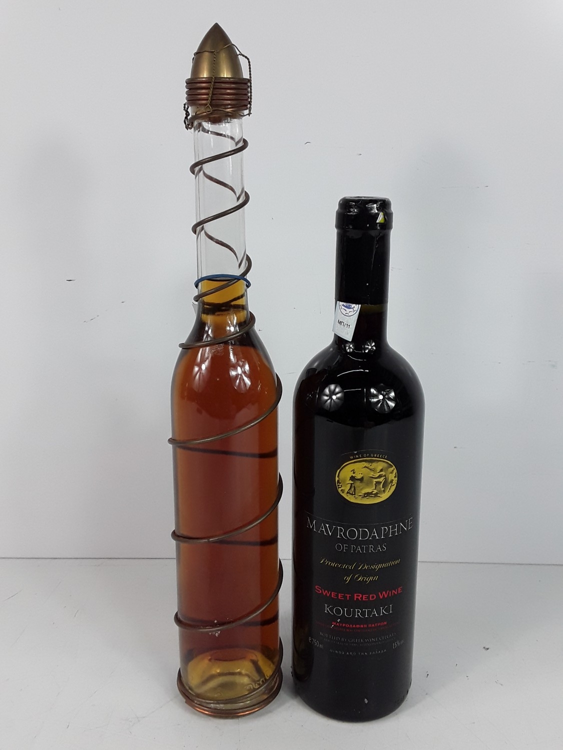 Bottle of Elie Arnaud Denoix XO Cognac (missing label) and a bottle of Mavrodaphne of Patras sweet red wine, 750ml, 15%