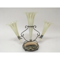 An Edwardian silver plate and Vaseline glass three flute eperne. Height 27cm.