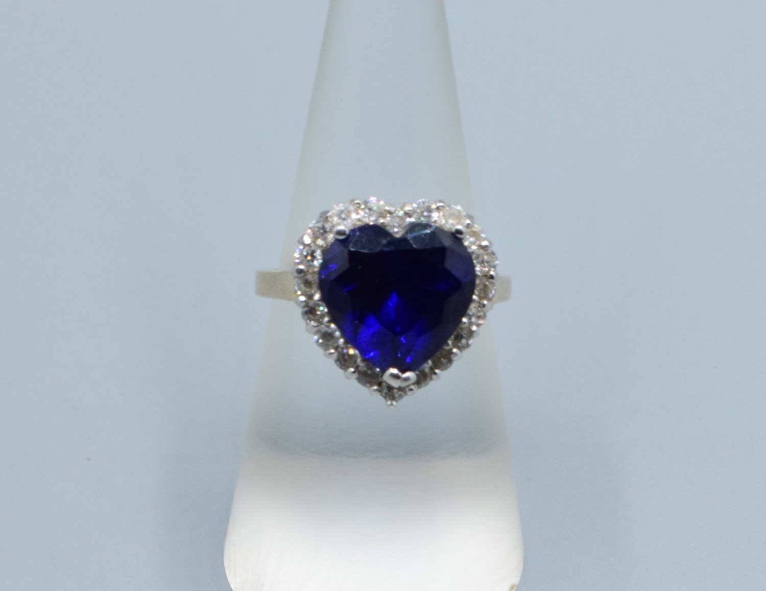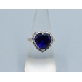 925 silver ladies Heart shape Sapphire halo design ring in a claw setting size P
