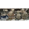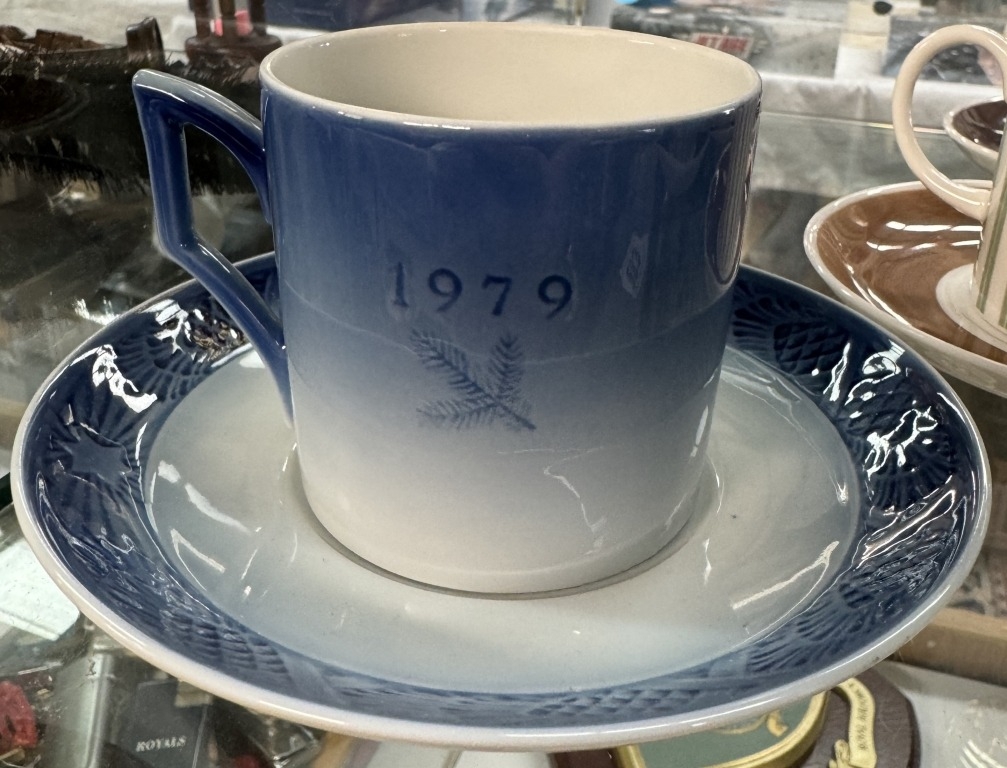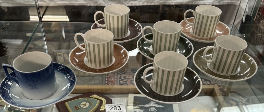 A Susie Cooper pin stripe coffee can set and a Royal Copenhagen cup and saucer