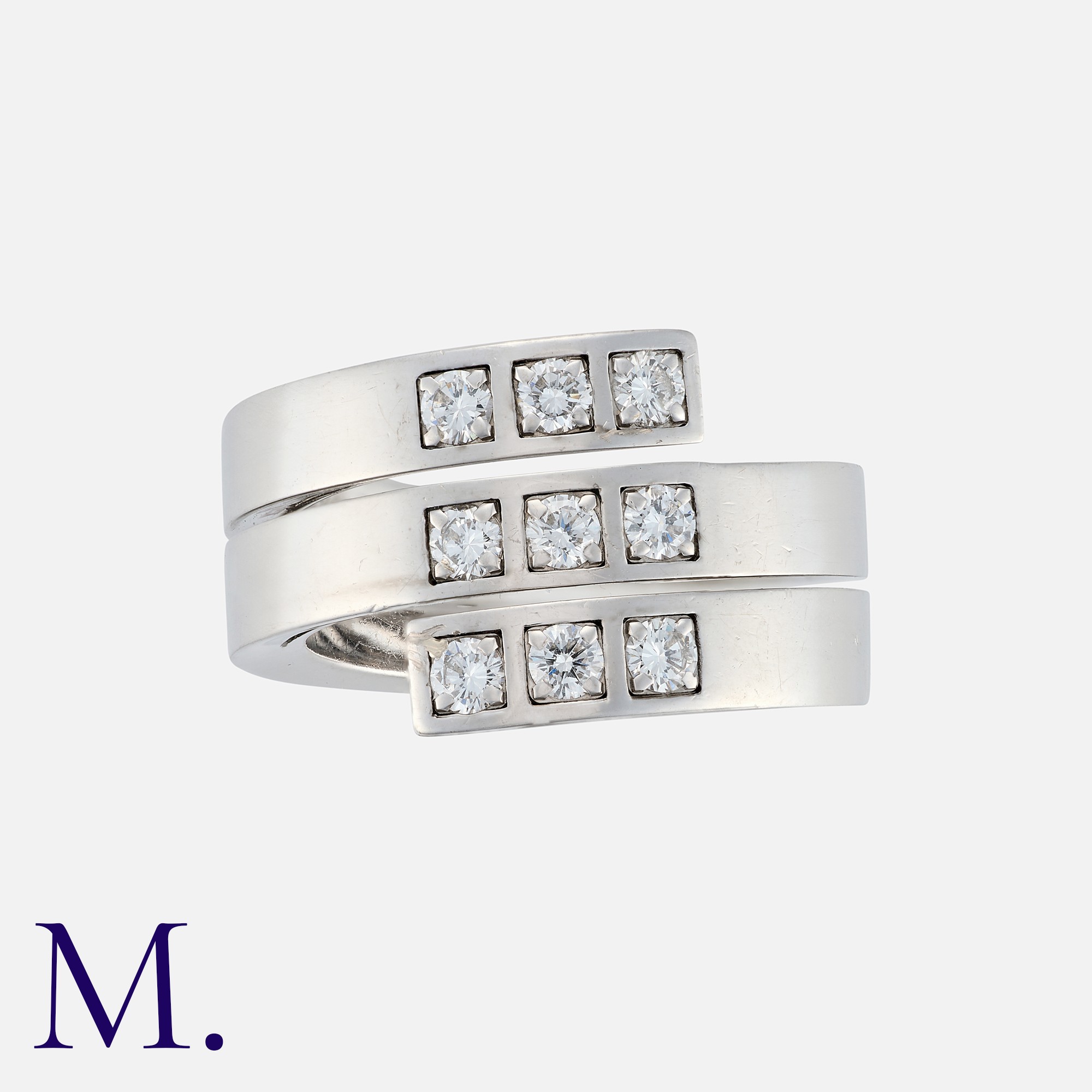 CARTIER, A Diamond Ring in 18 carat white gold, comprising a single coiled bad set with nine round brilliant cut diamonds totalling approximately 0.63 carats. Signed Cartier, Marked 750, Numbered, Size 54, French Assay Mark, Maker's Mark.