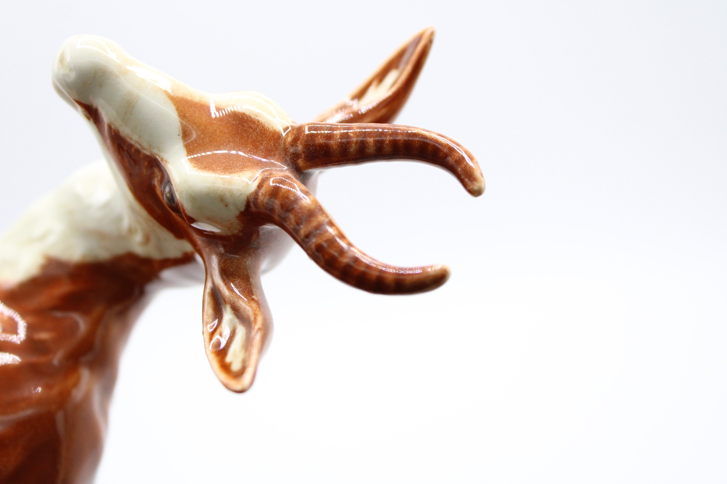 In good condition with no obvious damage or restoration, restoration with to left horn.
