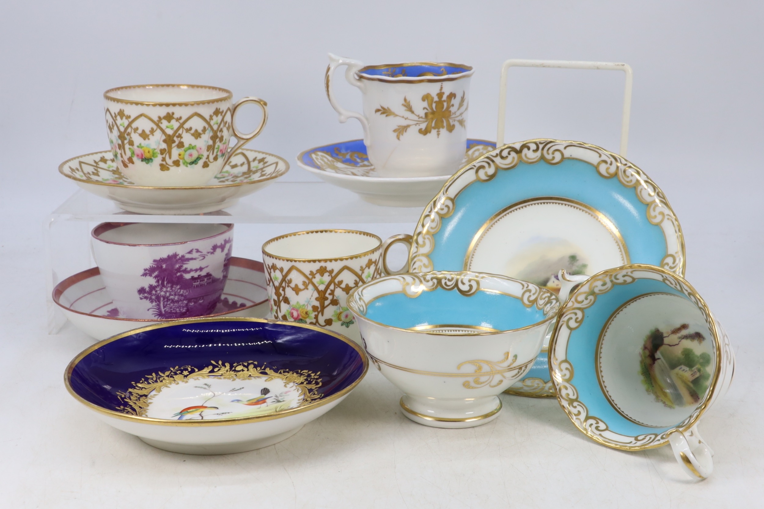 A selection of antique porcelain cups and saucers, unmarked