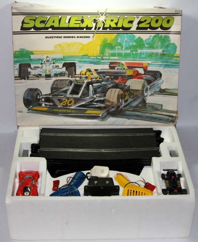 Vintage boxed Scalextric 200 motor racing set ref:C630. Appears complete with few signs of use.