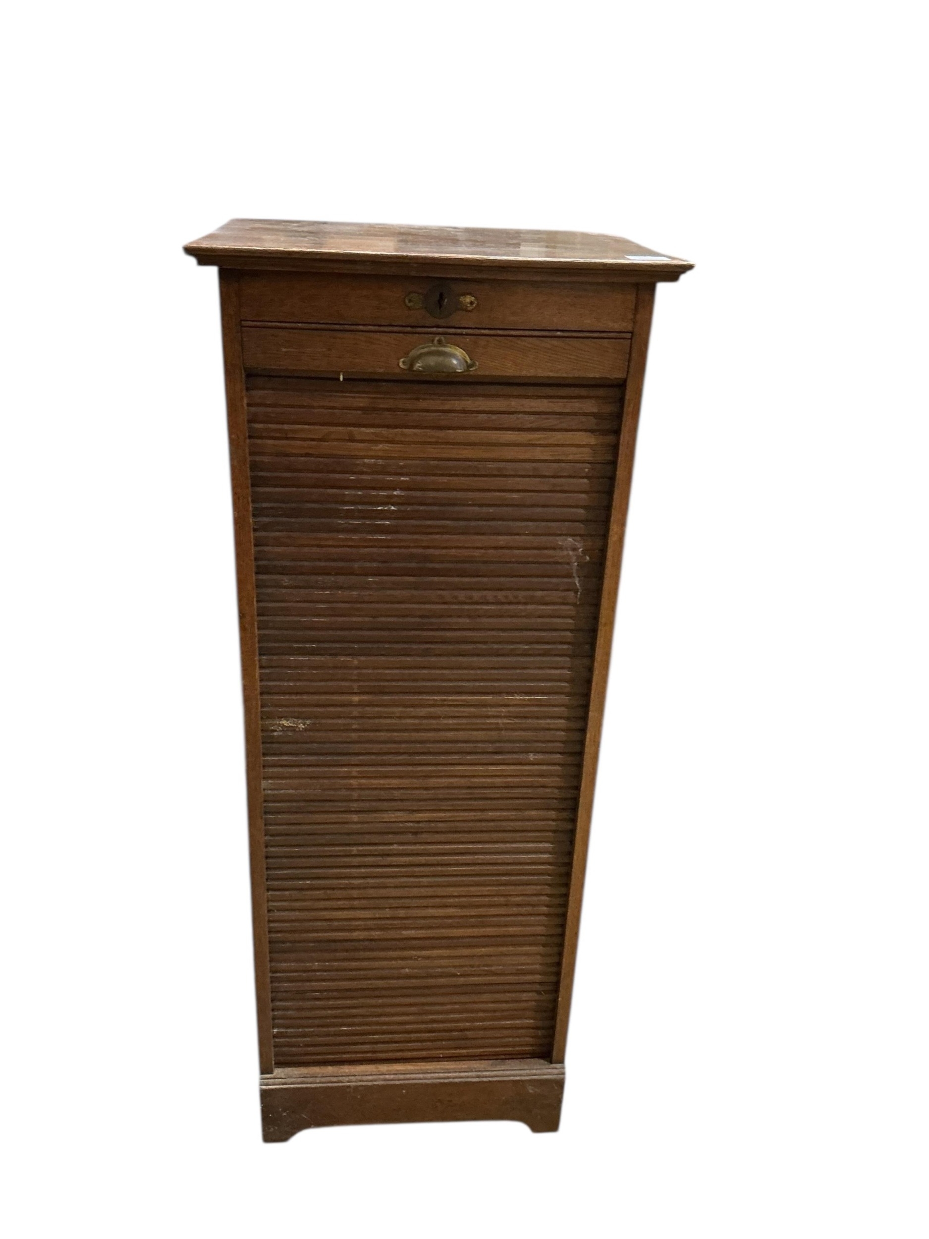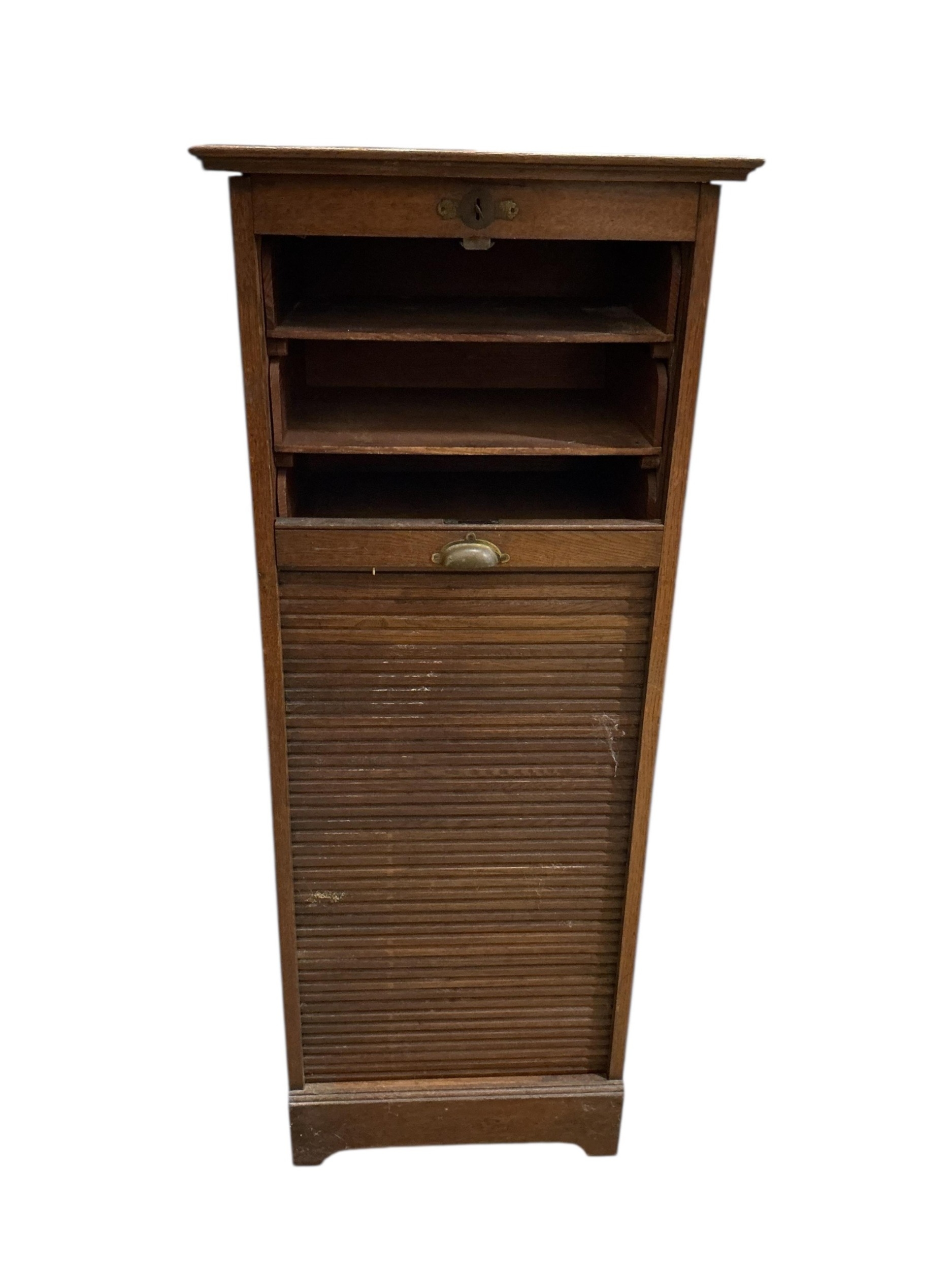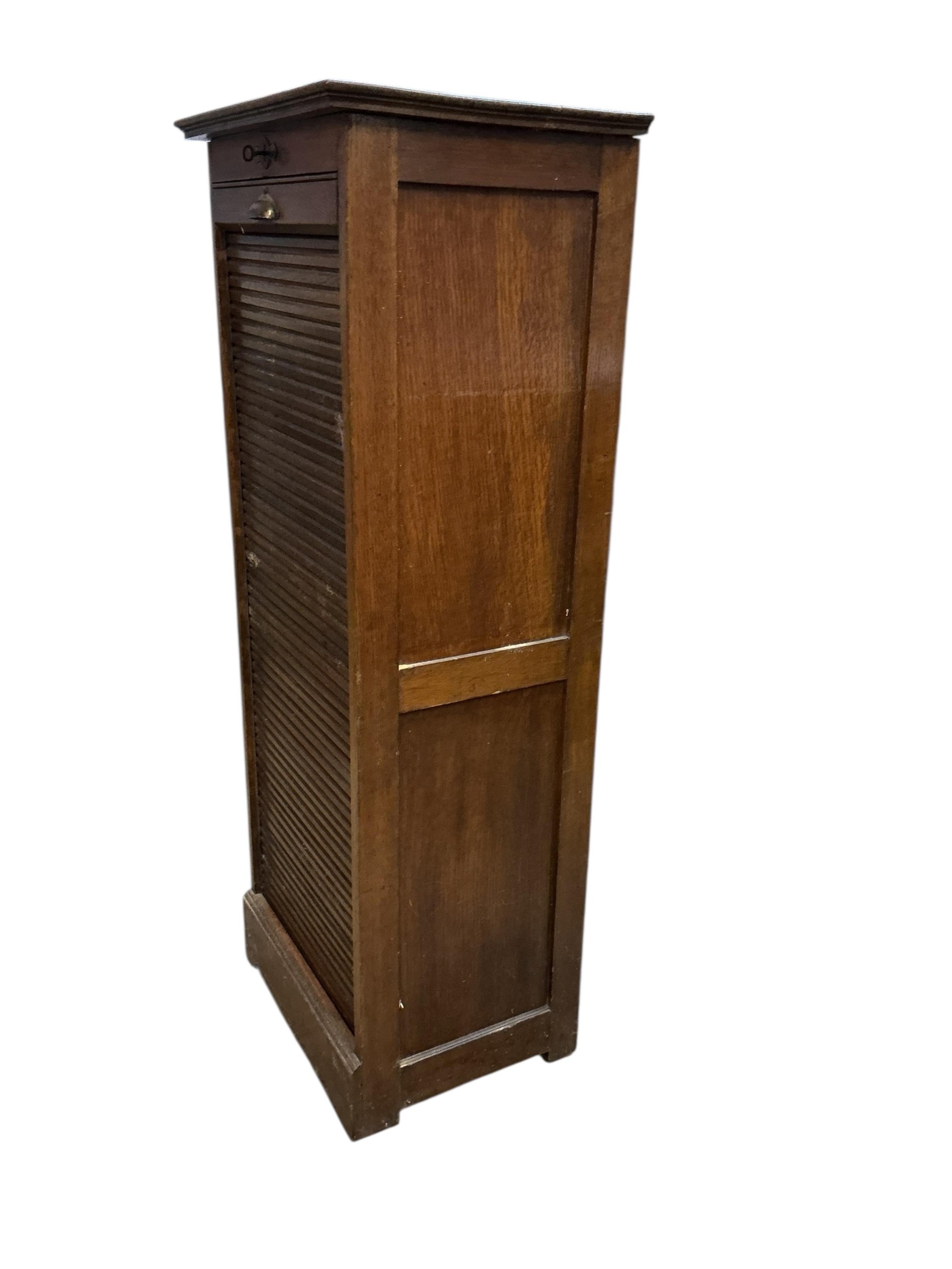 An early 20th century oak tambour filing cabinet, width 50cm, depth 37cm, height 126cm