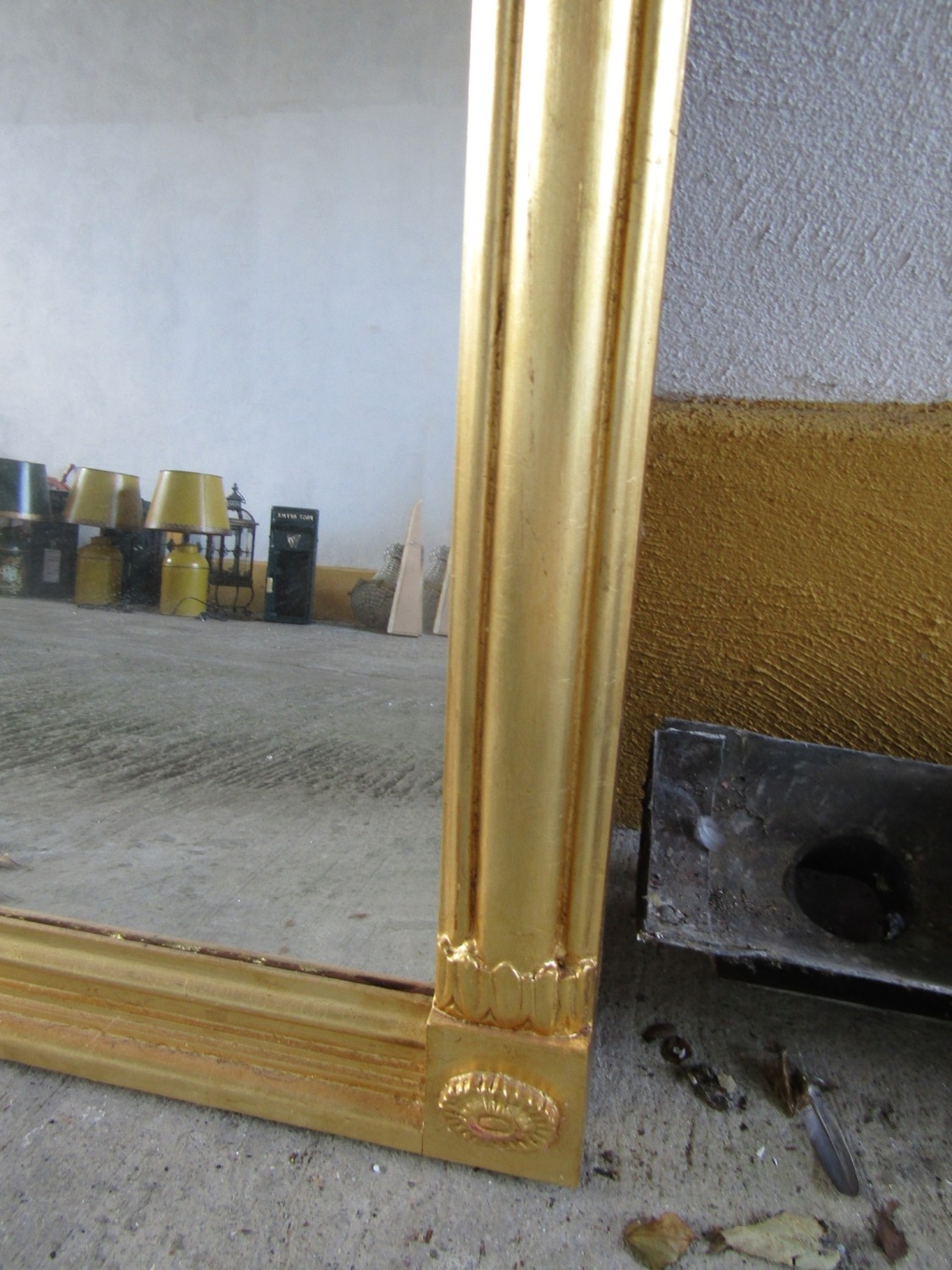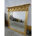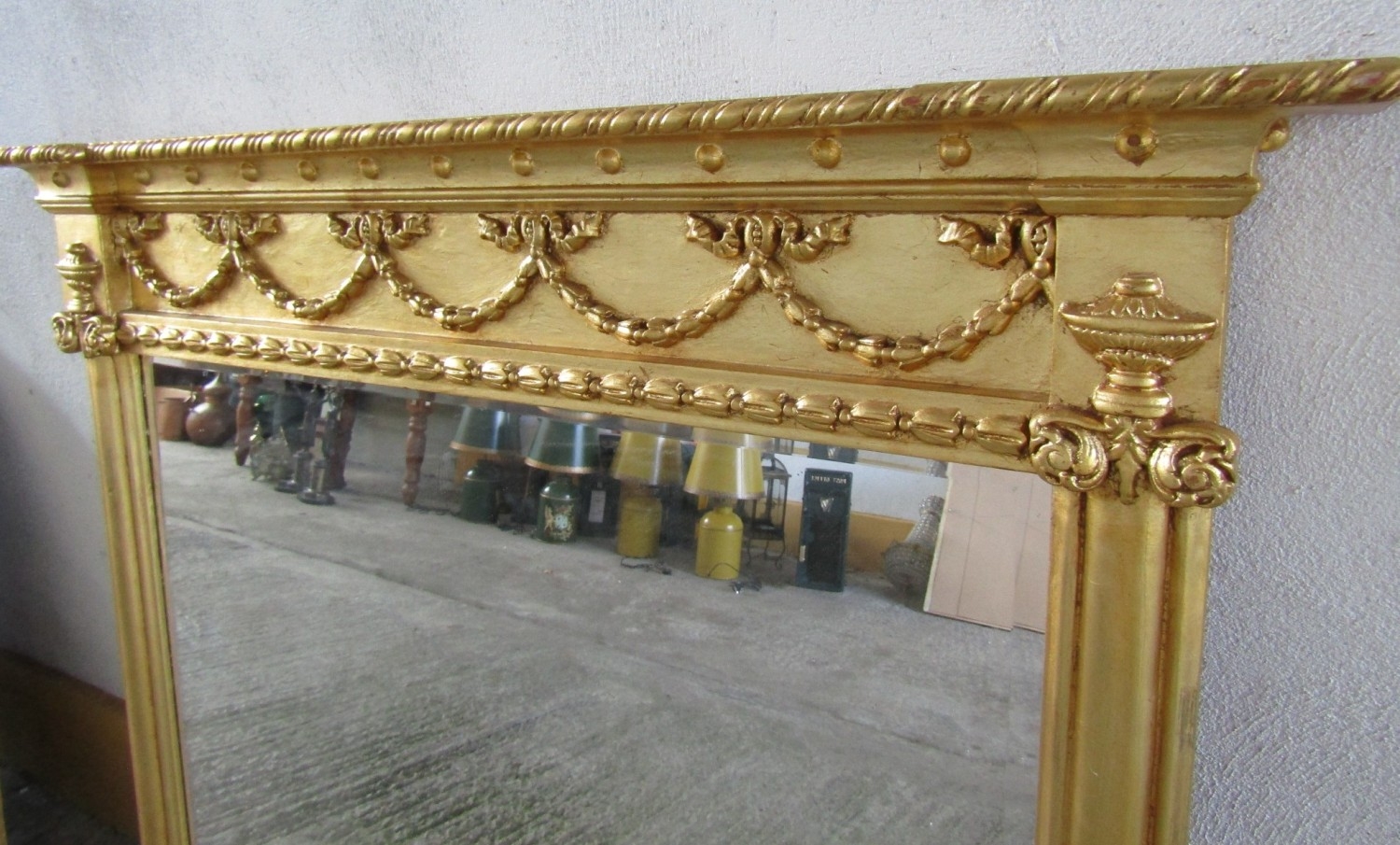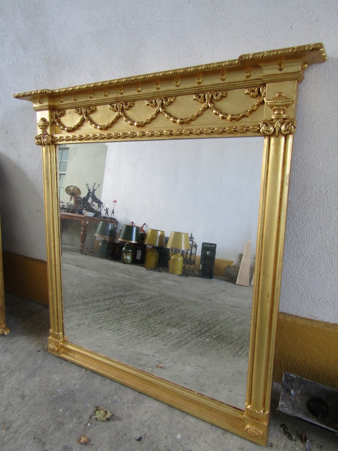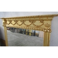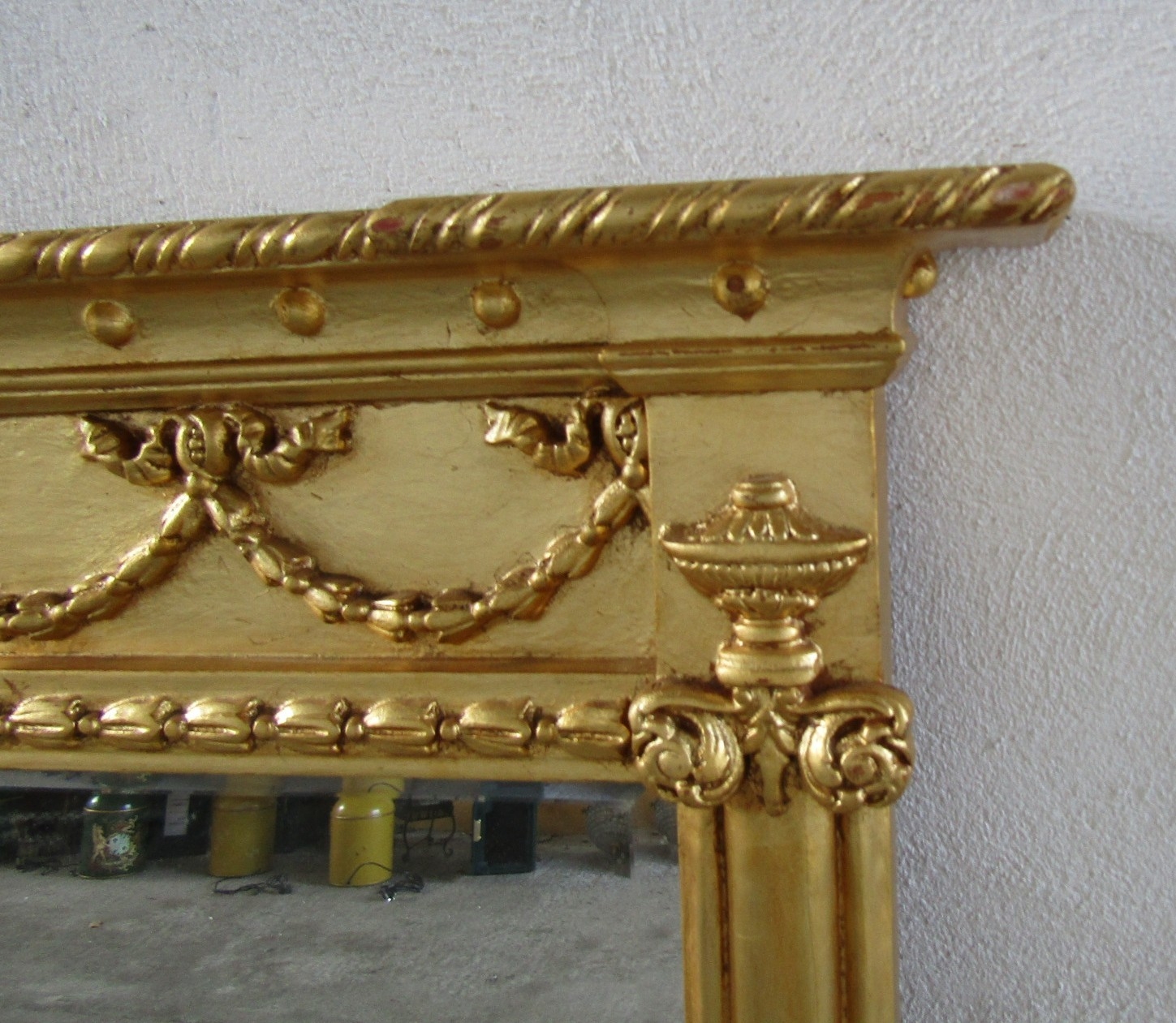 Rectangular Form Gilded Over Mantle Mirror with Upper Carved Swag Decoration Approximately 48 Inches Wide x 56 Inches High