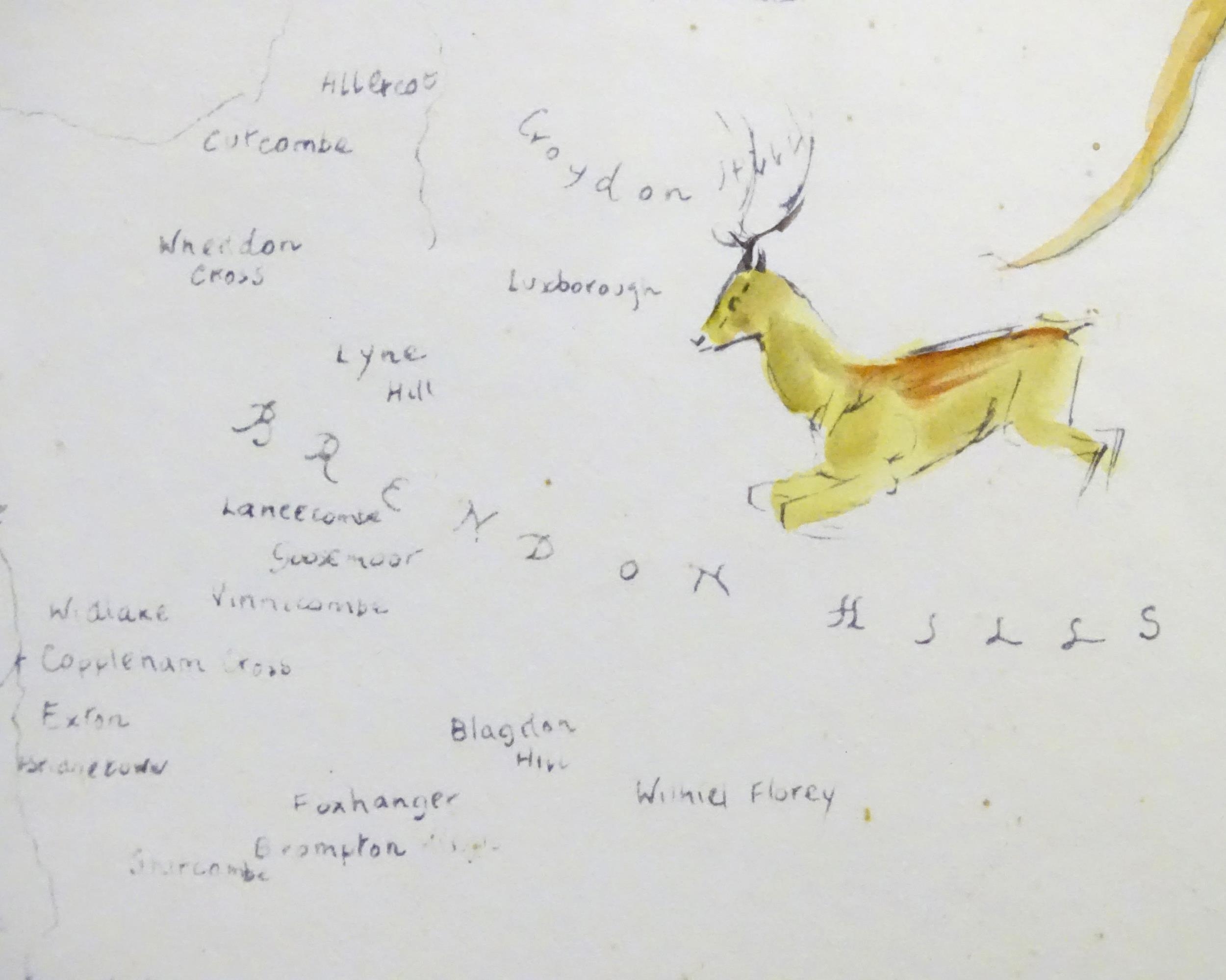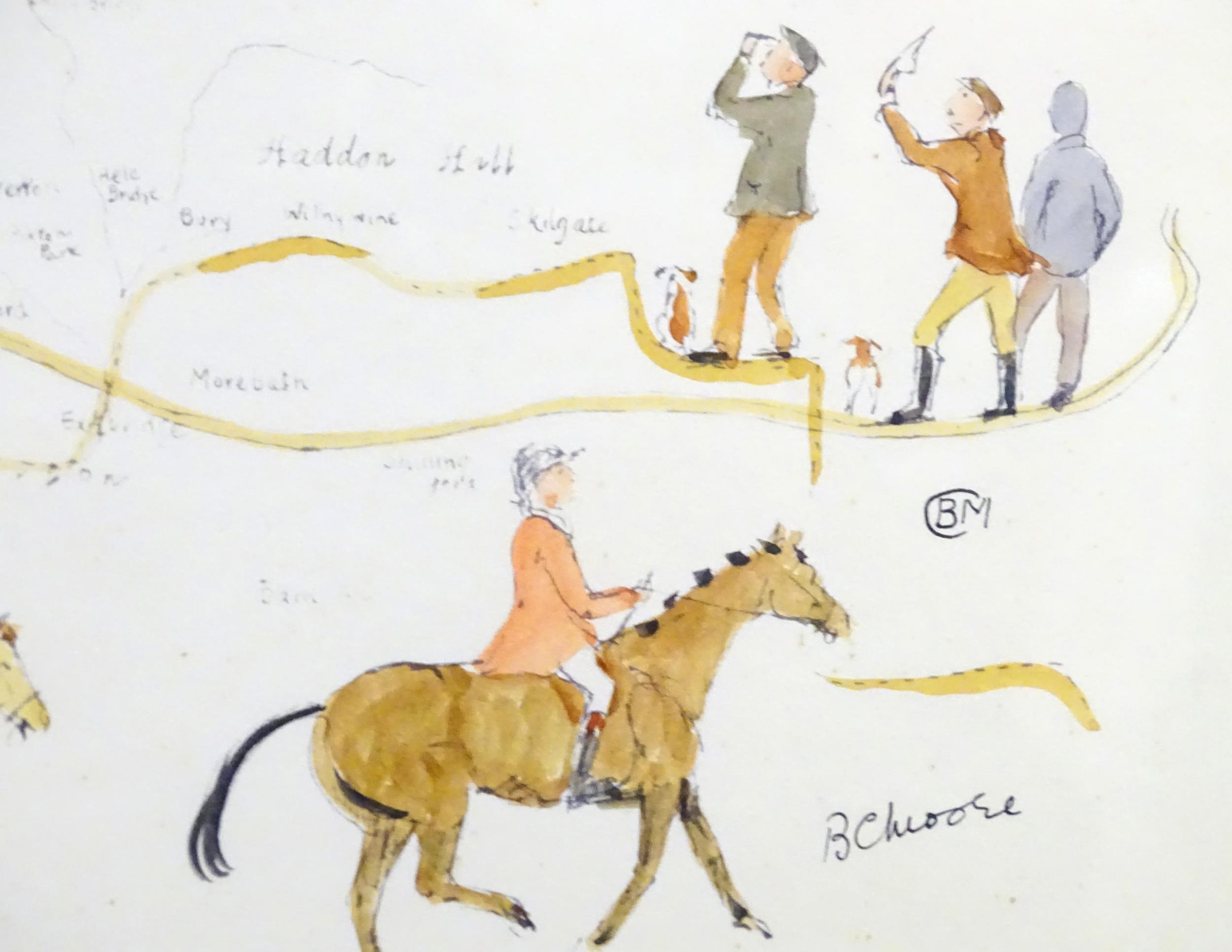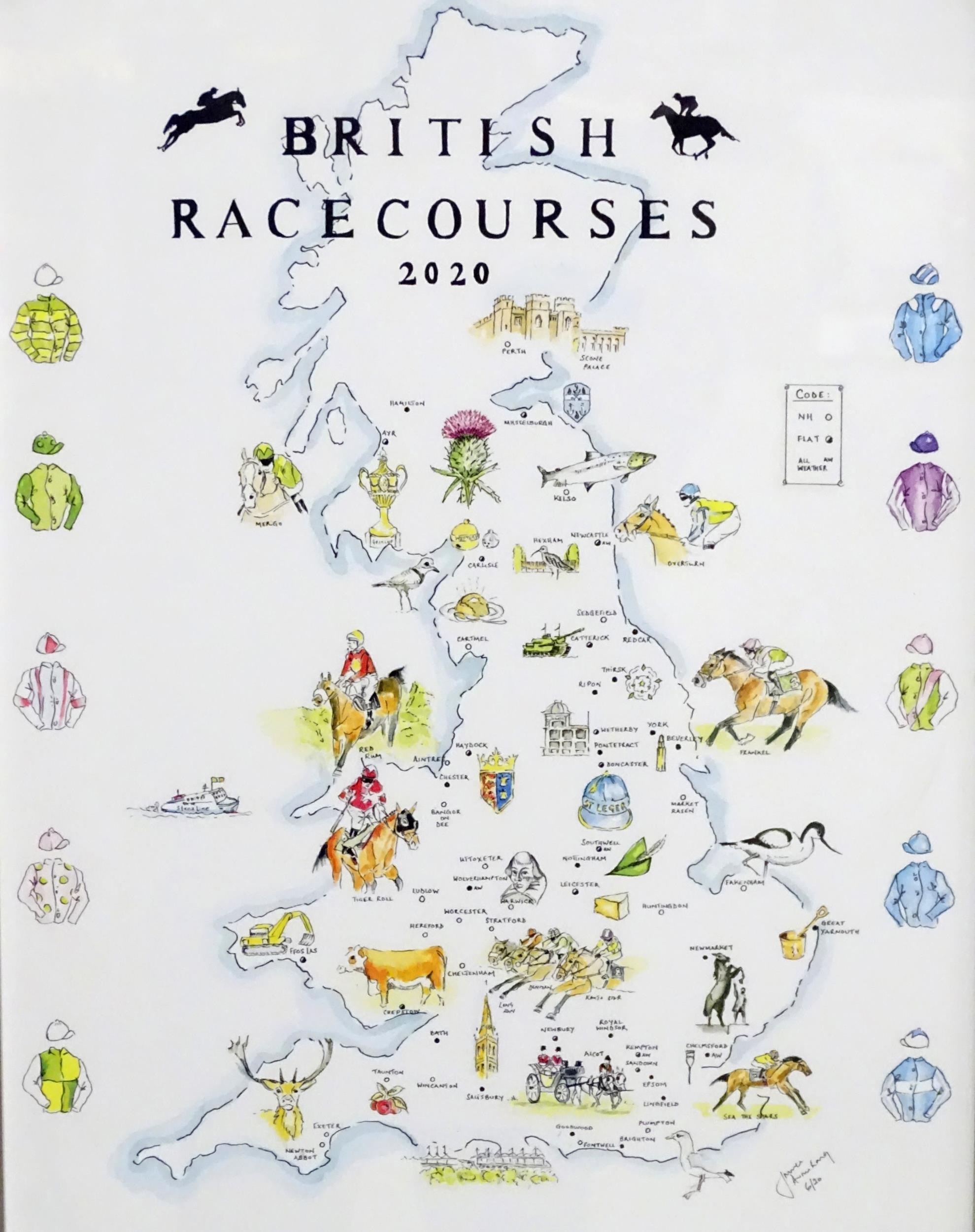 Two prints comprising a map of British Racecourses after James Armstrong, and a hunting print depicting a map titled Devon & Somerset Staghounds. Largest approx. 15 1/2" x 23 1/4" (2)