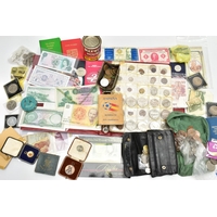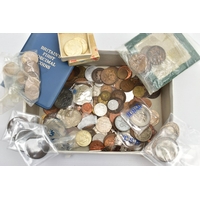 A SHOE BOX CONTAINING WORLD COINAGE, to include a small amount of silver coinage
