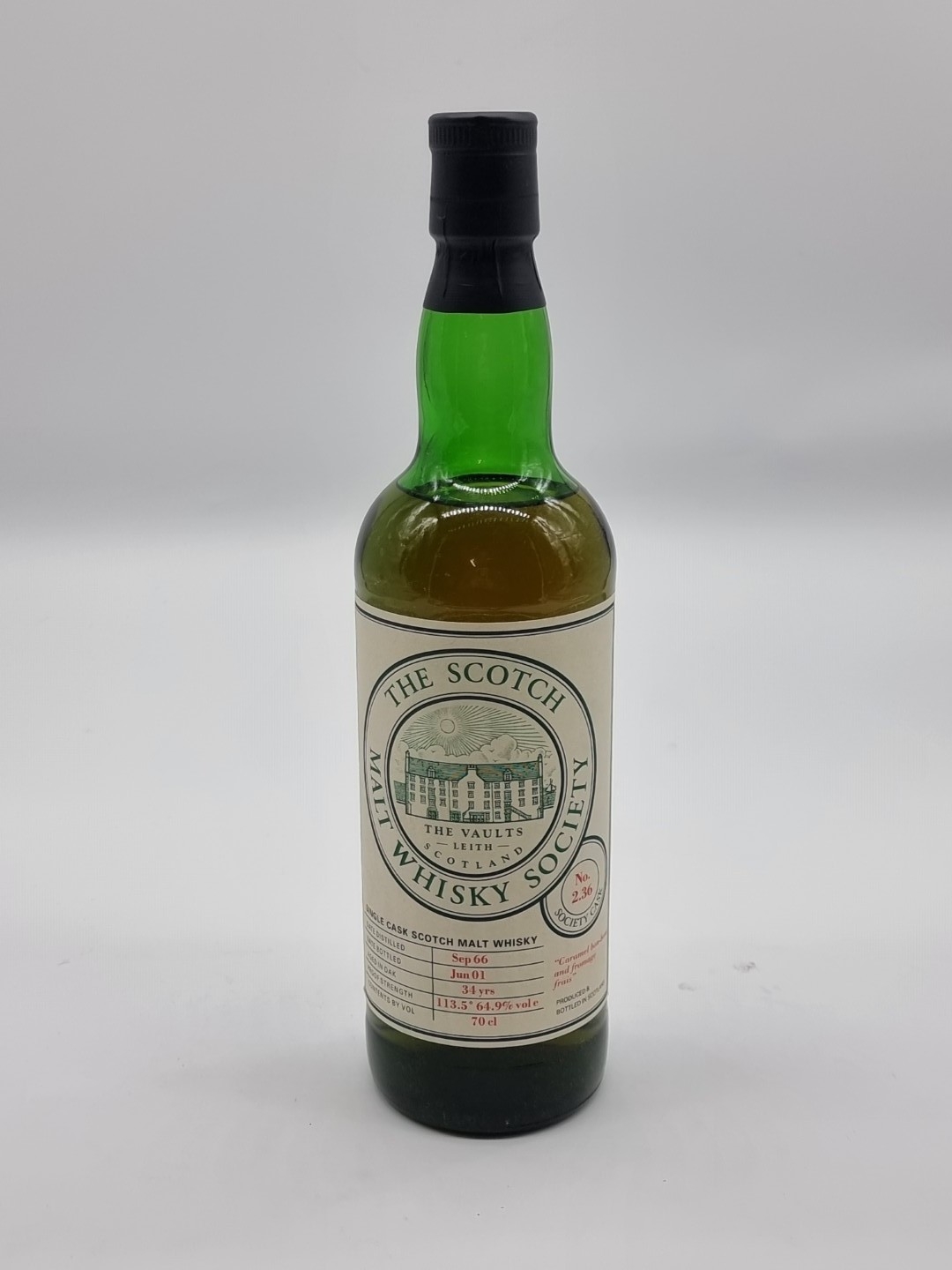 A 70cl bottle of The Scotch Malt Whisky Society Glenlivet 1966 34 Year Old Whisky, bottled June 2001, 64.9% abv, cask No.2.36.