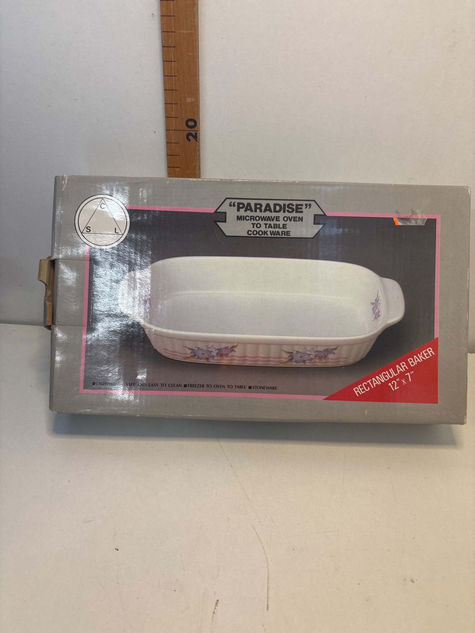 New Paradise microwave oven-safe 14 oz baker with floral design.not postable