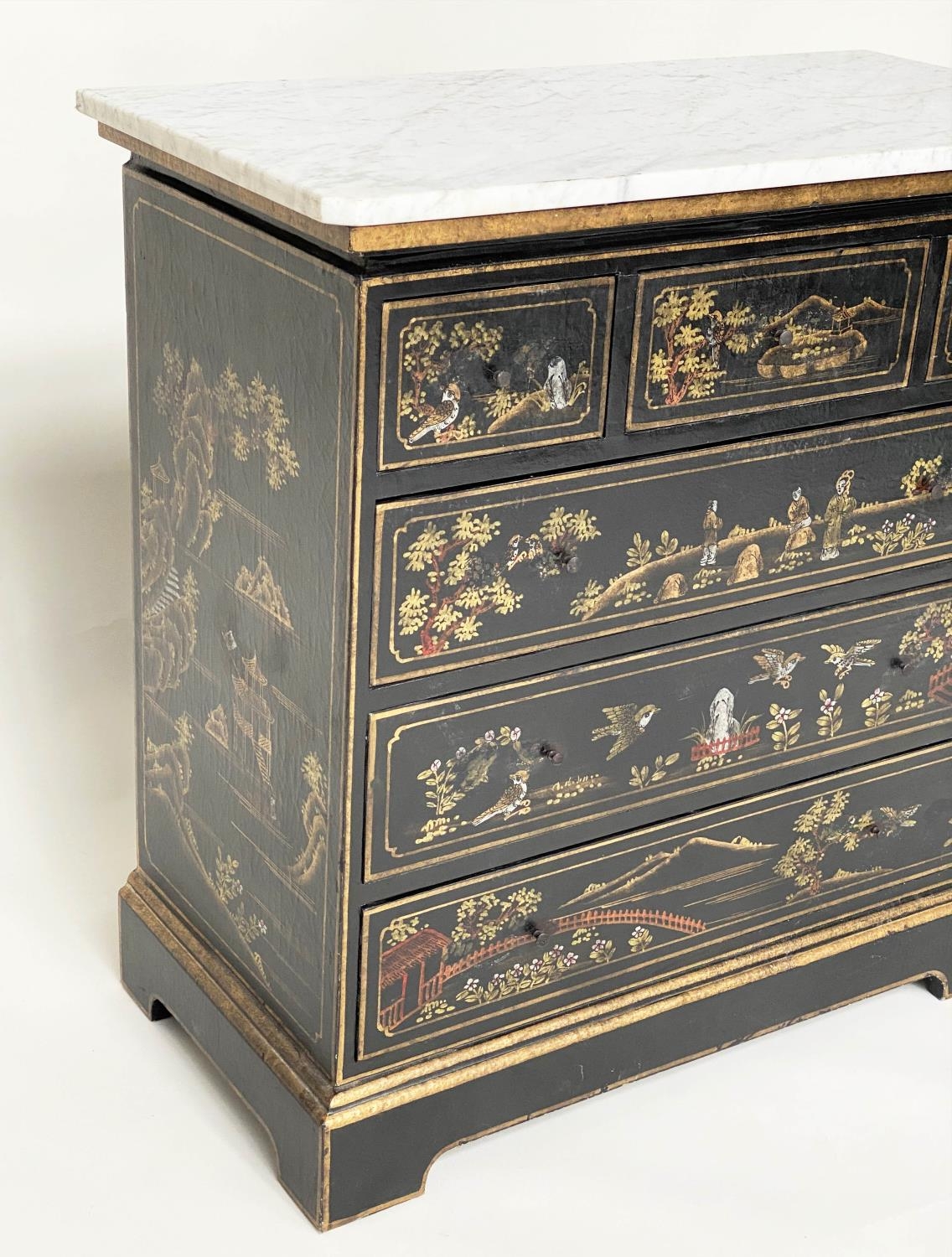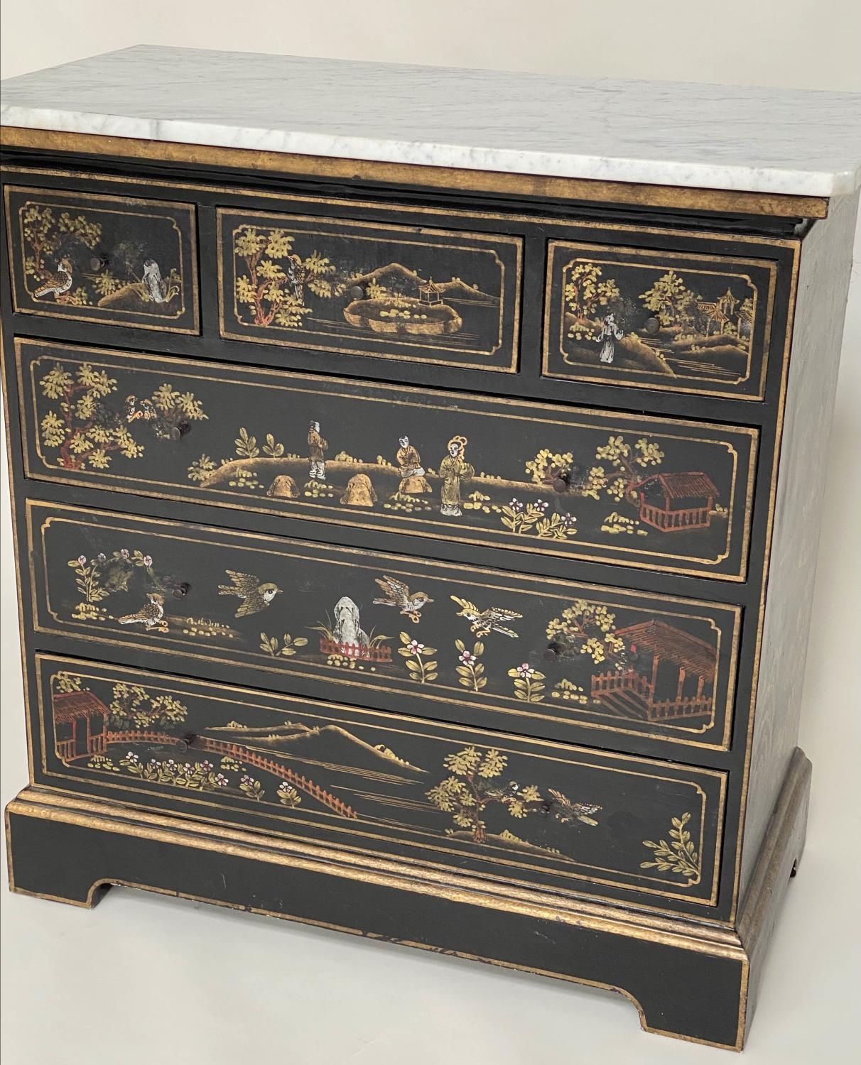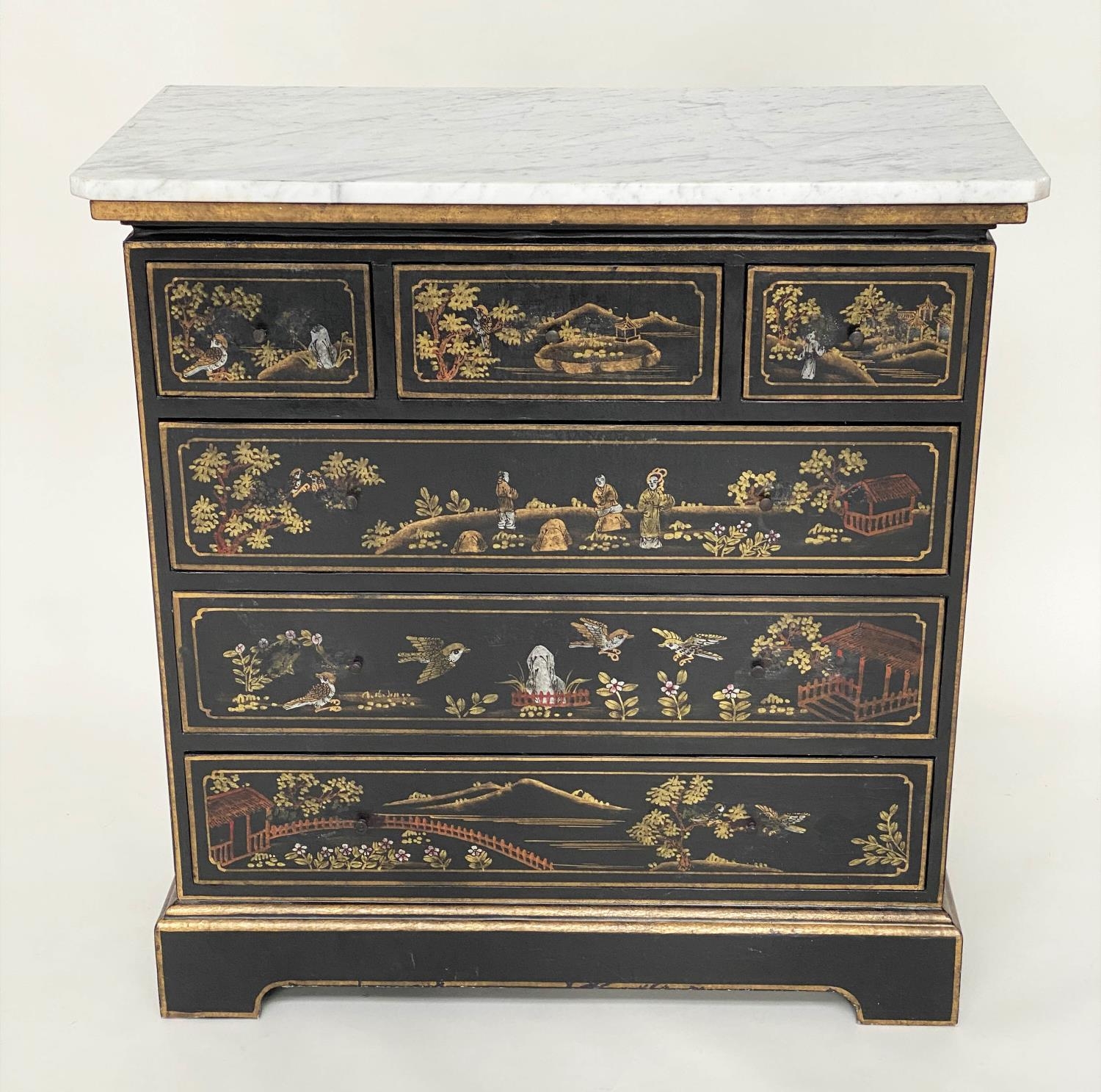 CHEST, George III style lacquered and gilt Chinoiserie decorated with three short above three long drawers, 86cm W x 44cm D x 88cm H.