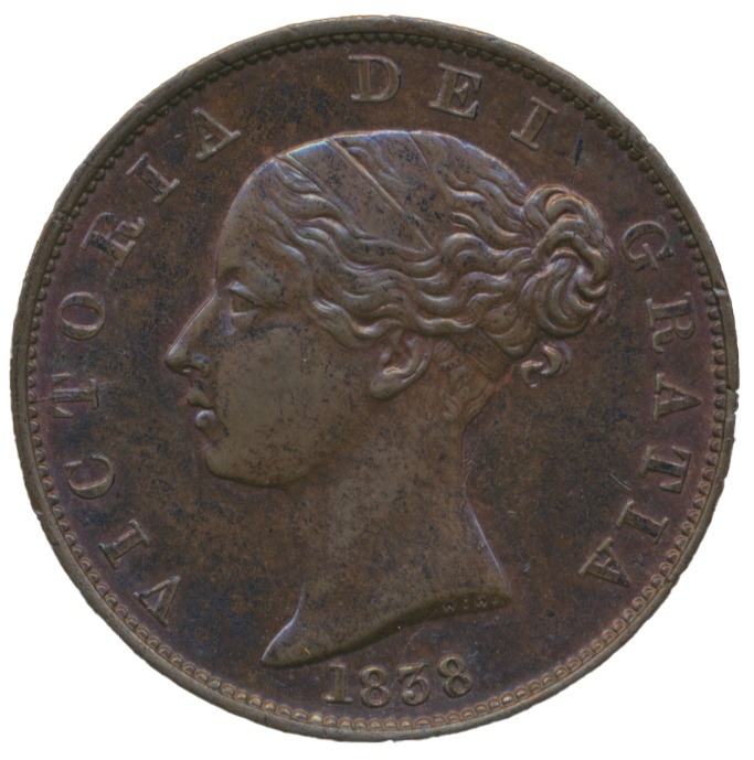 Range of copper half pennies with 1838, 1853, 1858 uncirculated, 1826 and 1837 nearly extremely fine. Qty 5 (Y)