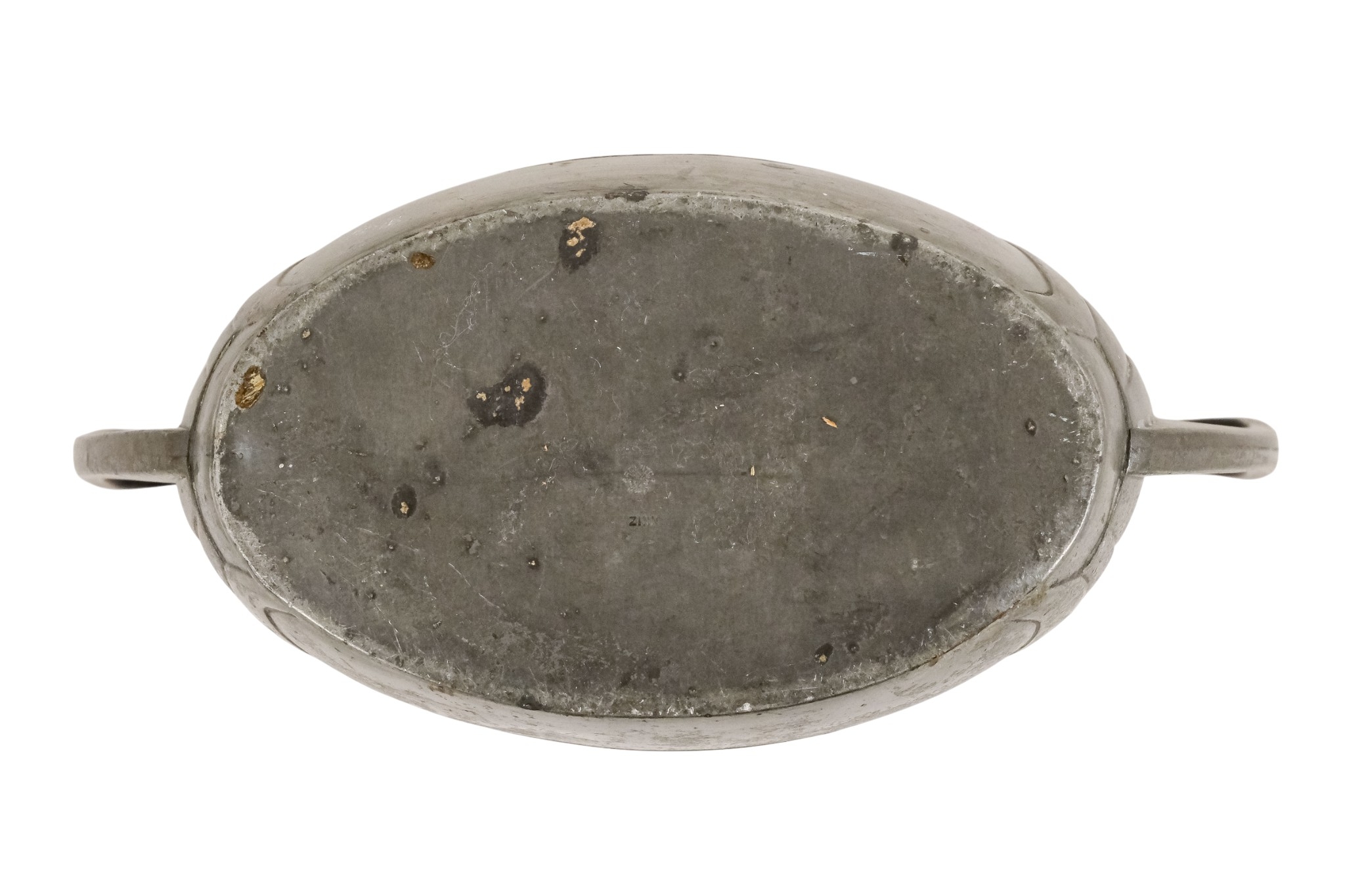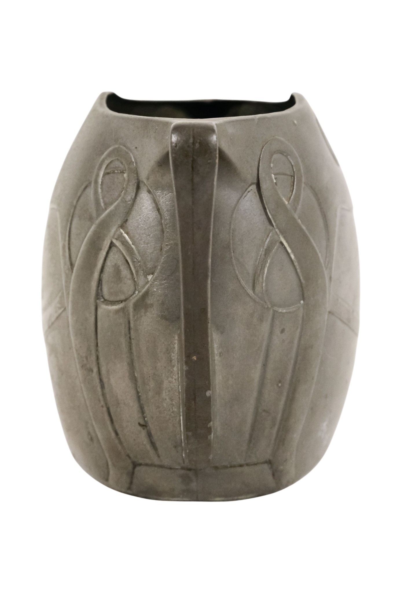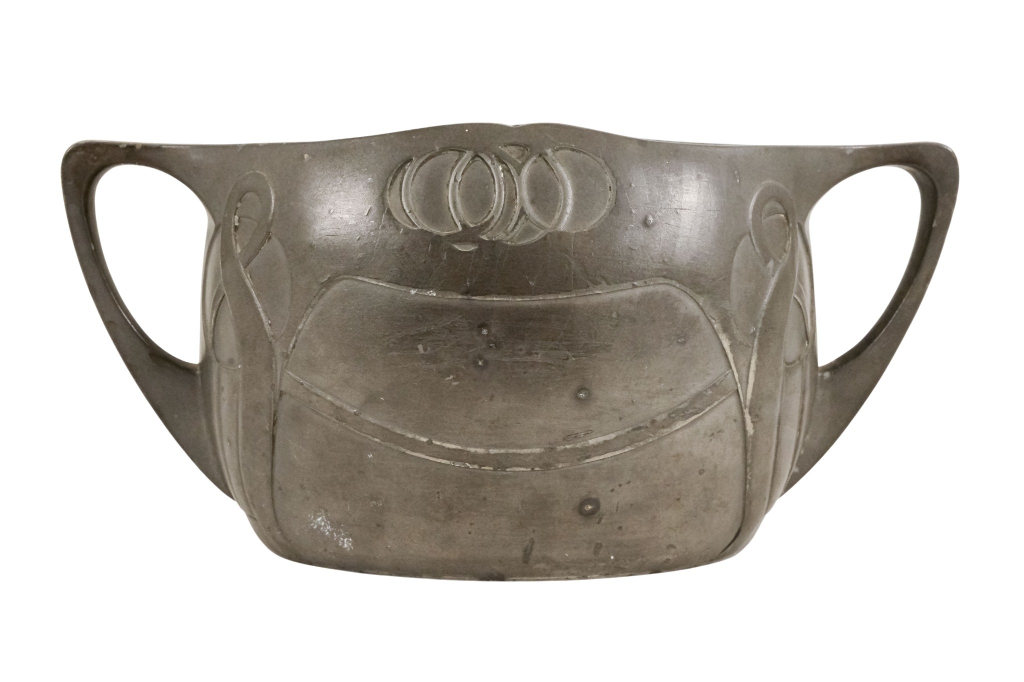 An Art Nouveau pewter twin handled vase by C A Munchmeyer & Co. - stamped Argentor to base, of oval form and cast with stylised flowers, height 13cm, width 25cm.