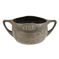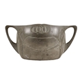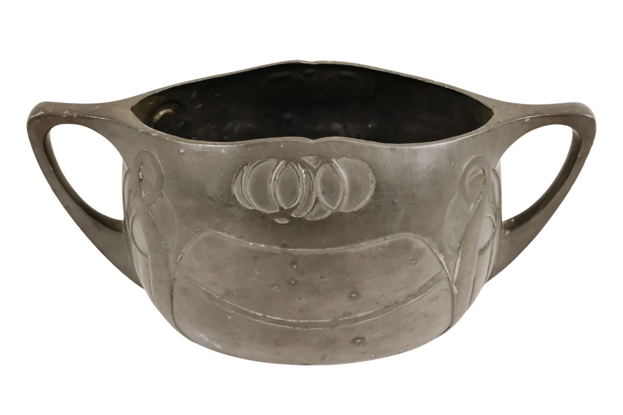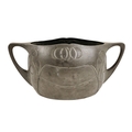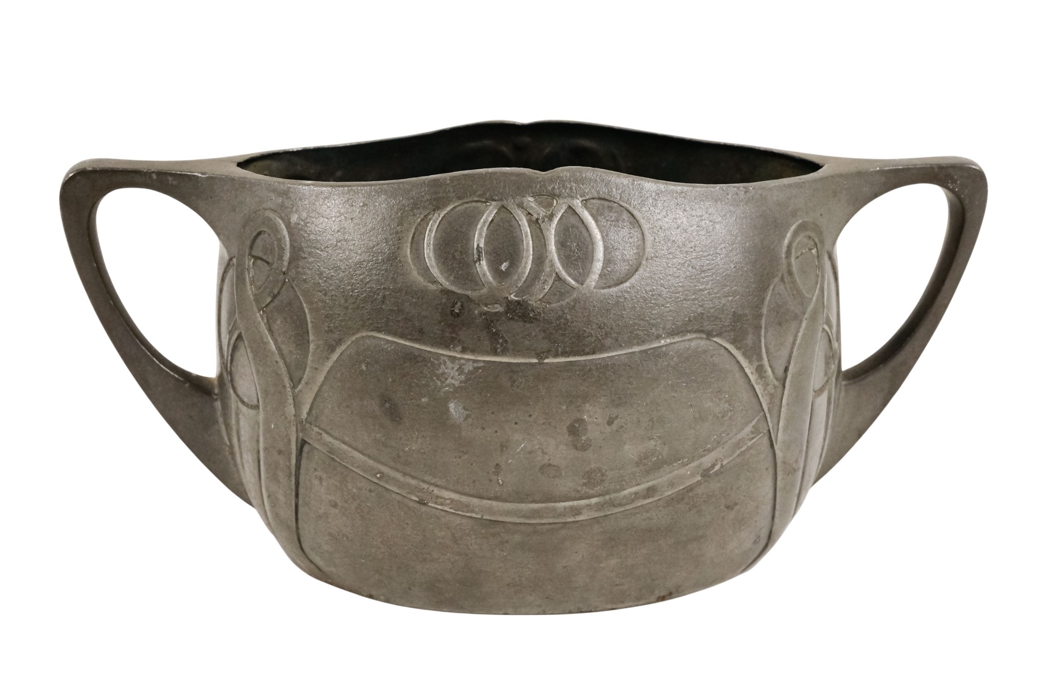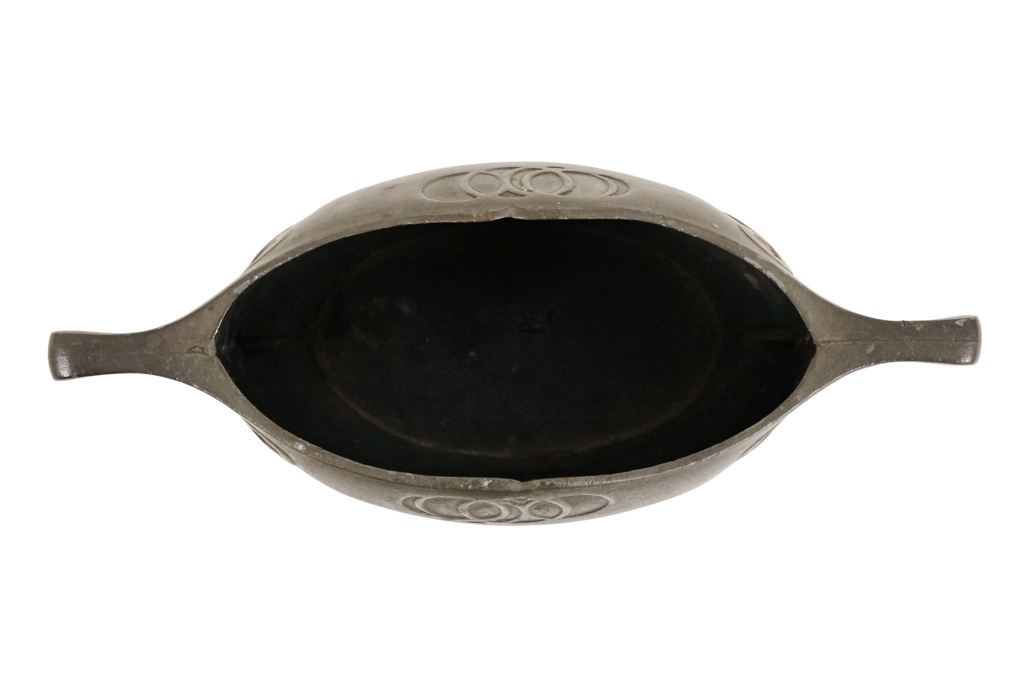 An Art Nouveau pewter twin handled vase by C A Munchmeyer & Co. - stamped Argentor to base, of oval form and cast with stylised flowers, height 13cm, width 25cm.