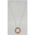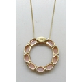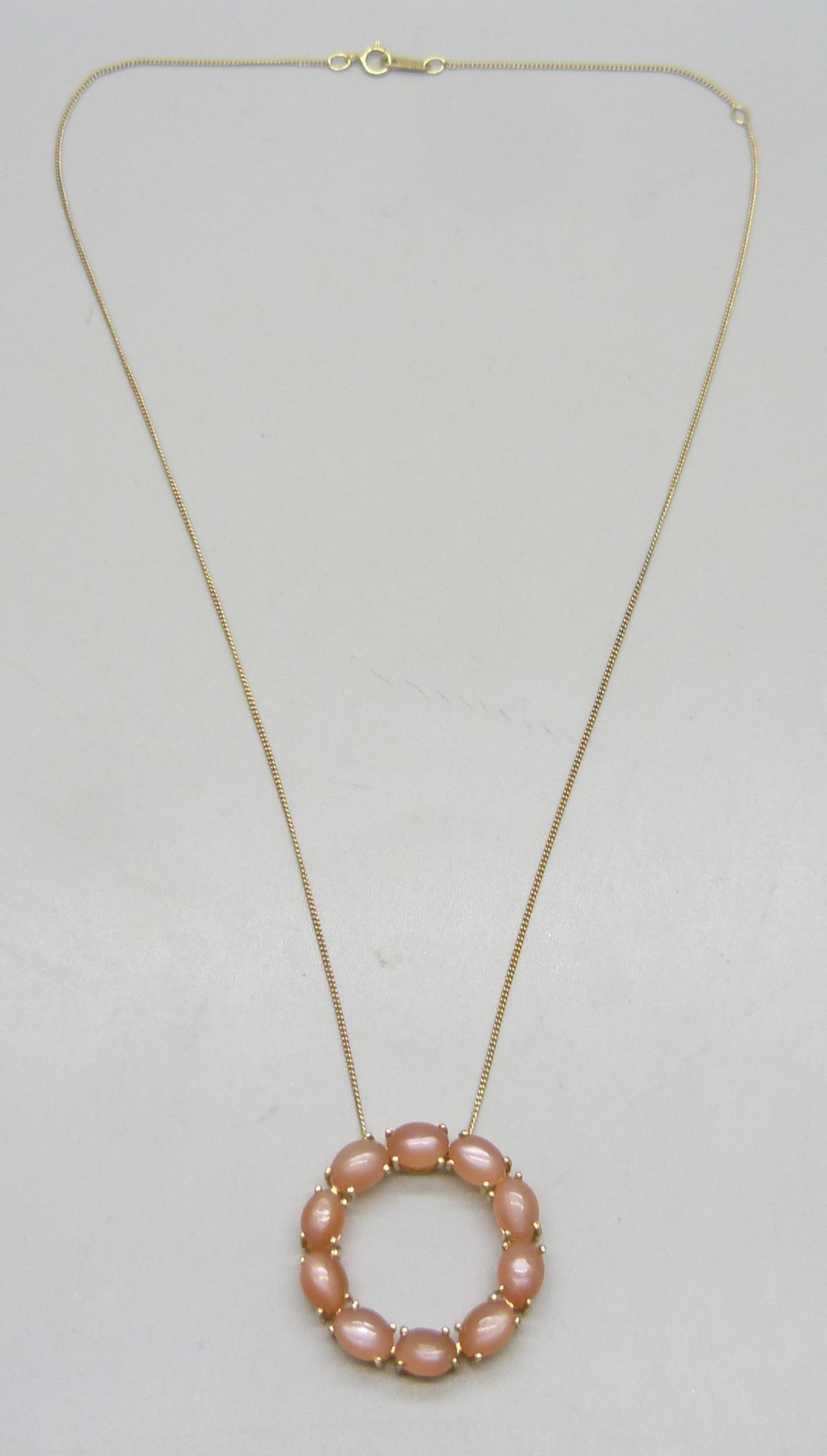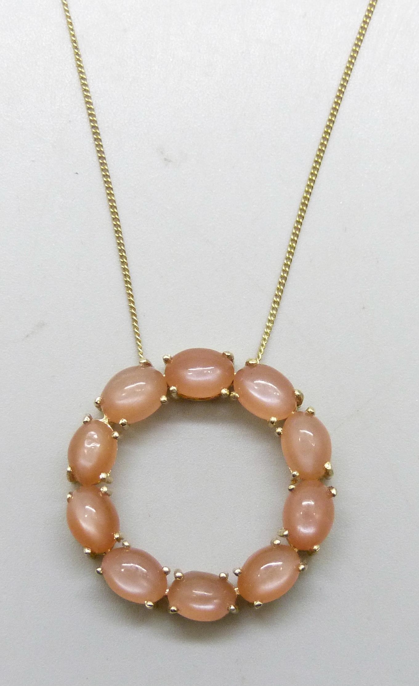 A Mitiyagoda peach moonstone Circle of Life sterling silver pendant on a silver gilt chain, 2.8cm pendant