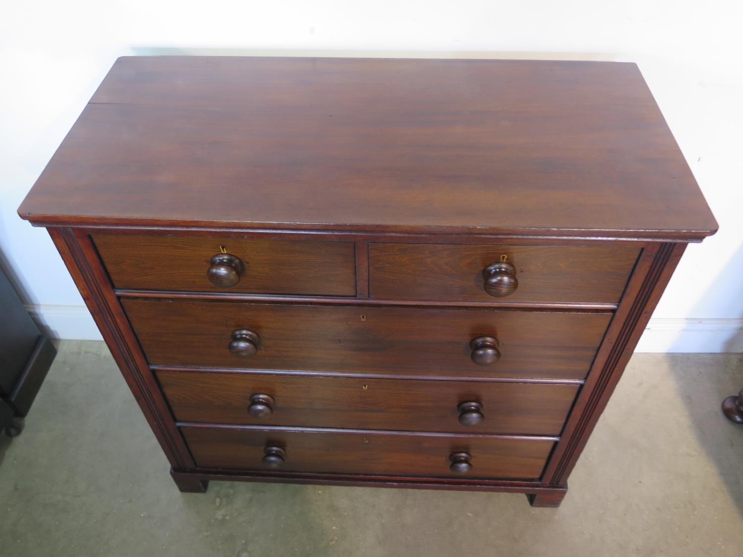 A Victorian walnut two over three chest of drawers - Height 100cm x 104cm x 49cm - in clean restored condition