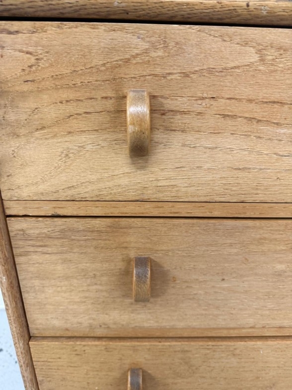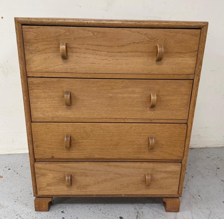 A Mid Century light oak four drawer chest of drawers H77cm W60cm D38cm