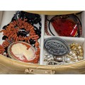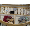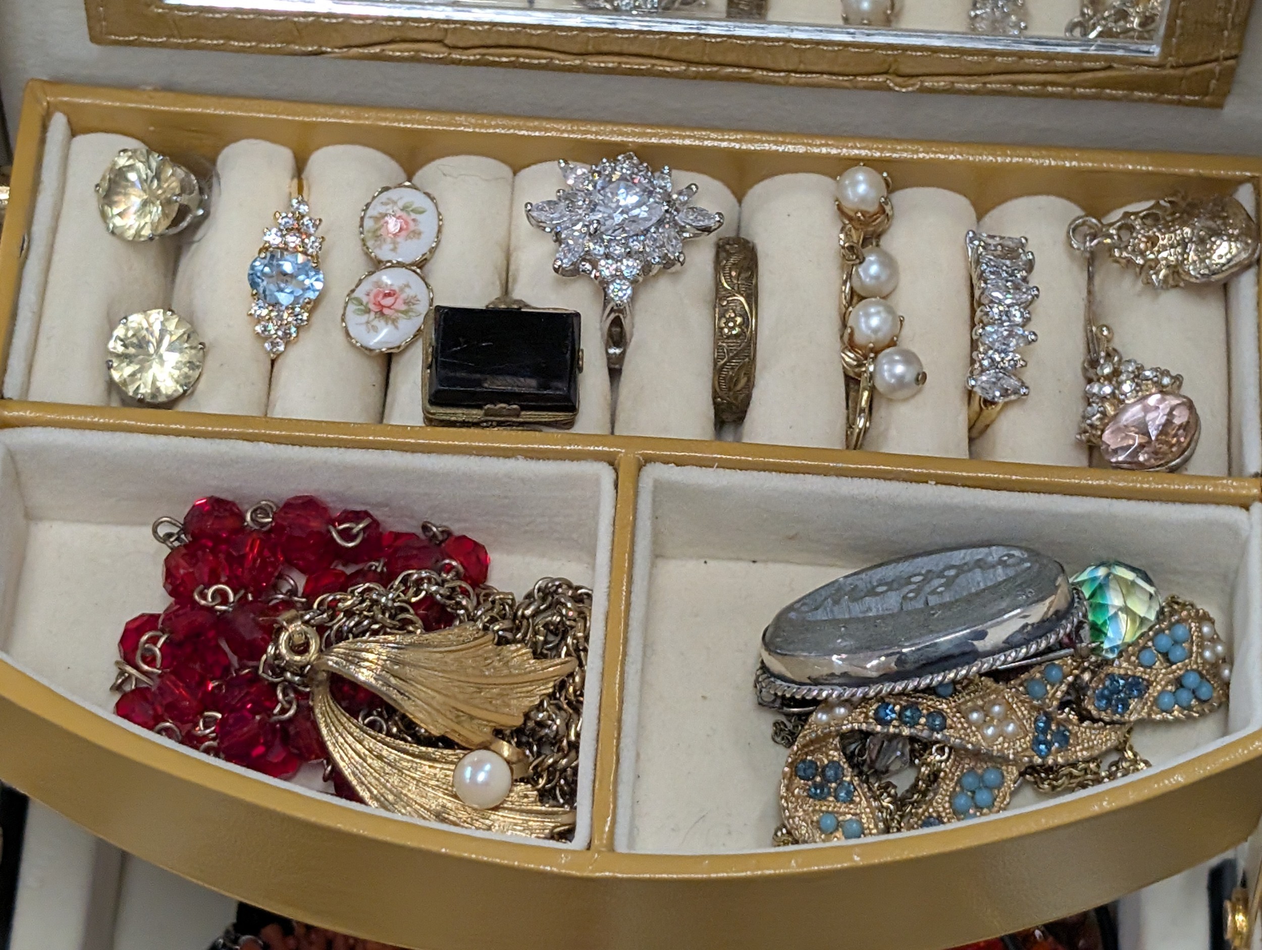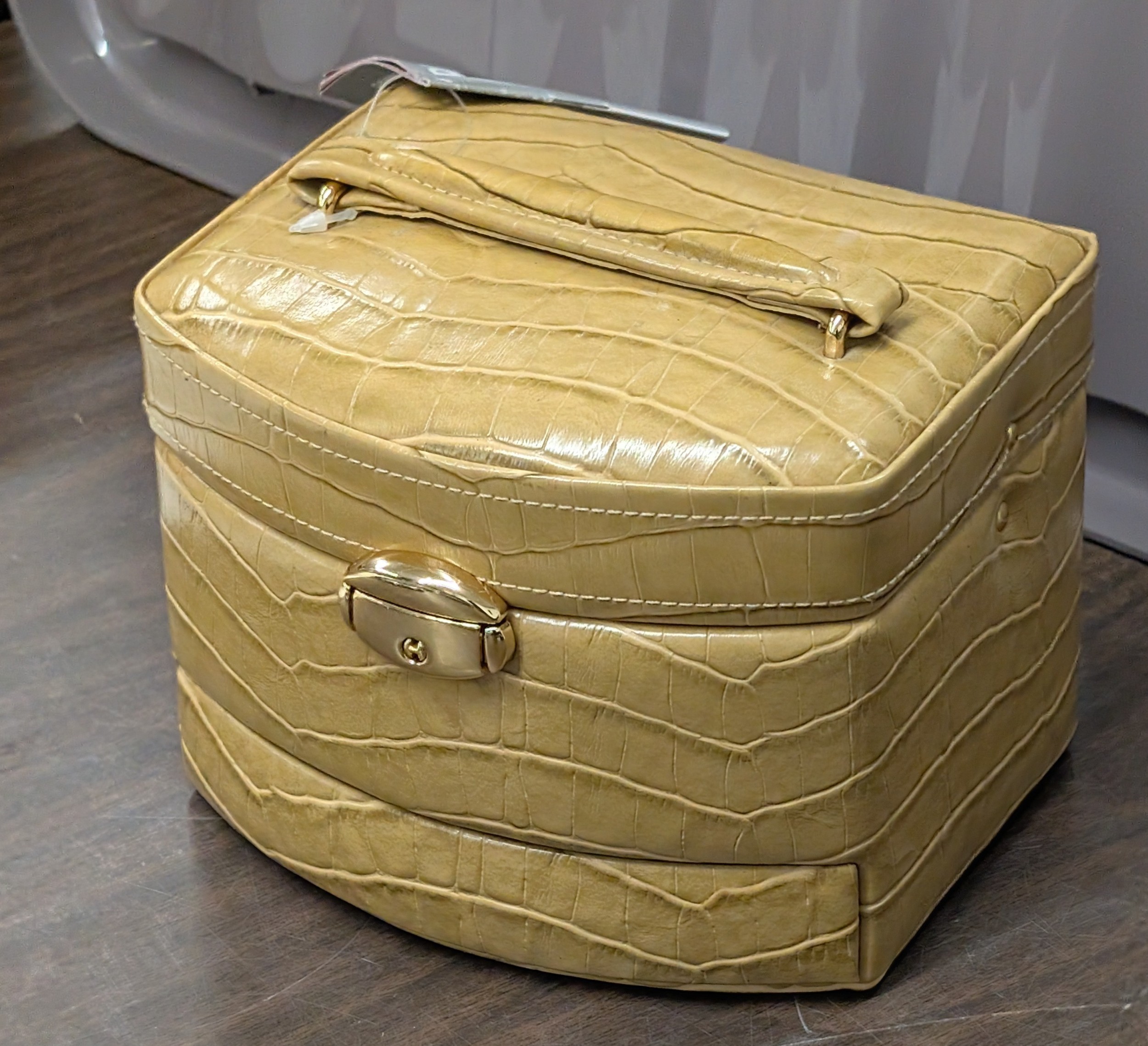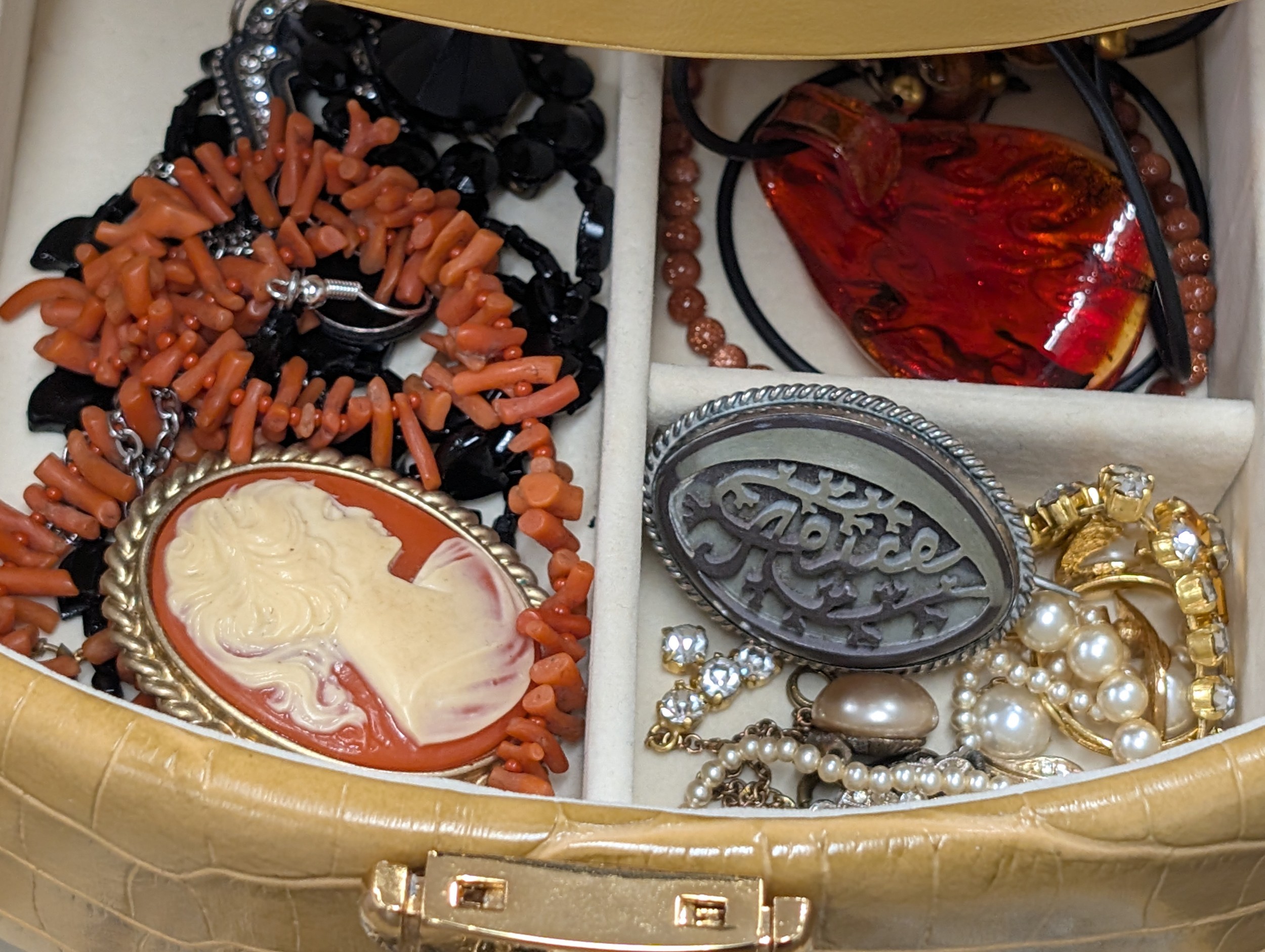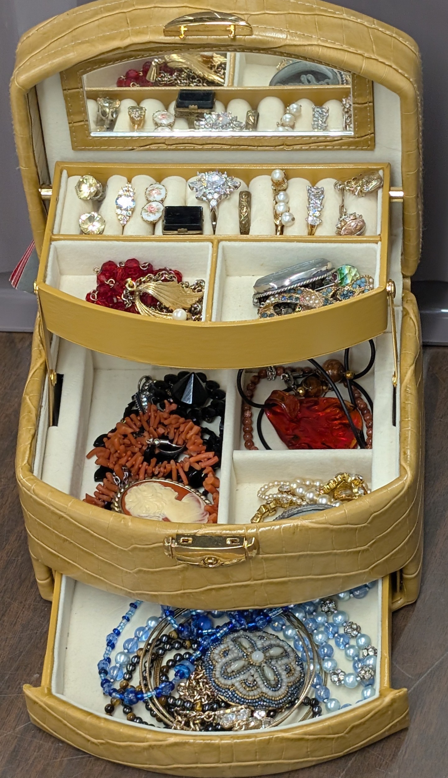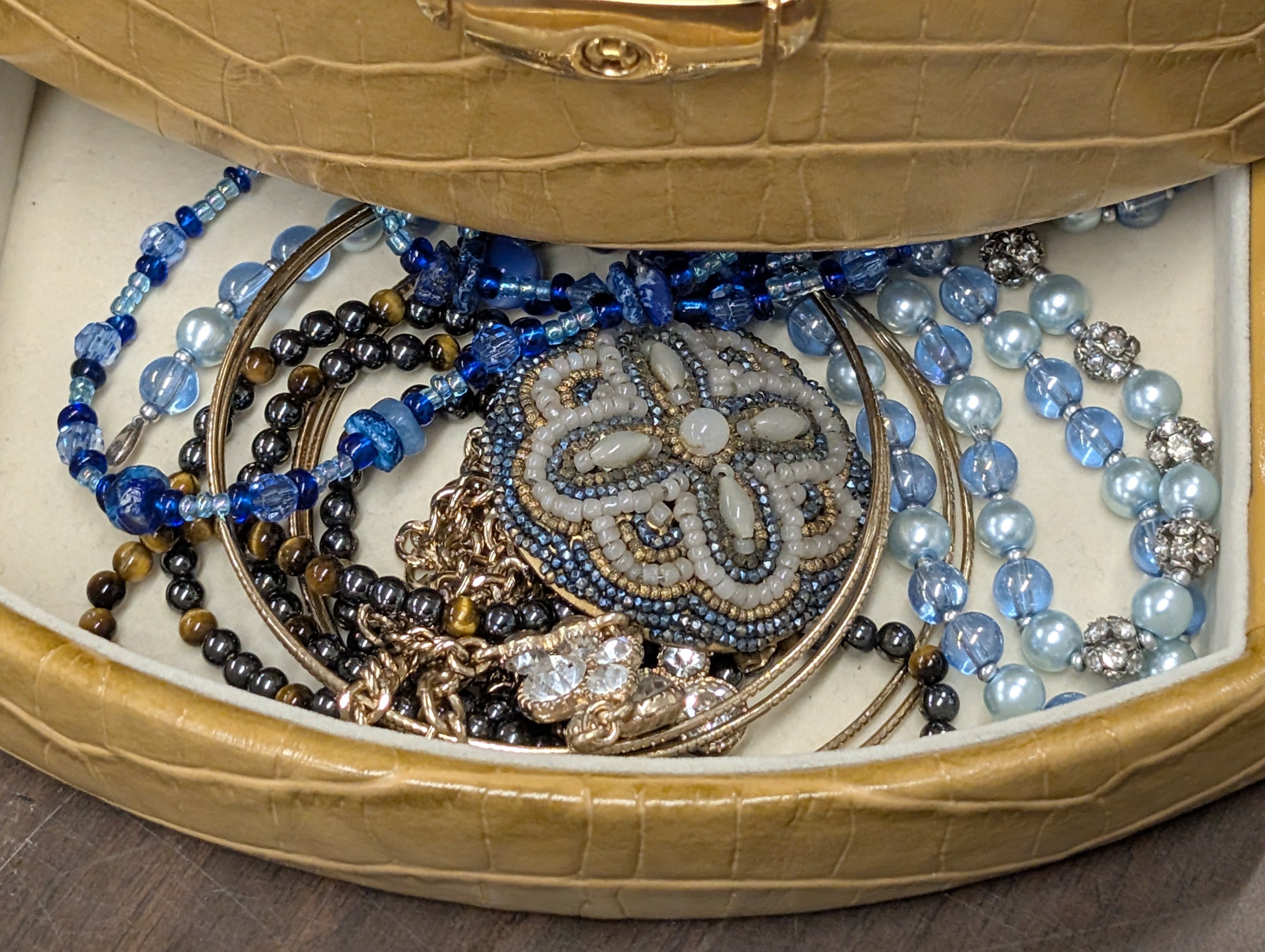 A Modern Faux Crocodile Multi-Tiered Jewellery Box with a Collection of Costume Jewellery