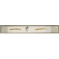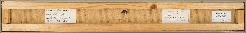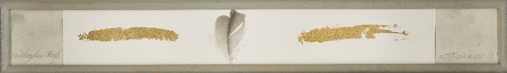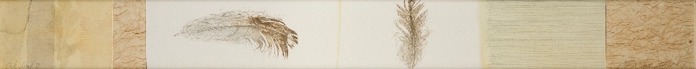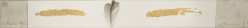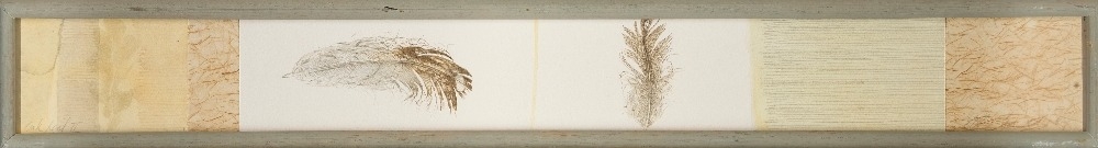 watercolour and collage on paper, signed and dated lower right 'ELM Lawrence '96', titled lower left 'Oak Leaf II', 69 x 7 cm: together with another work on paper by the same artist entitled 'Duddingston Frost', 6.8 x 60 cm (2) (ARR)