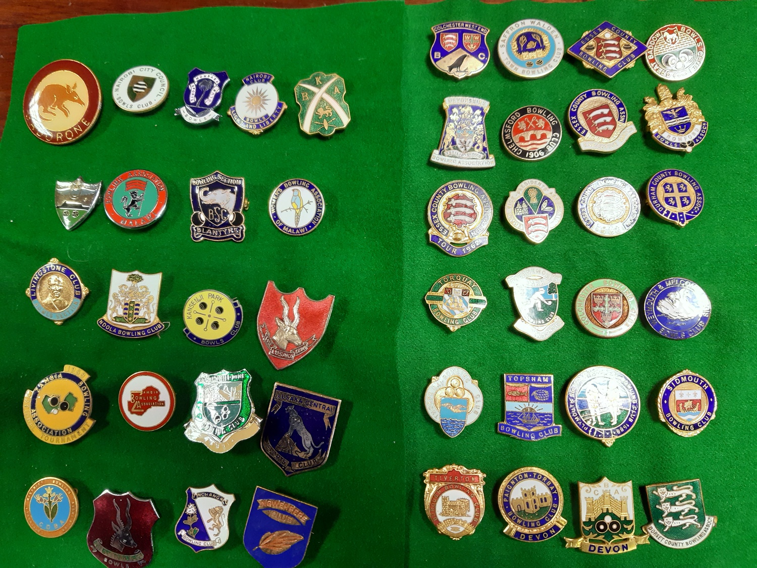 A collection of English enamelled bowls badges, and others from Botswana, Kenya, Malawi and Zambia -