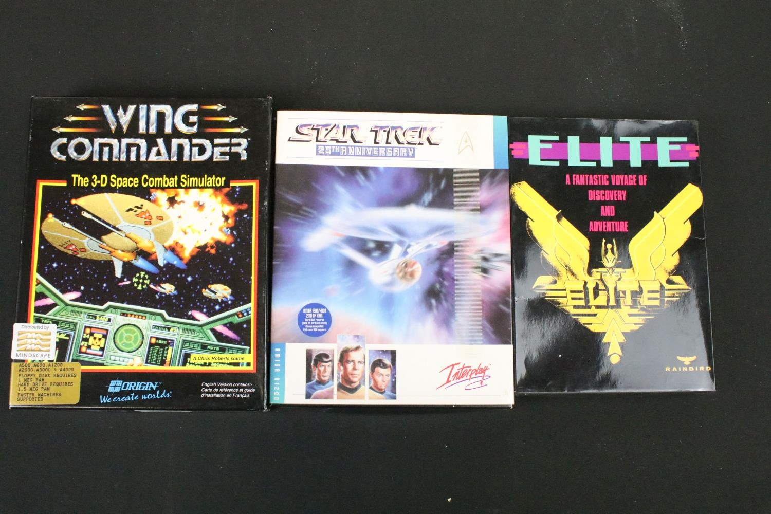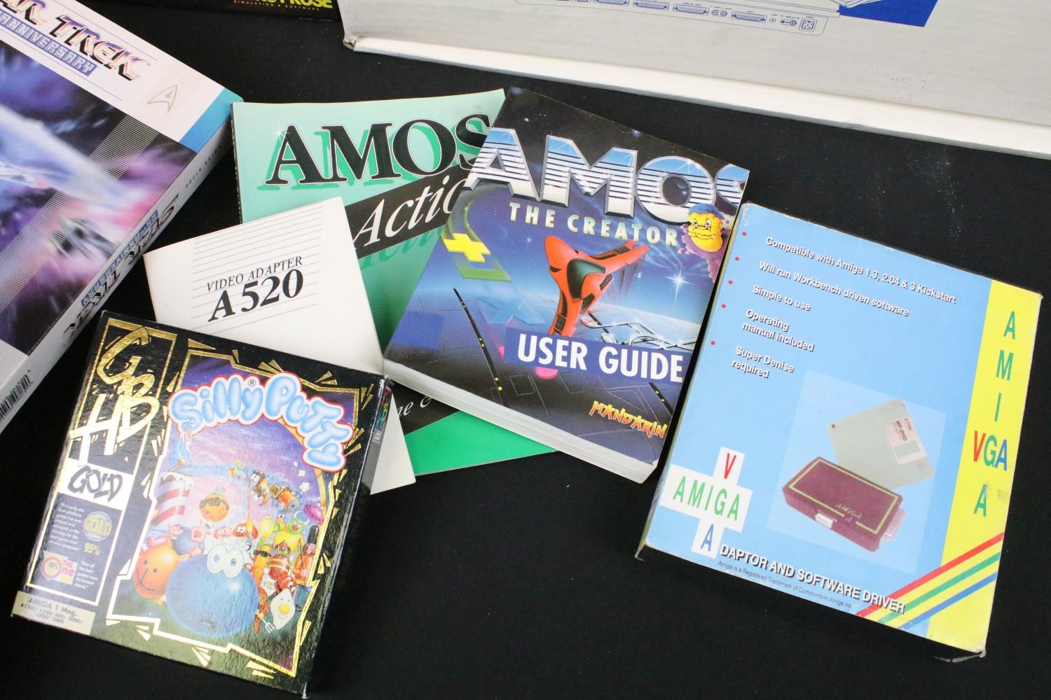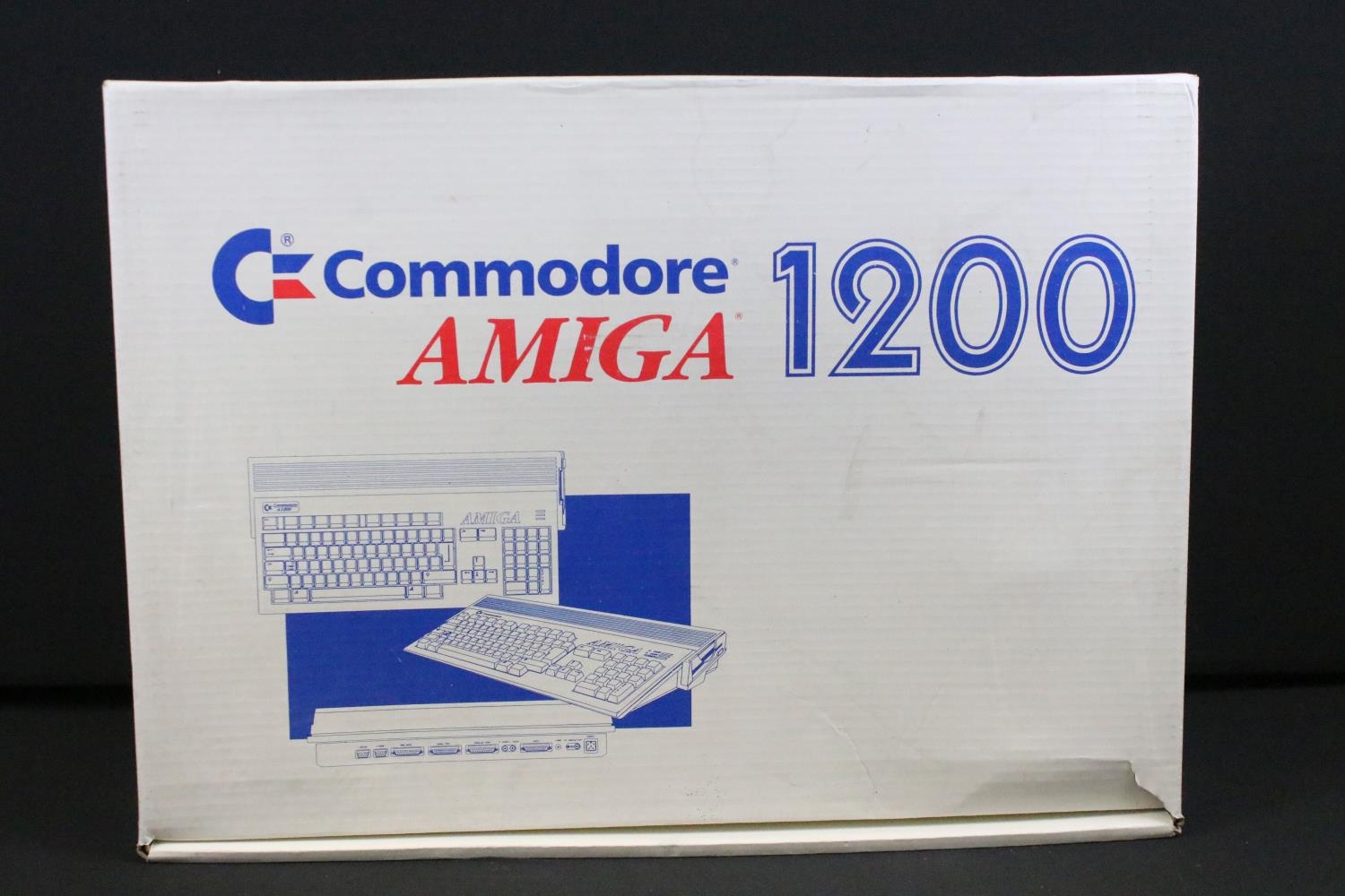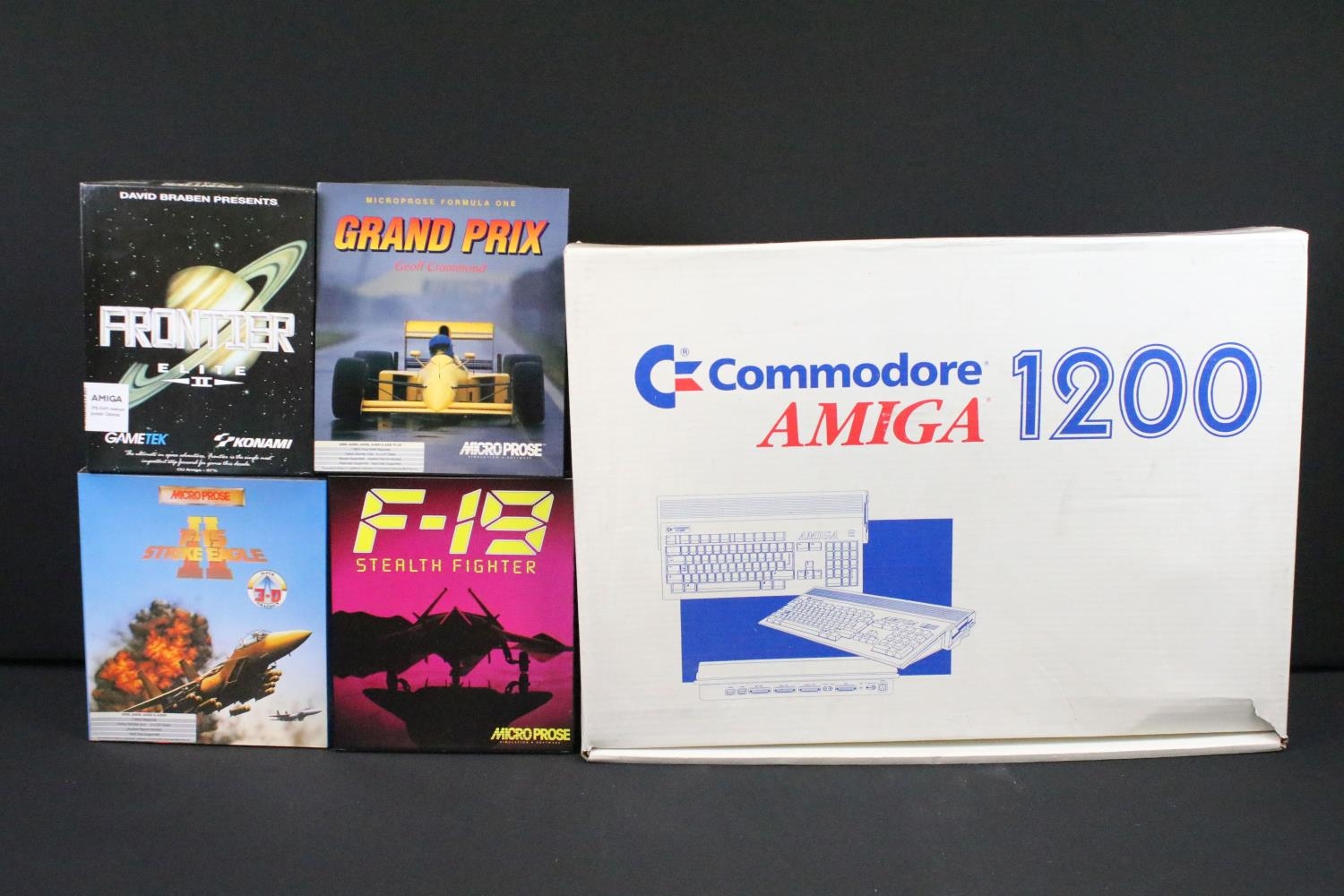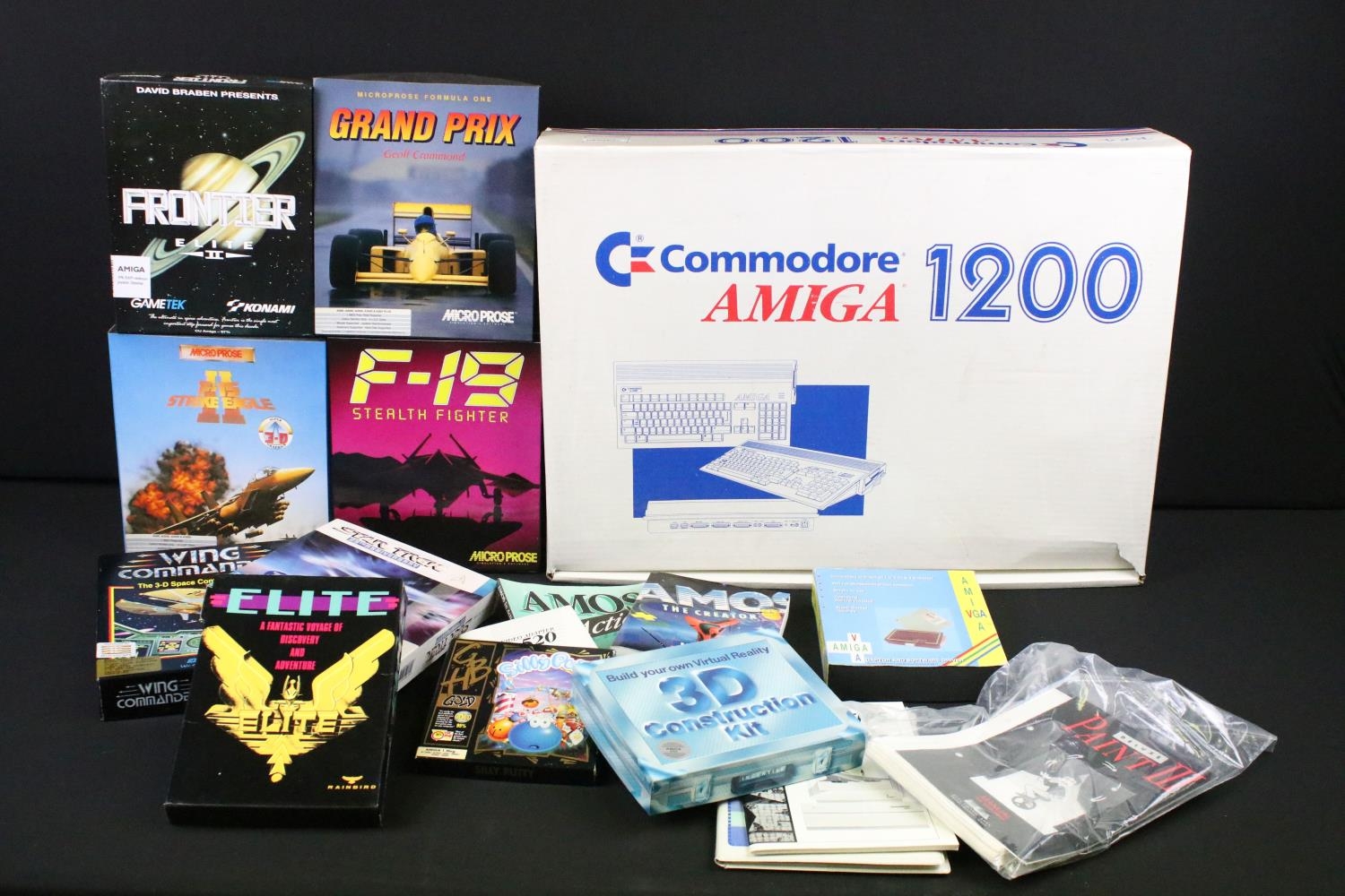 Retro Gaming - Boxed Commodore Amiga 1200 (with instructions) with trapdoor accelerator card with 68030 CPU clocked at 40Mhz, maths co-processor and an additional 4MB RAM, together with 11 x games to include Elite, Frontier Elite II, Wing Commander, Star Trek, F-19 Stealth Fighter, F-15 Strike Eagle, Grand Prix, etc (2 boxes)
