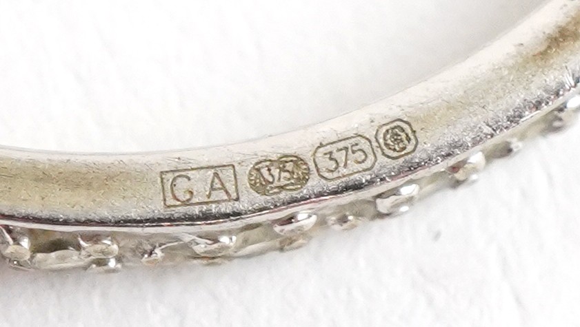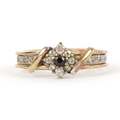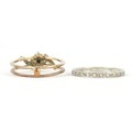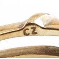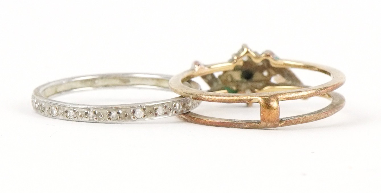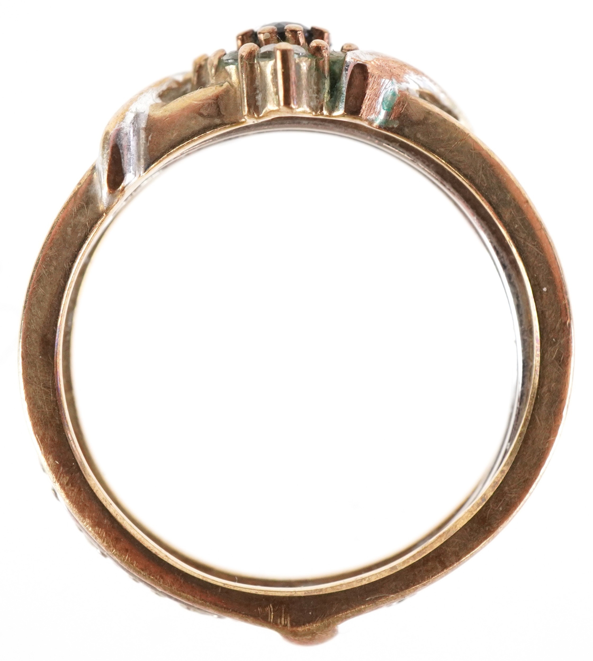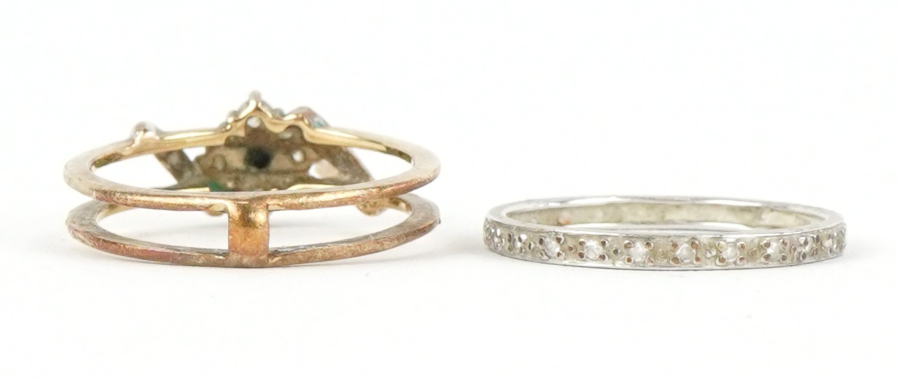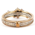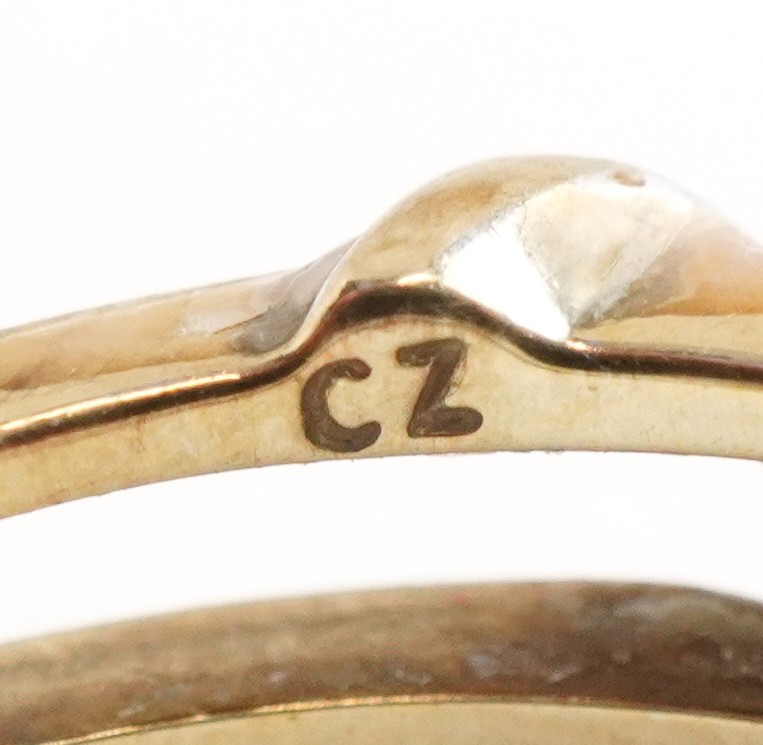 A 9ct white and yellow gold cubic zirconia and blue spinel ring with a detachable band, size N, 3.4g.