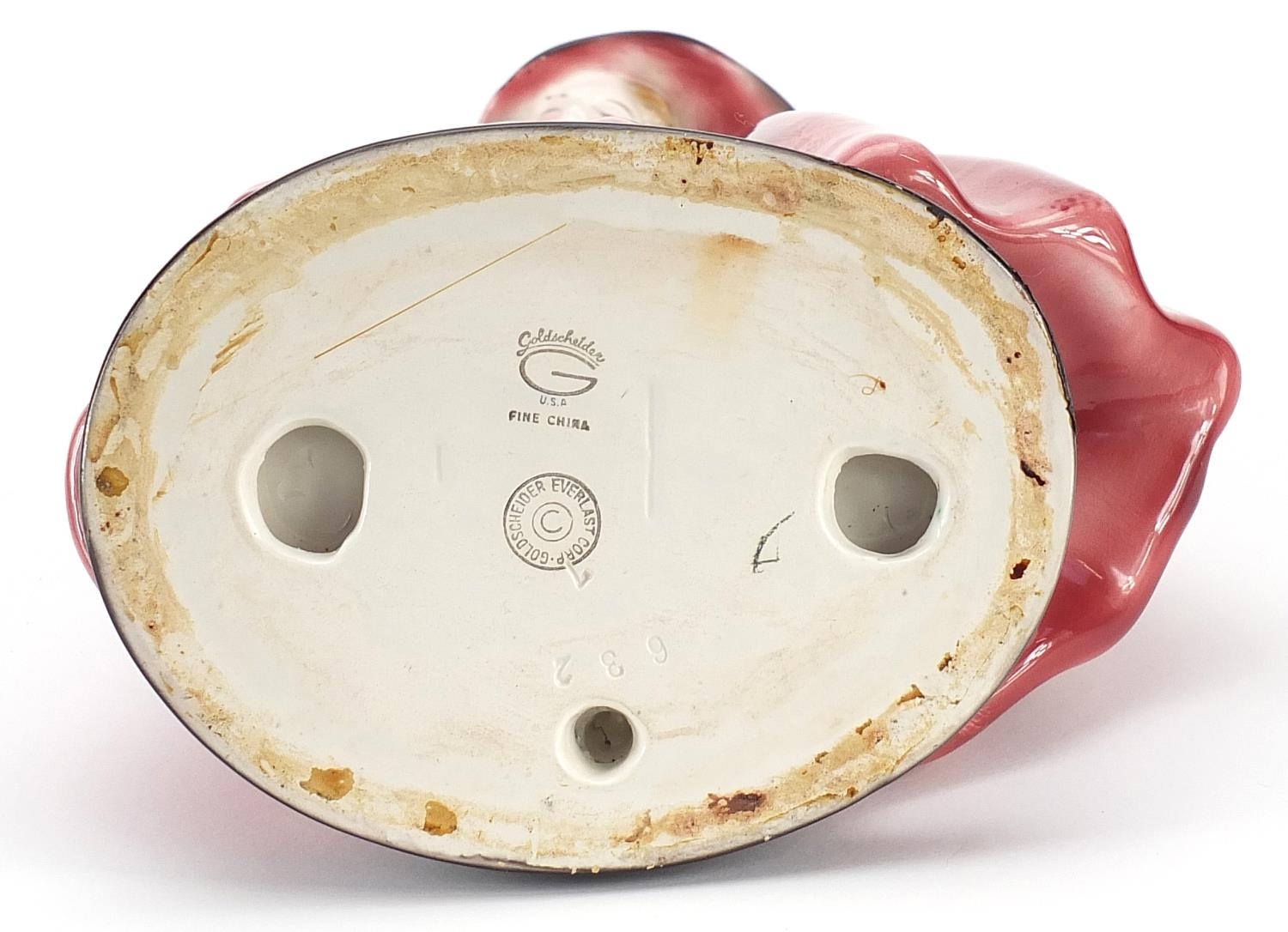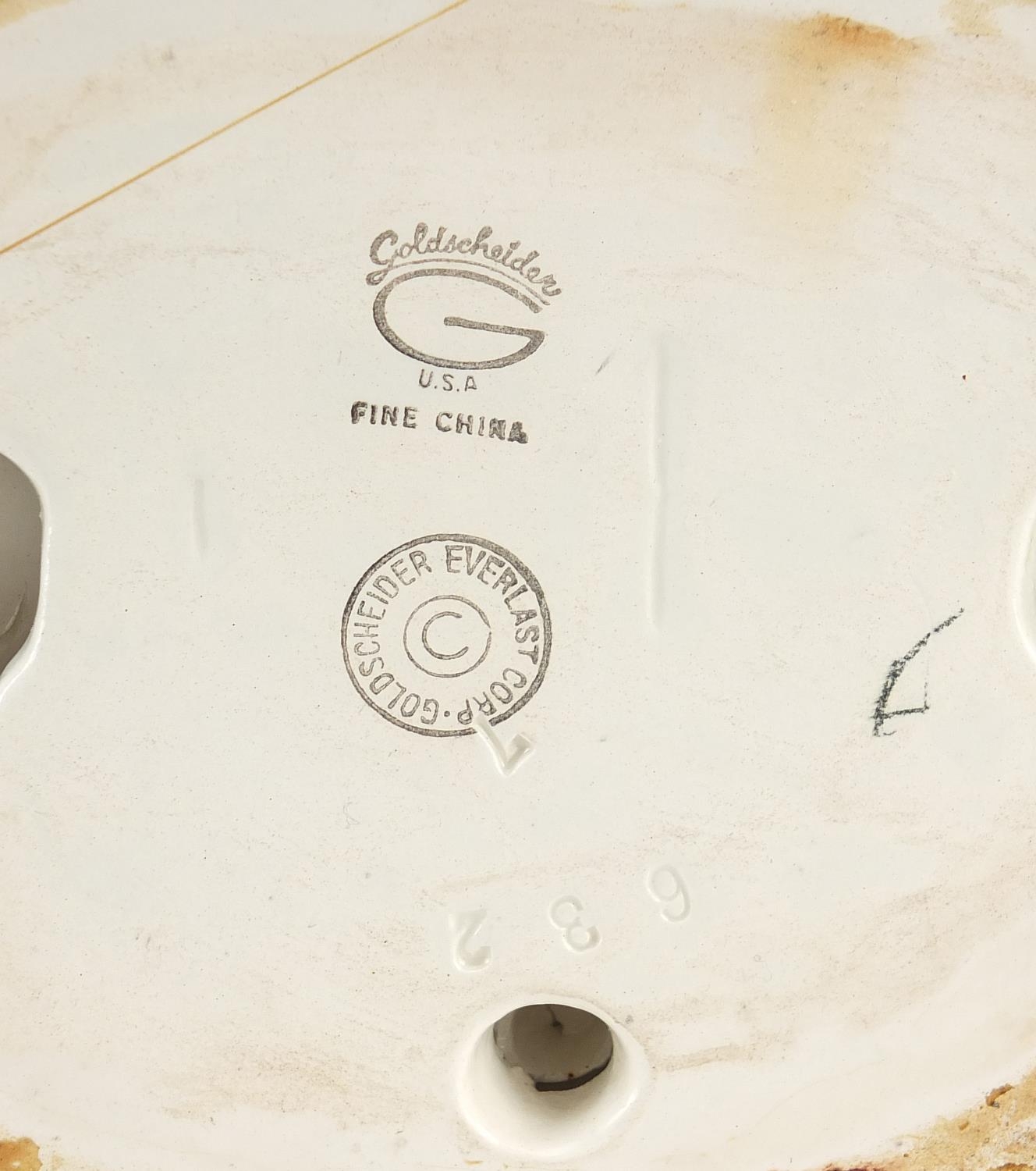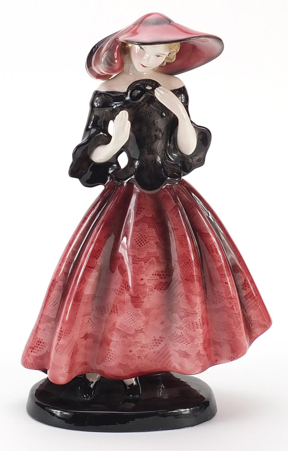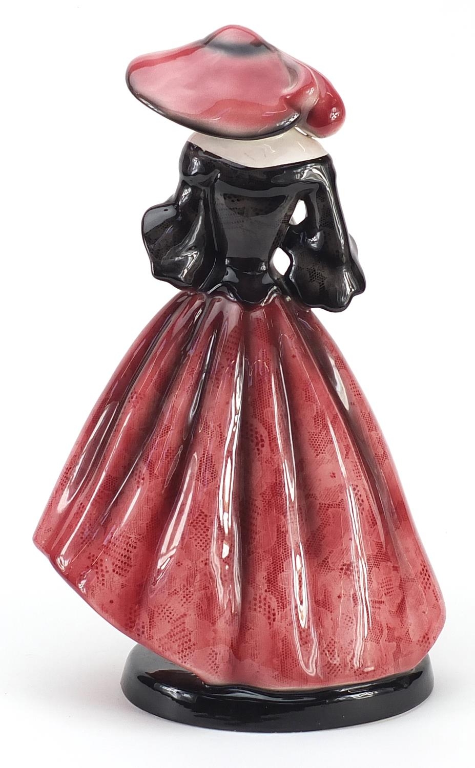 Goldschneider, Czechoslovakian Art Deco pottery figurine of a female wearing a floral dress, numbered 632 to the base, 36cm high