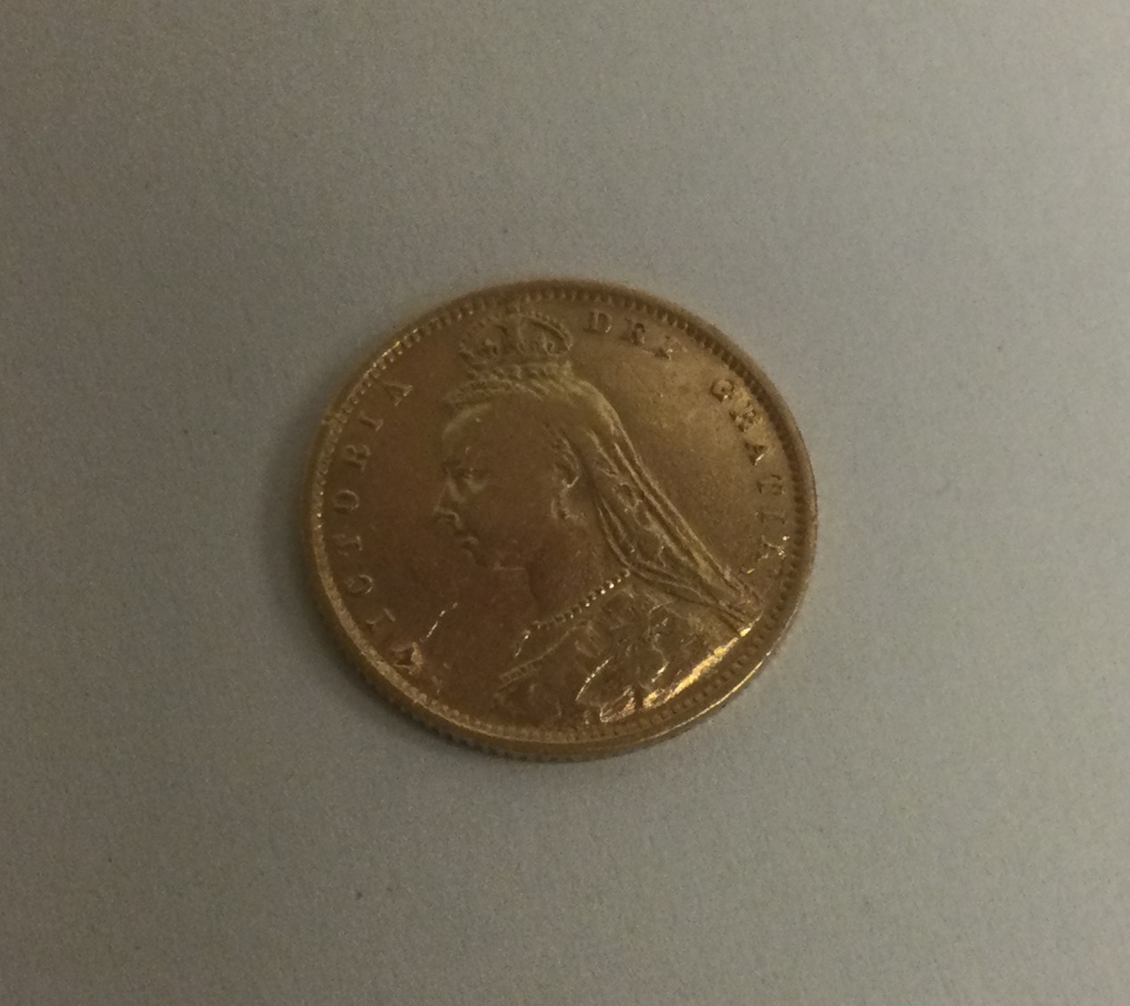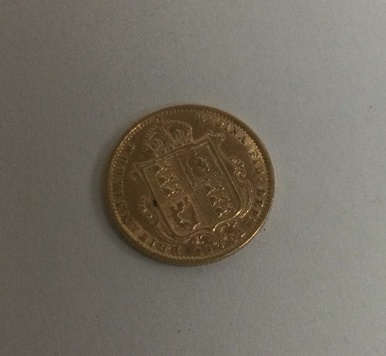 A Jubilee shield back half sovereign dated 1892. Approx. 3.95 grams. Est. £200 - £220.