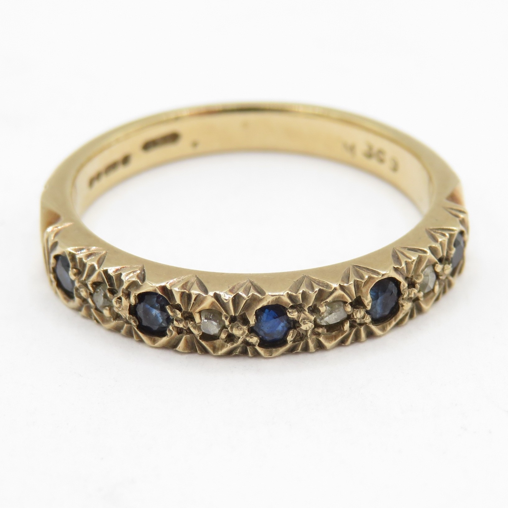 9ct gold sapphire and diamond half eternity ring (2.9g) Size N