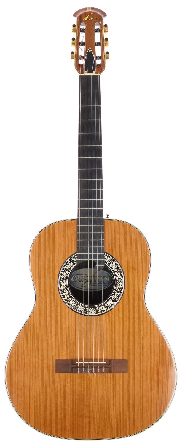 1982 Ovation 1113 acoustic guitar, made in USA; Body: natural spruce top upon Lyrachord bowl back, light finish scratch behind bridge plate; Neck: mahogany with maple reinforcement; Fretboard: ebony; Frets: light wear; Hardware: good; Case: original hard case; Overall condition: very good