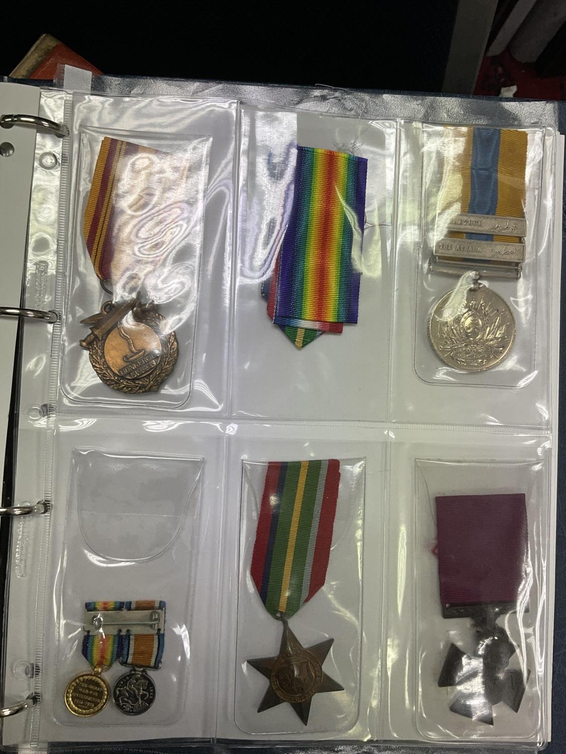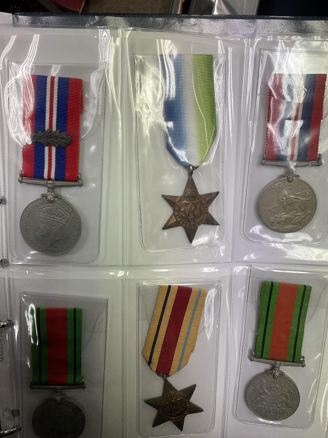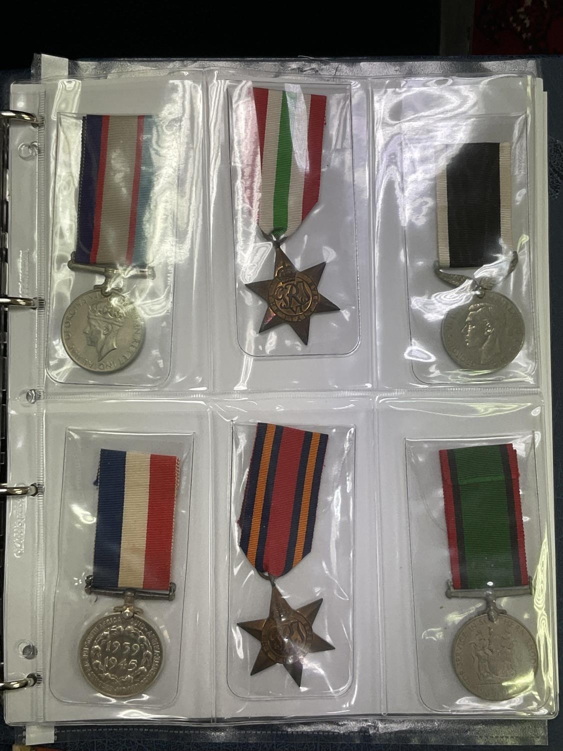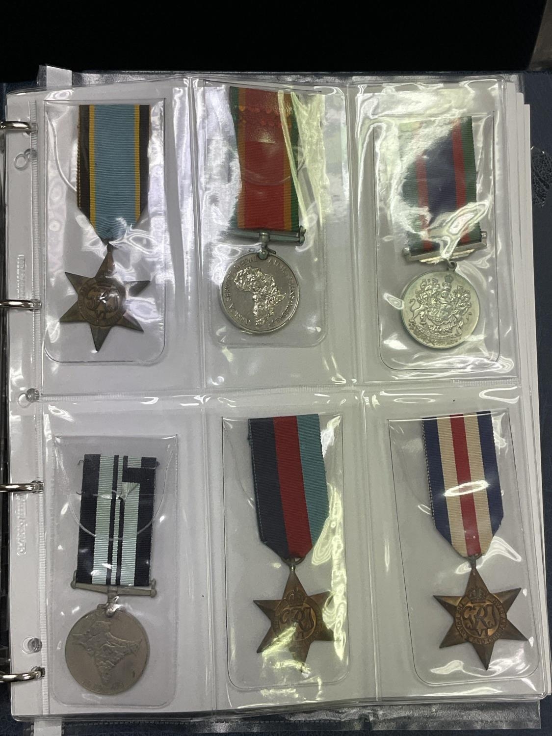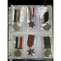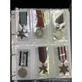 An album of WW2 and later medals 22 in total including miniatures and a set of John Player cigarette cards.