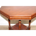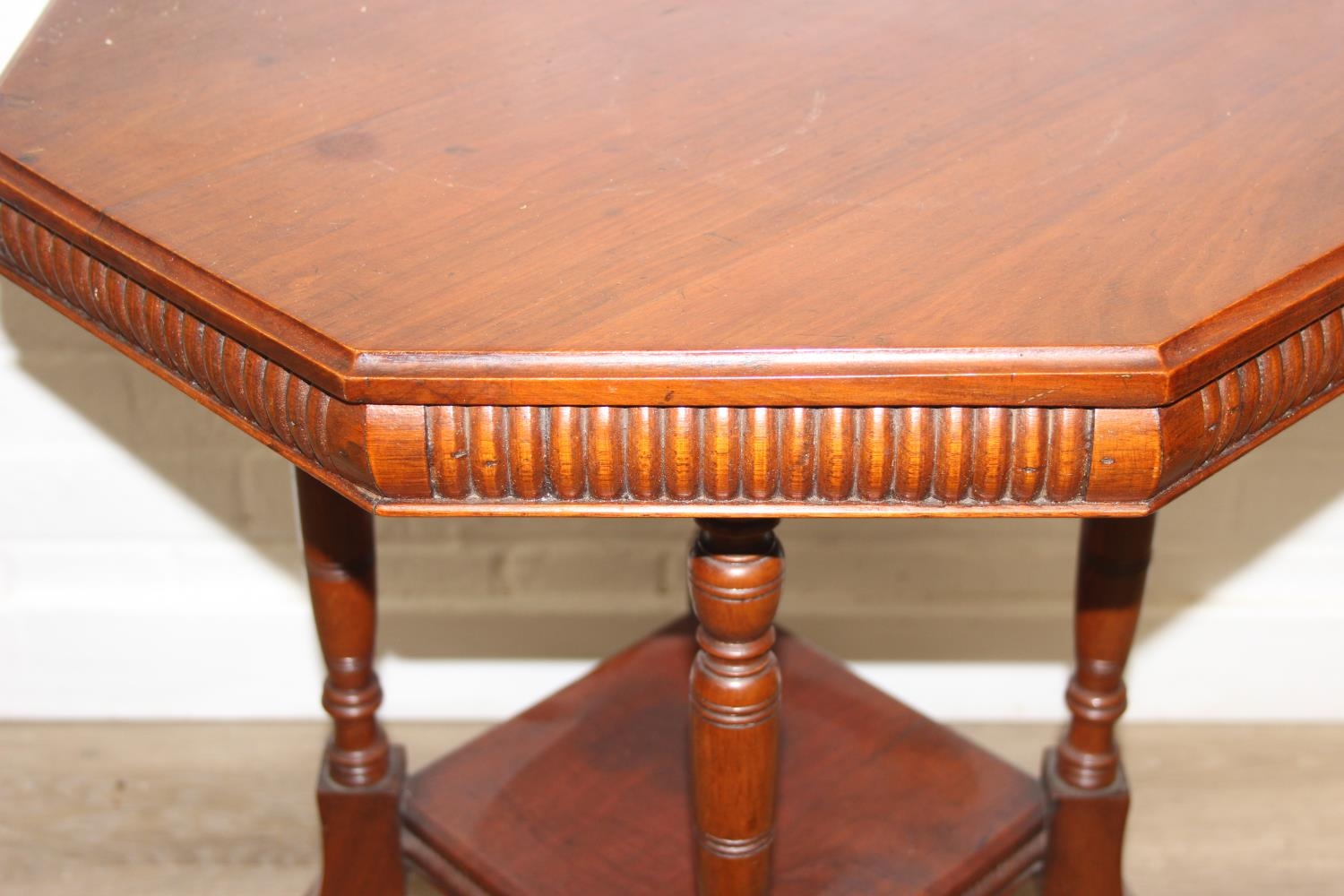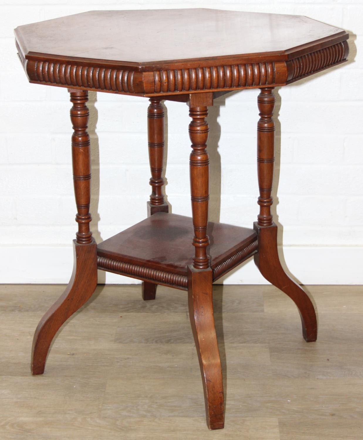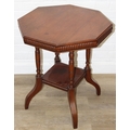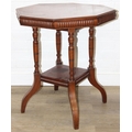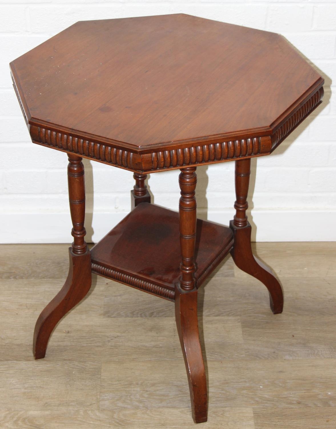 An Edwardian mahogany topped side table with octagonal top and four shaped legs, 59cm x 59cm x 68cm