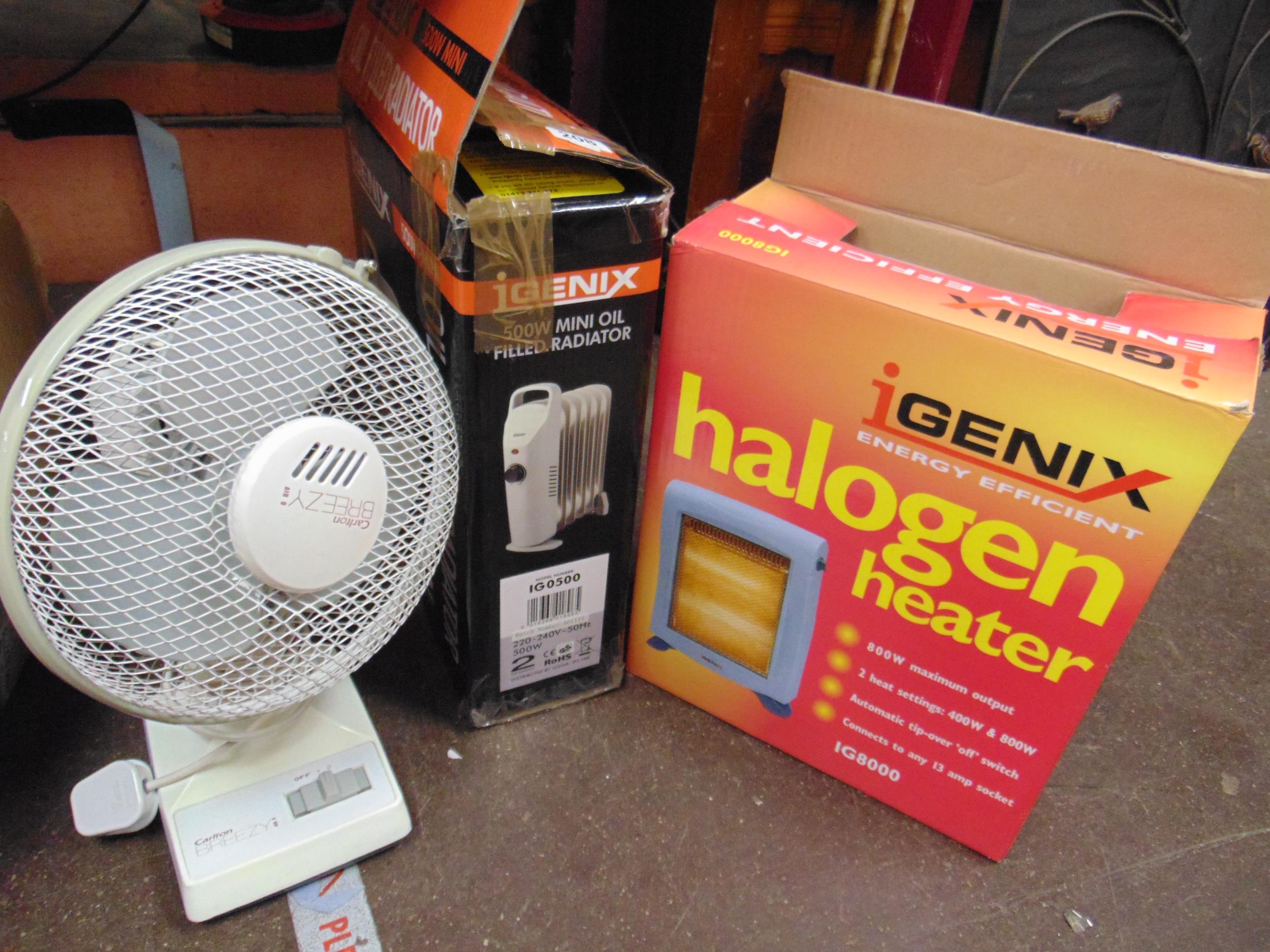 I Genix halogen heater, oil filled heater and a fan (3).