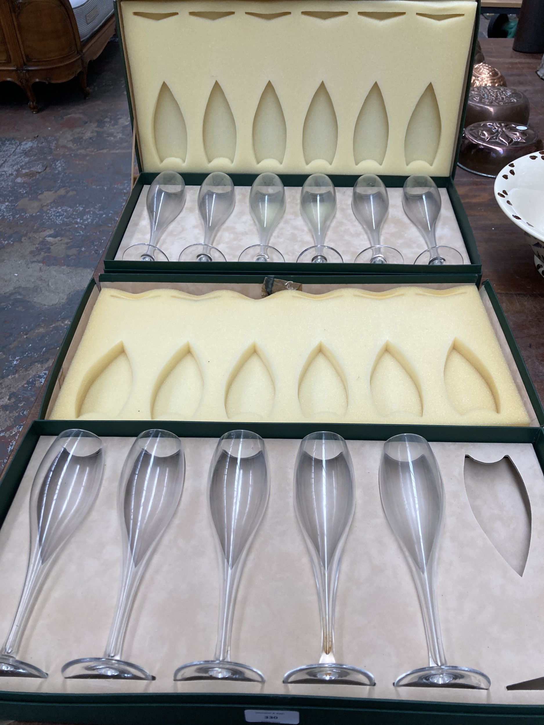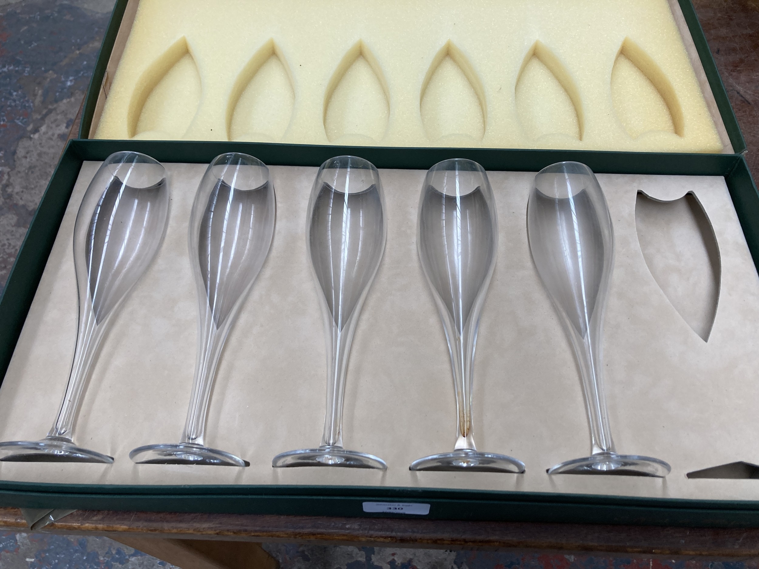Two boxed sets of Cuvée Dom Pérignon hollow stem champagne flutes