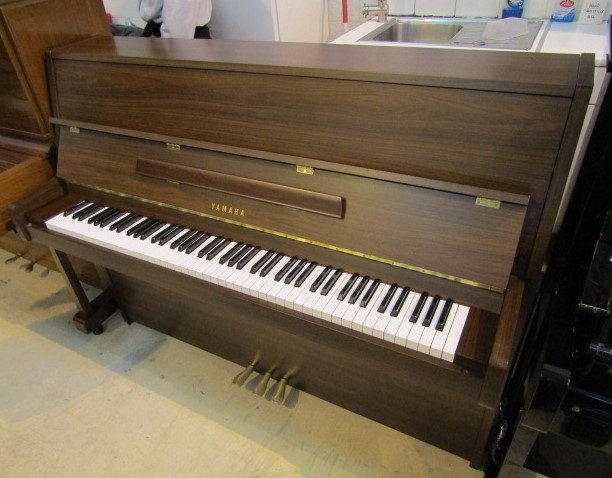 Yamaha (c1984) A Model MC201 upright piano in a bright mahogany case. AMENDMENT Is in a satin mahogany effect case.