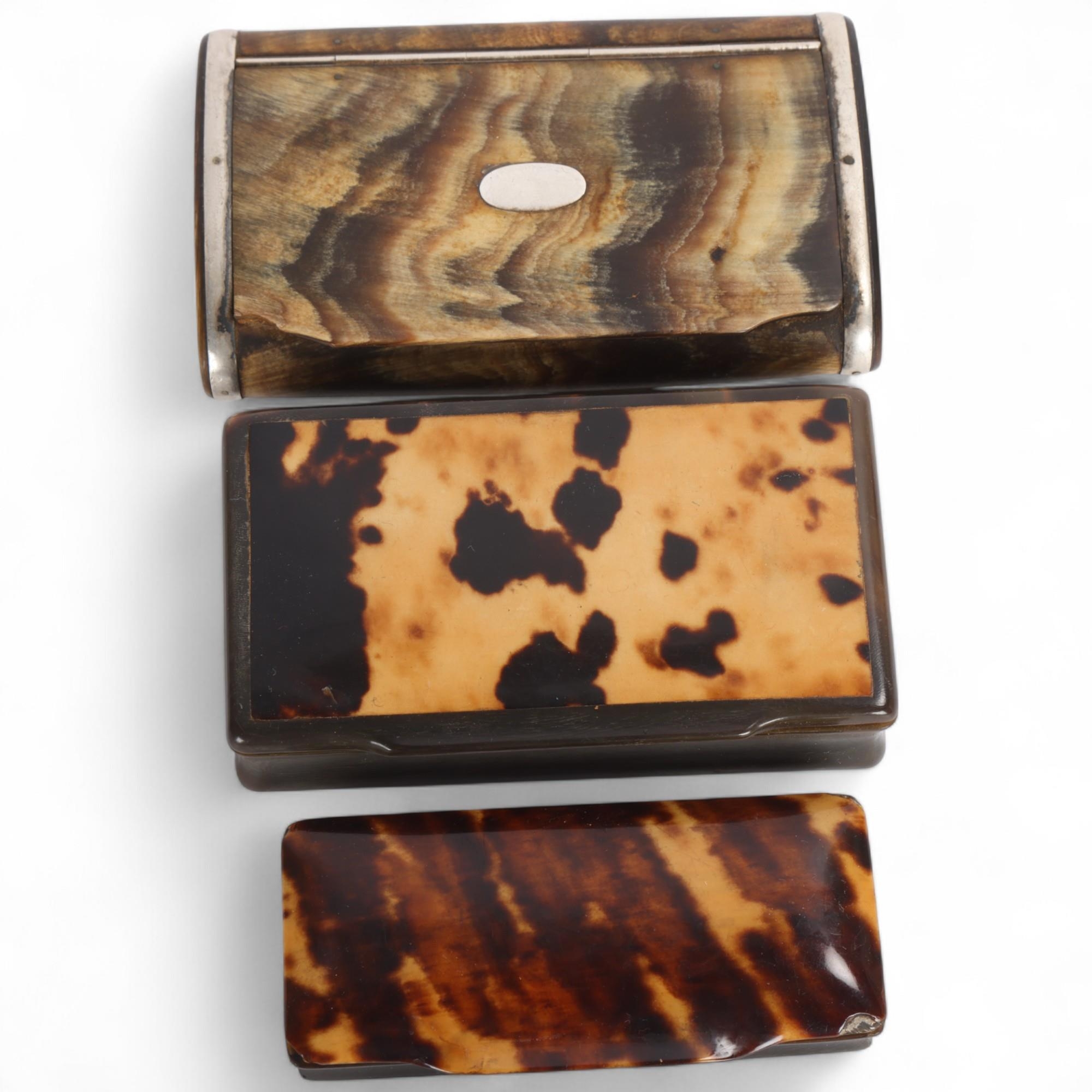 3 various 19th century horn and tortoiseshell snuff boxes