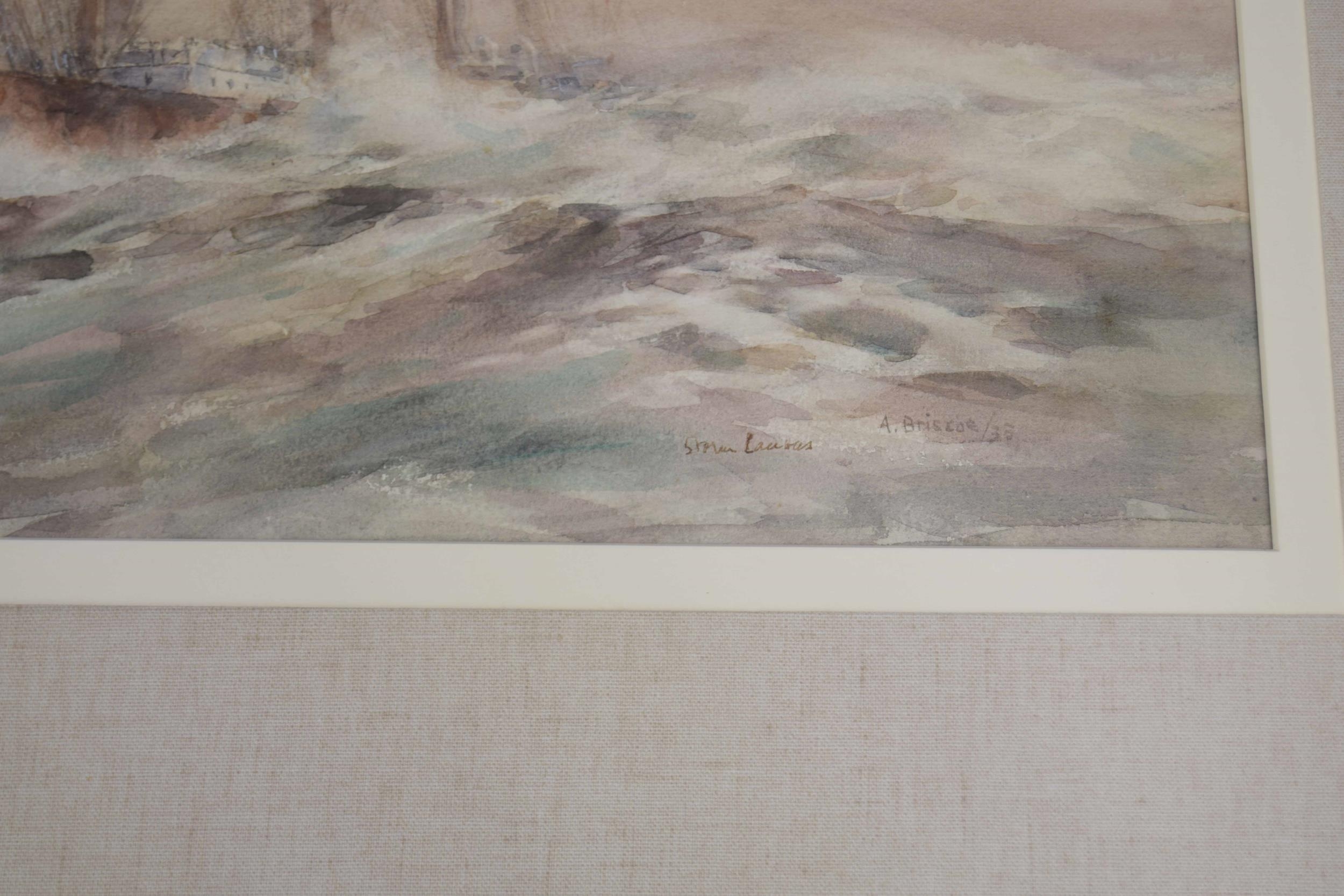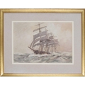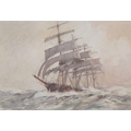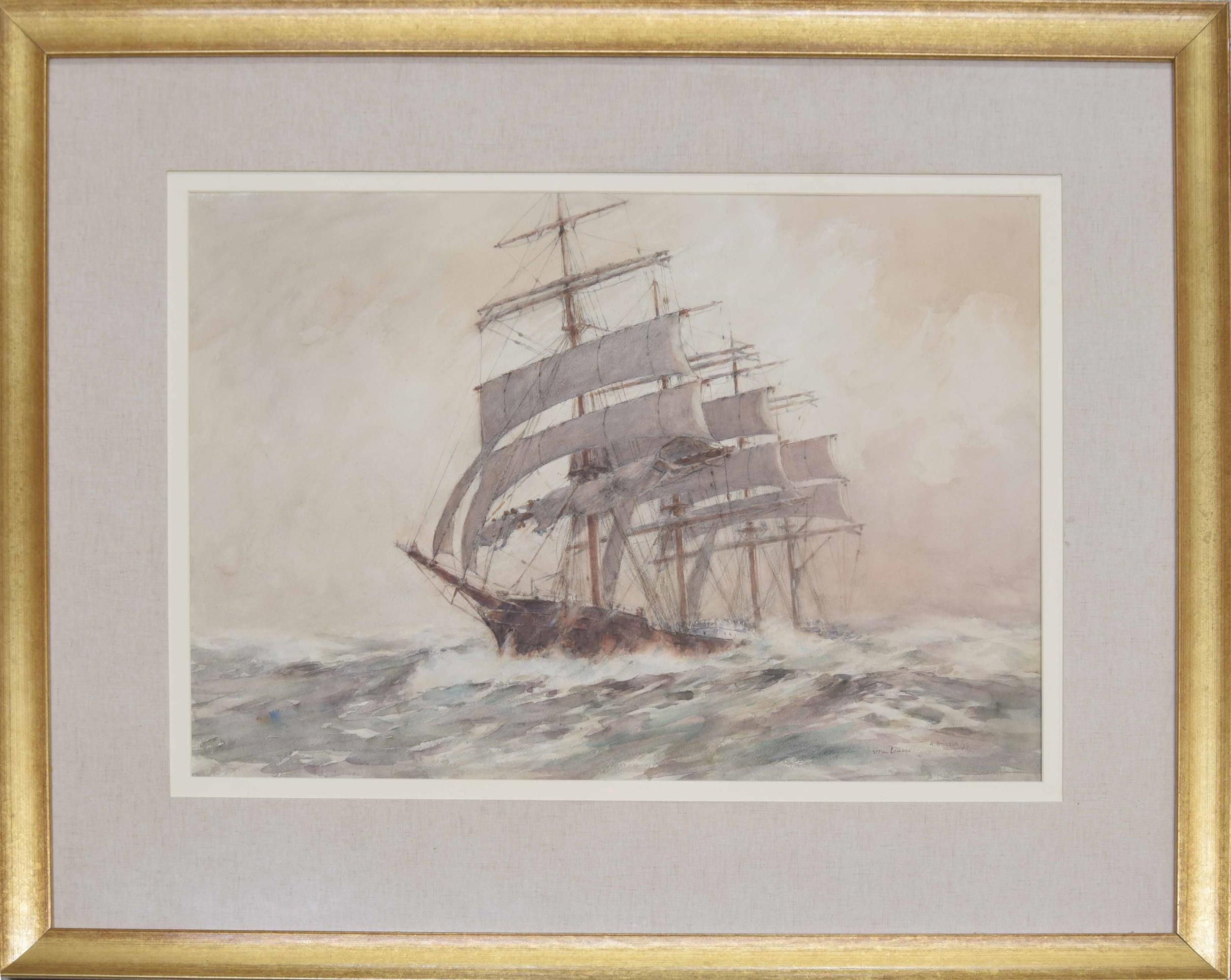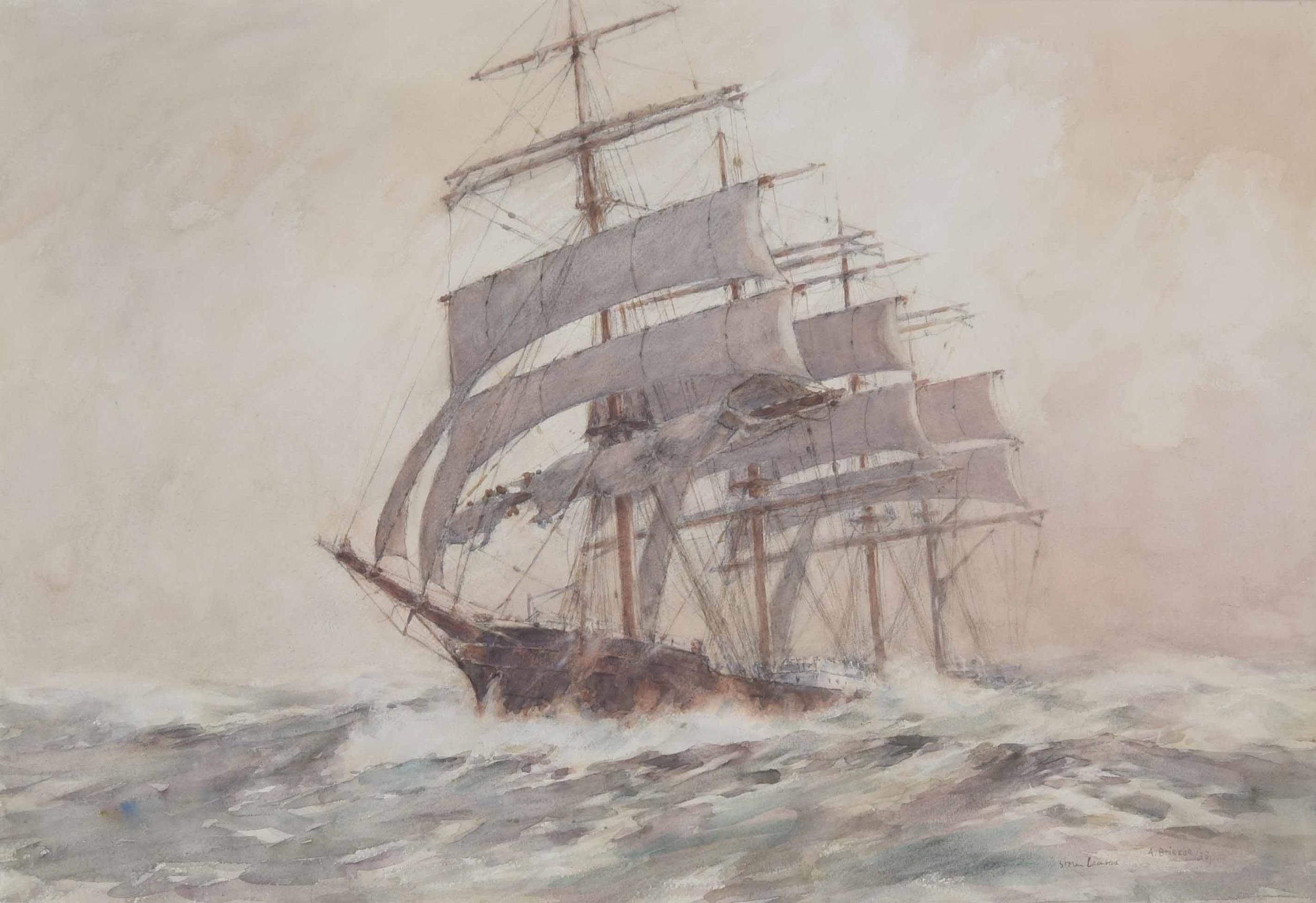 Arthur John Trevor Briscoe RE., RI., (1873-1943) - "Storm Canvas" a Clipper in a rough sea, signed and dated 33 (1933), also inscribed with the title in the artist own hand, pencil and watercolour, 20.5" x 29.25"